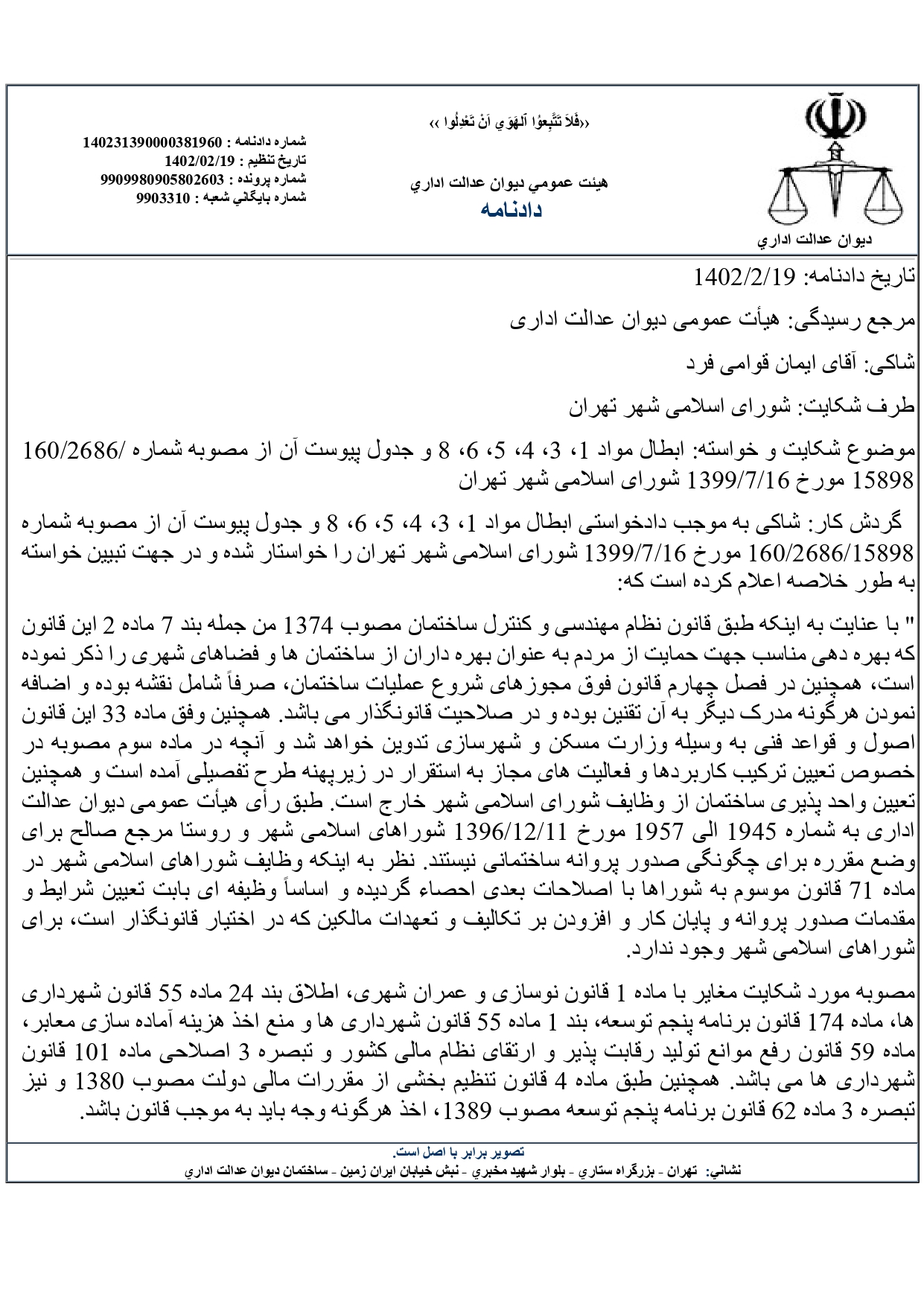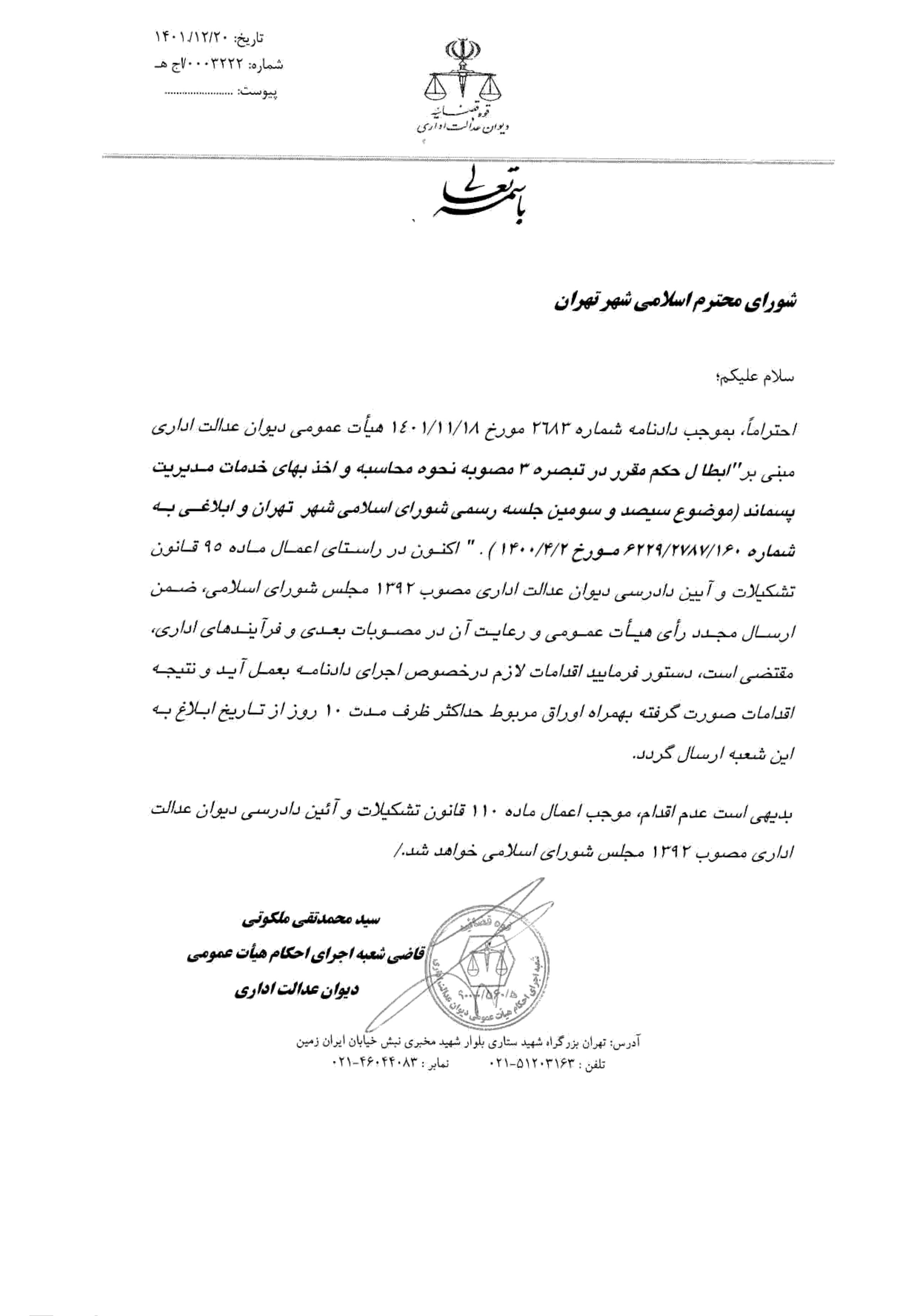 خدمت ریاست محترم شورای اسلامی شهرتهران و اعضای گرامی عضو