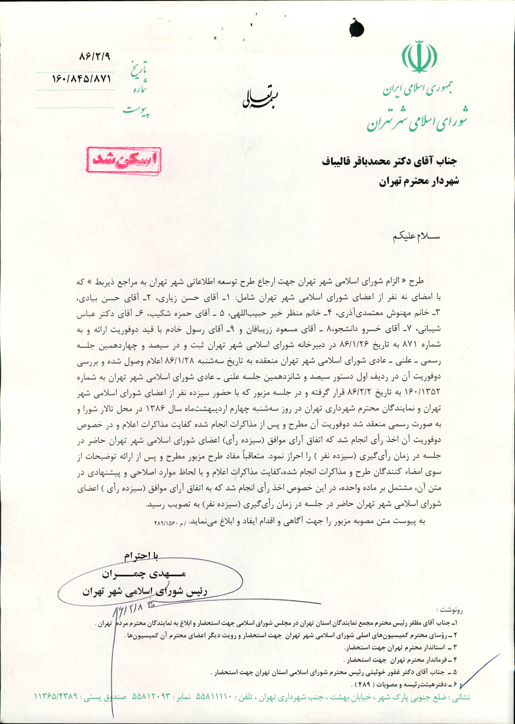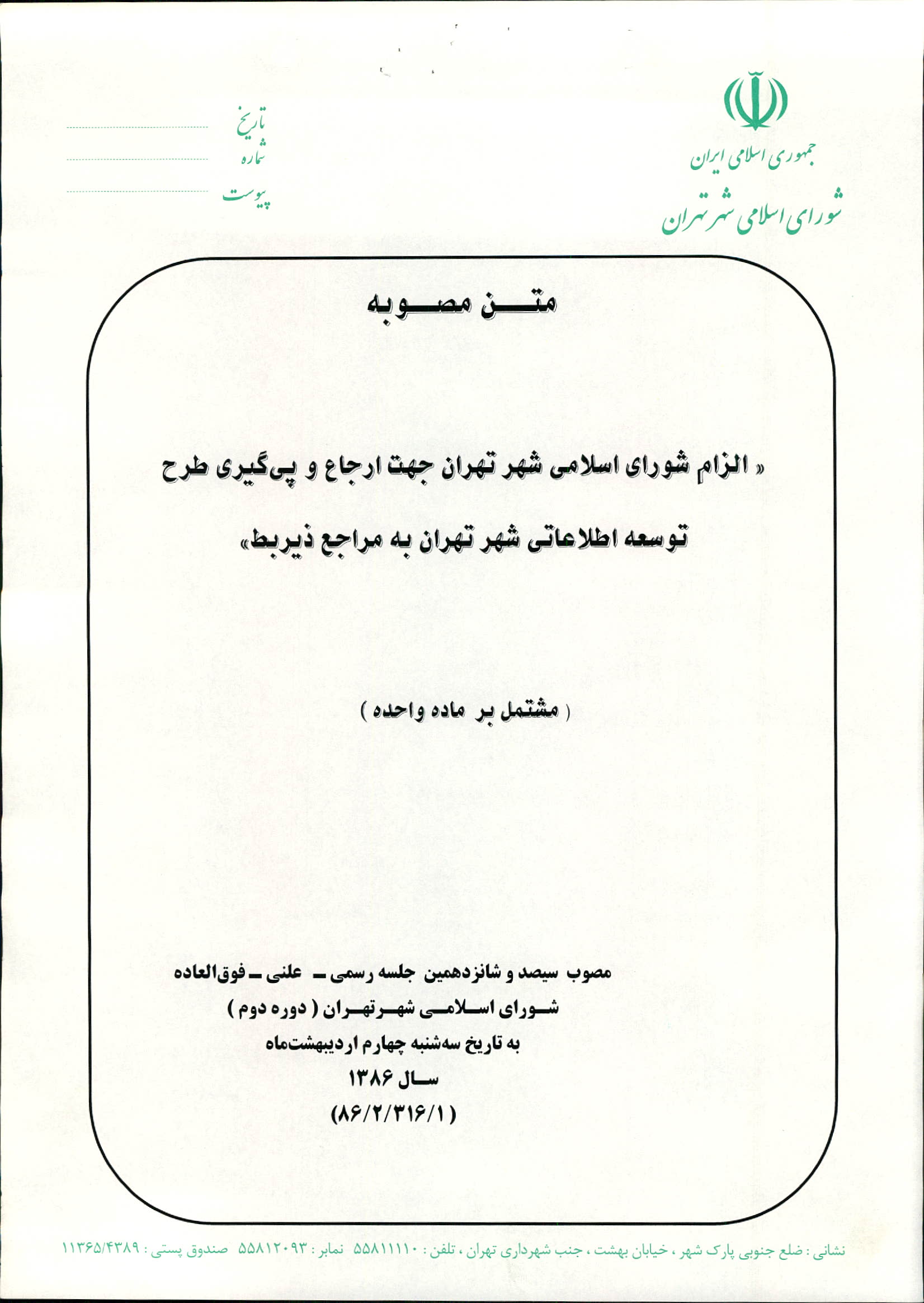 الزام شوراي اسلامي شهر تهران جهت ارجاع و پيگيري طرح توسعه اطلاعاتي شهر تهران به مراجع ذيربط