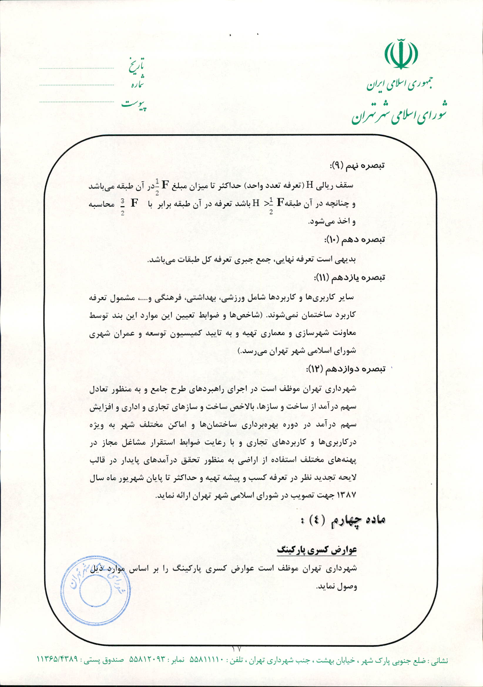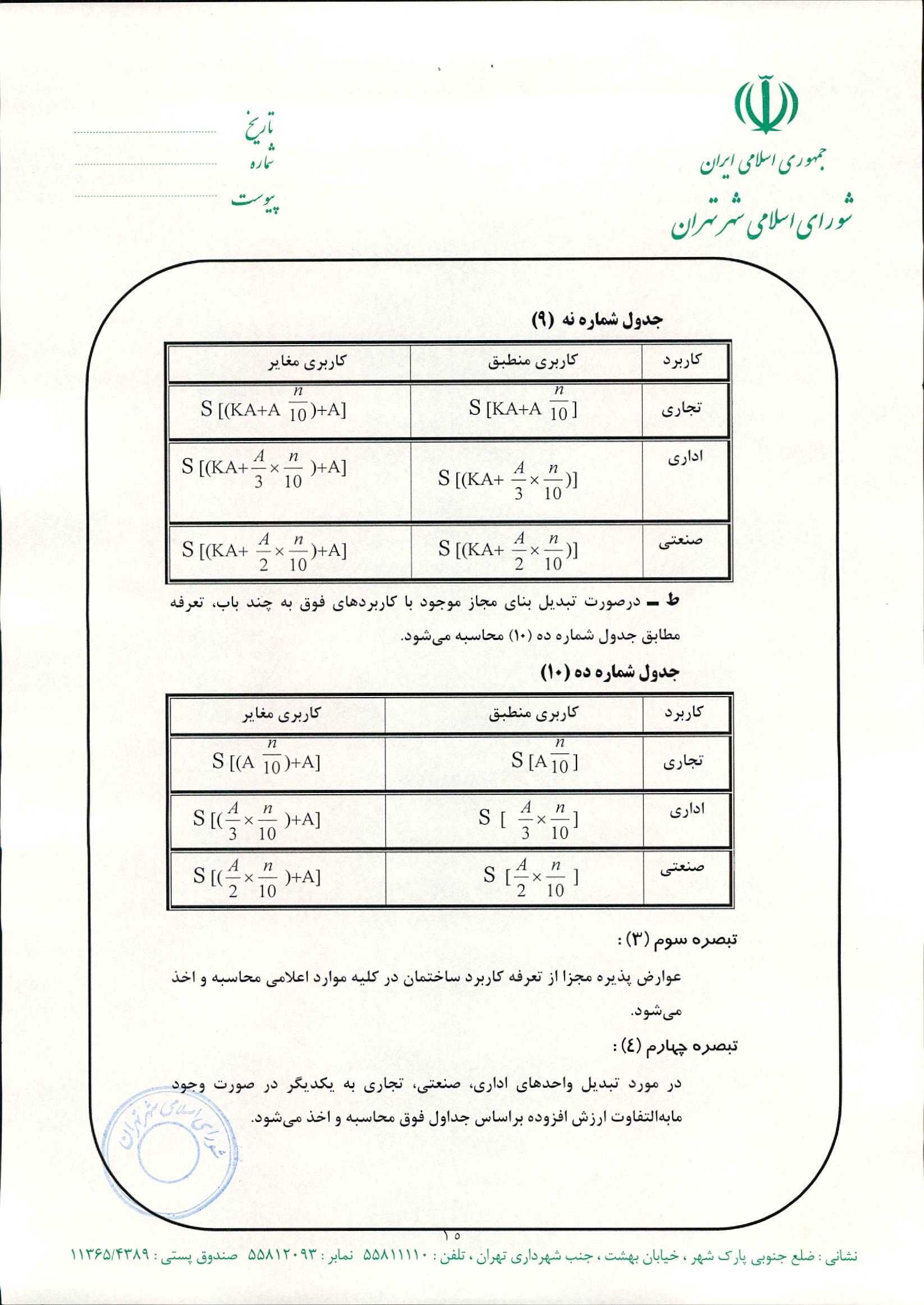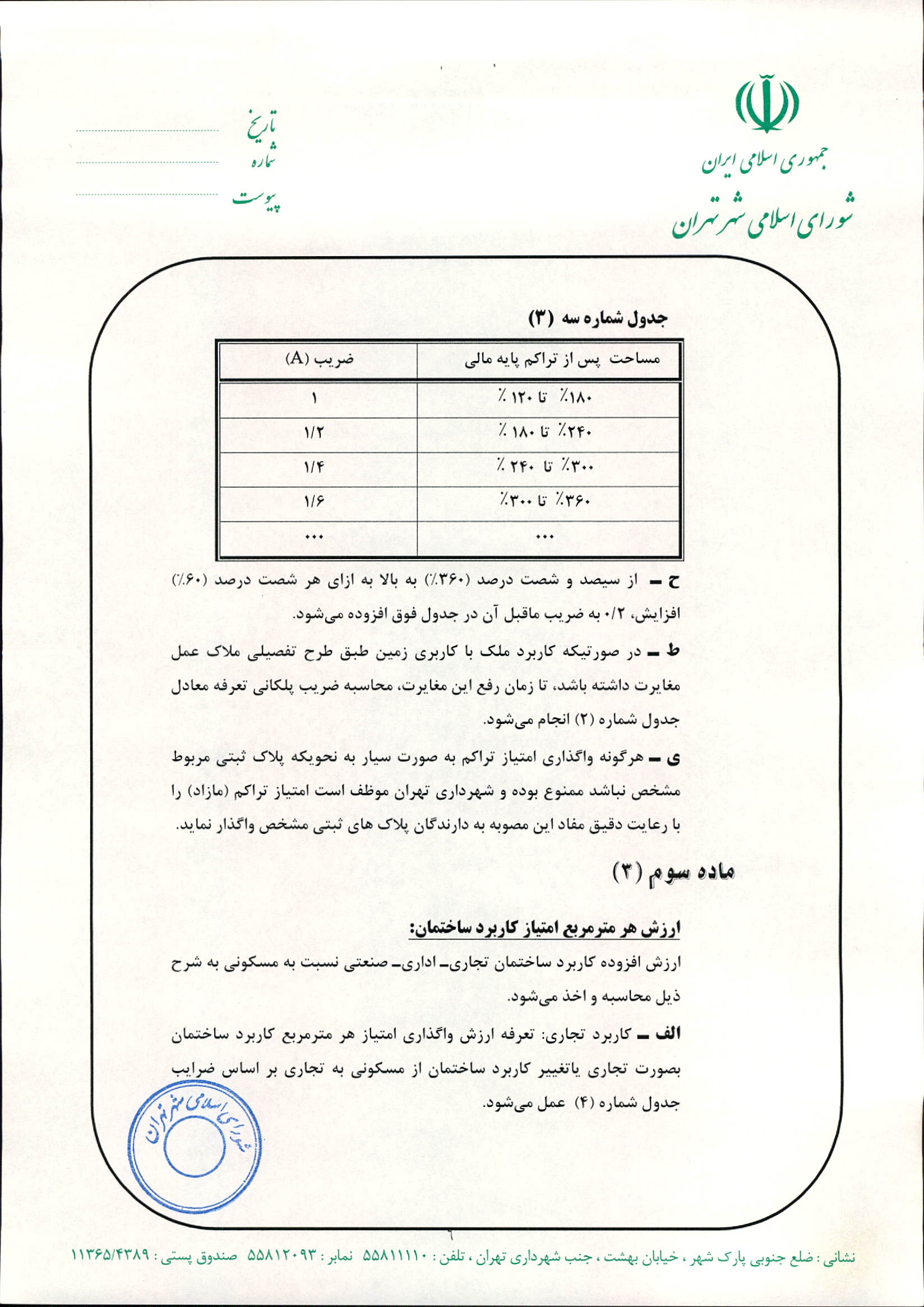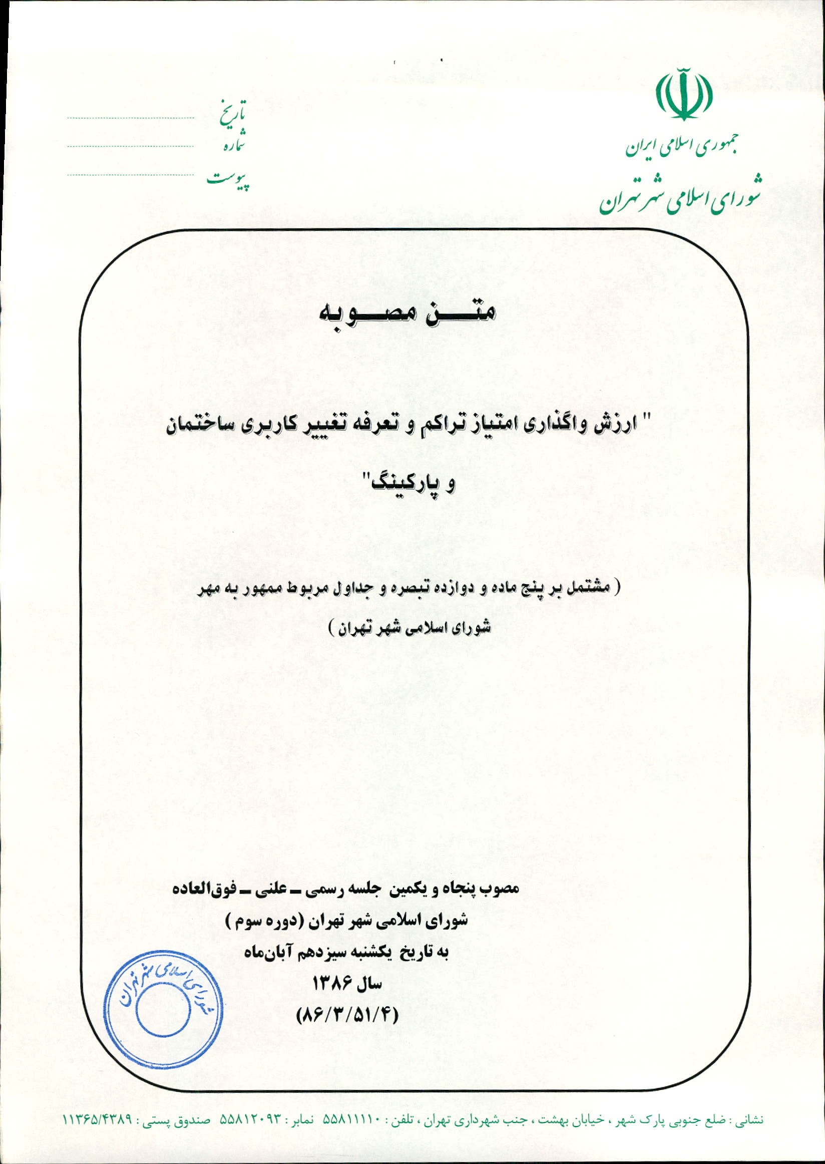 اصلاحيه تكميلي مصوبه ارزش مازاد تراكم و تعرفه تغيير كاربري ساختمان و كسر پاركينگ