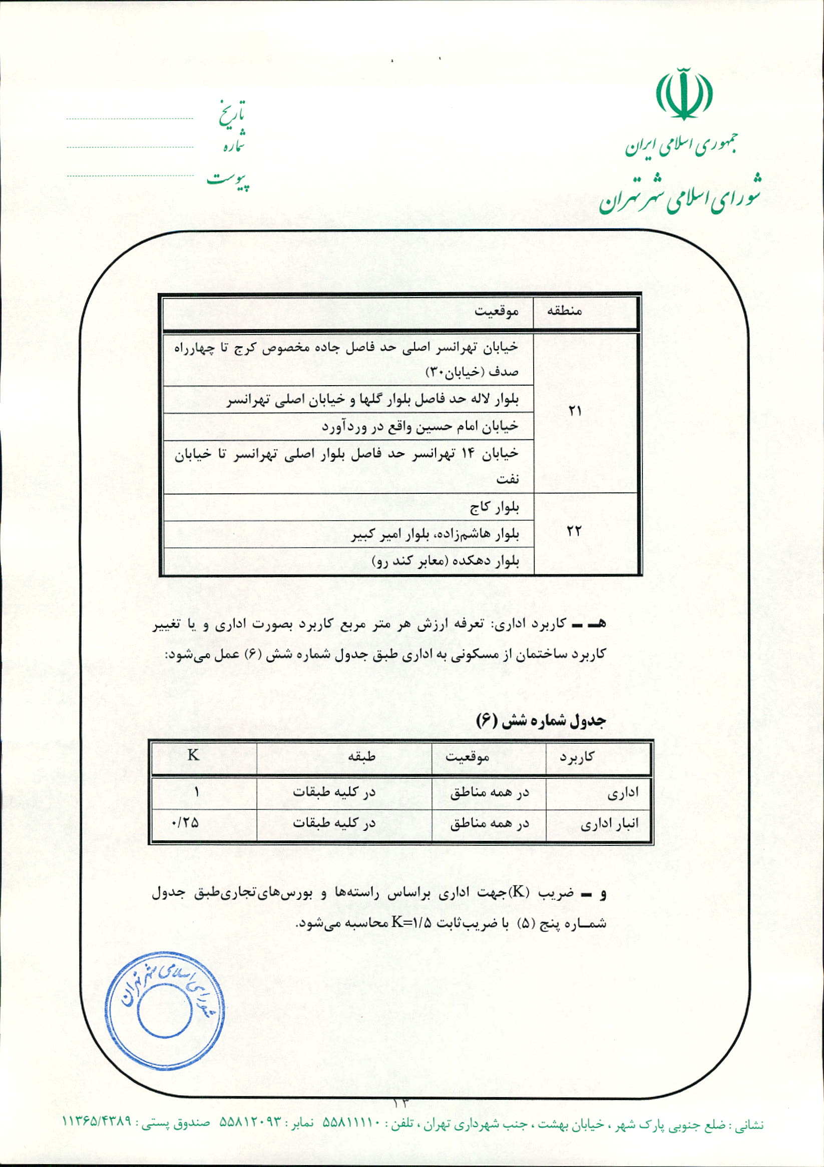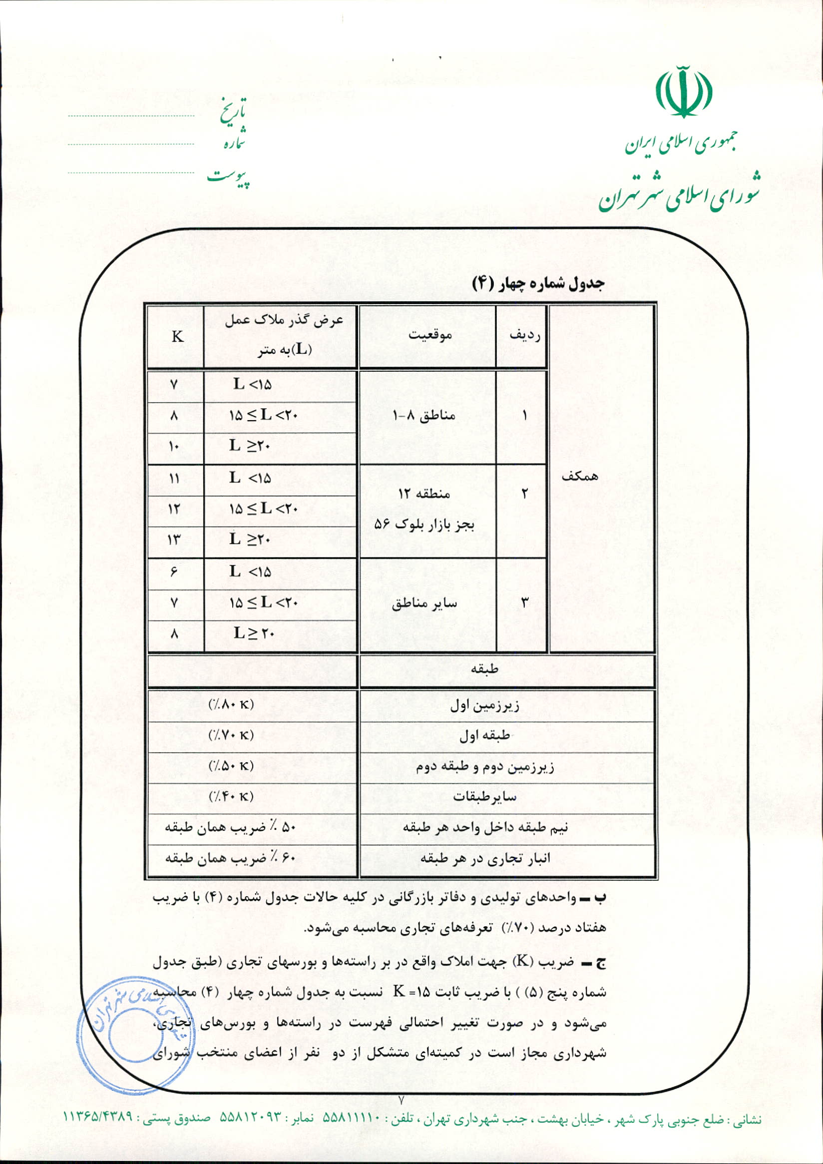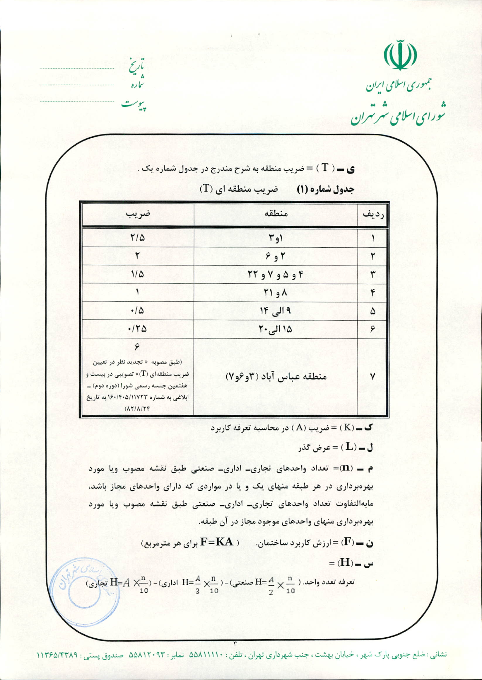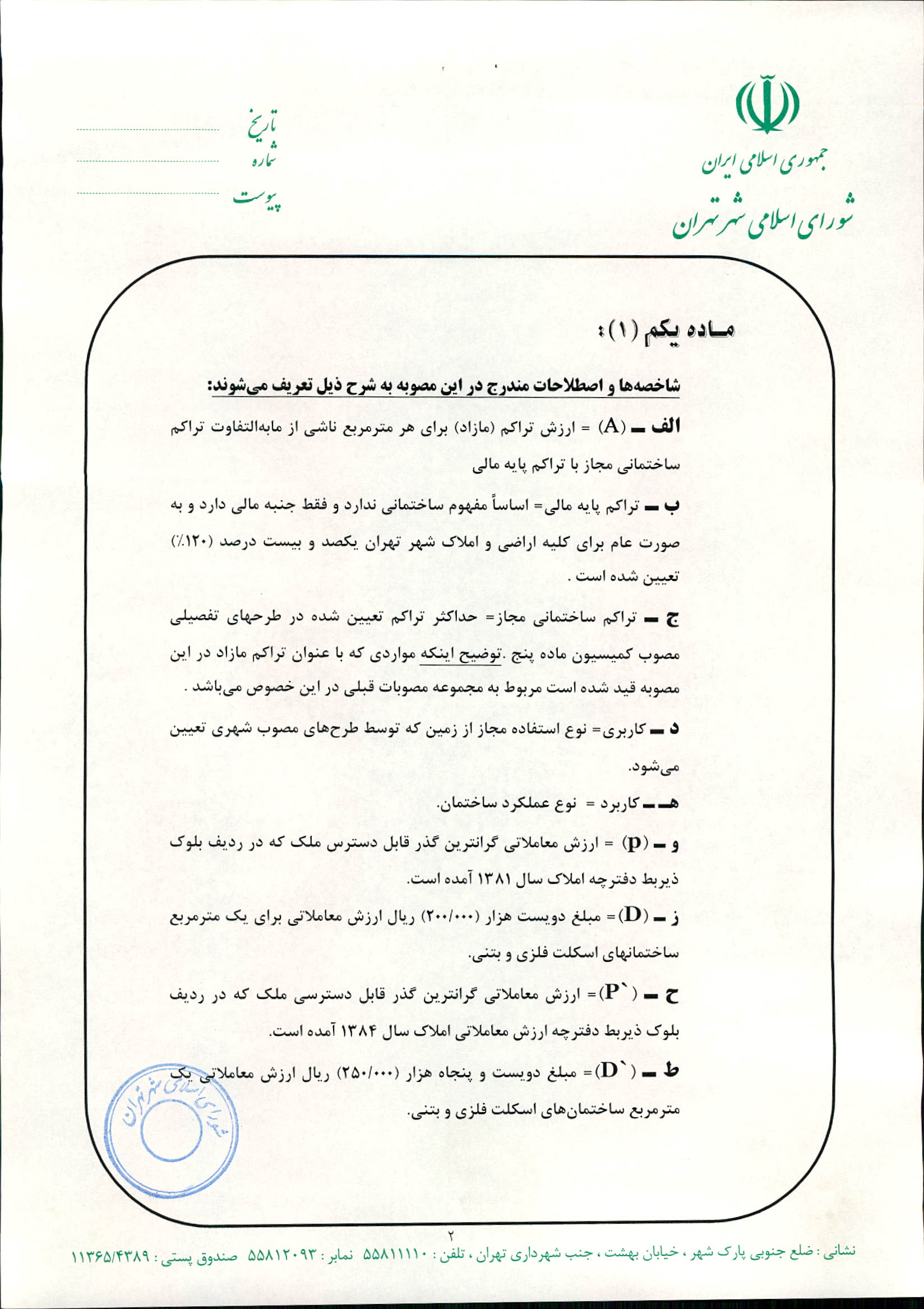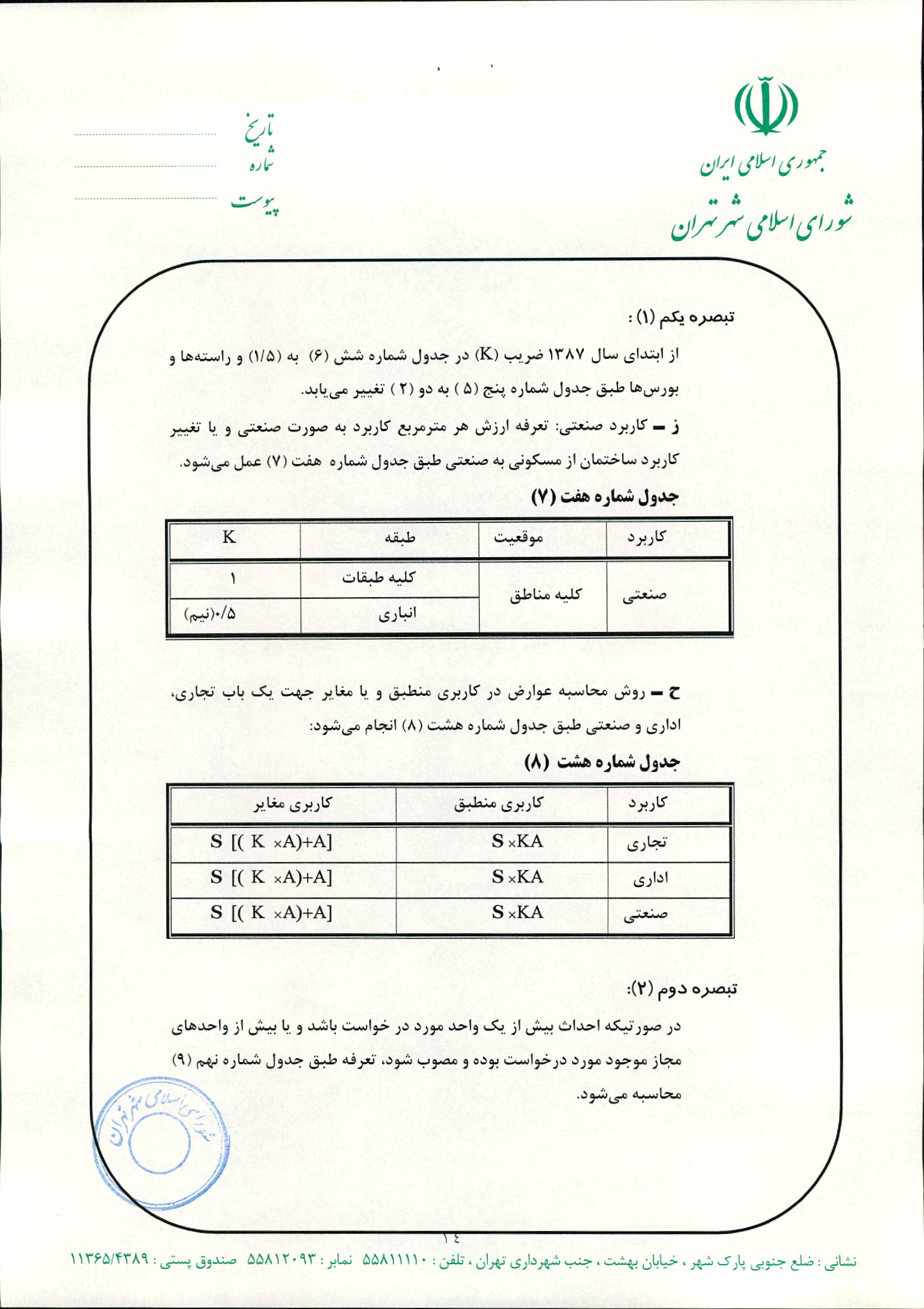 اصلاحيه تكميلي مصوبه ارزش مازاد تراكم و تعرفه تغيير كاربري ساختمان و كسر پاركينگ