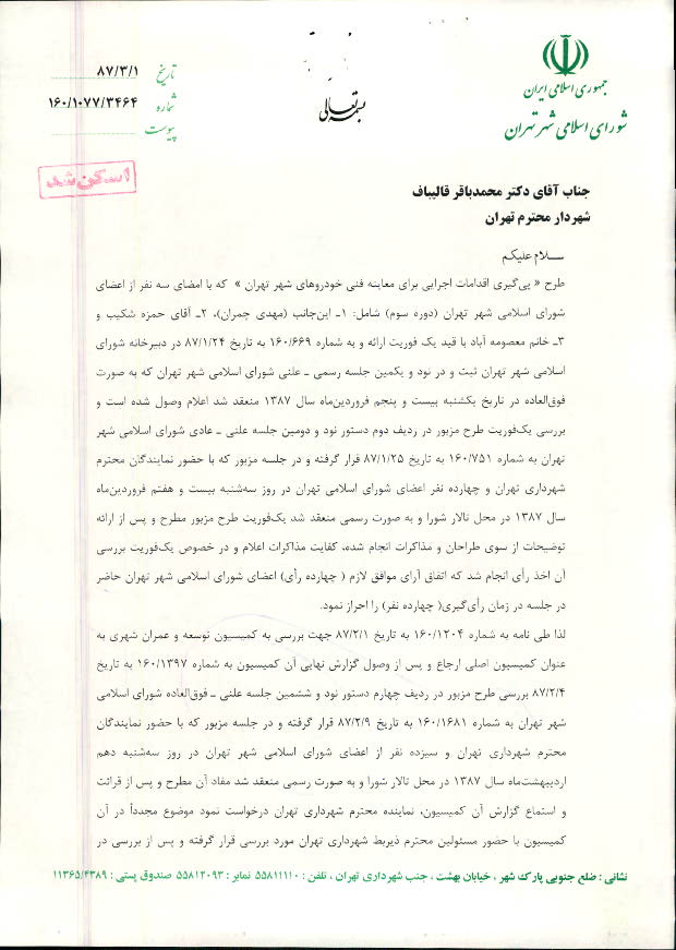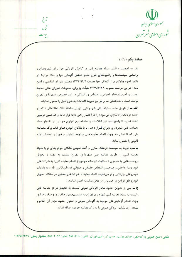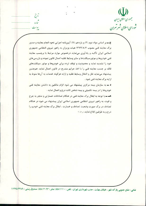 پيگيري اقدامات اجرايي معاينه فني خودروهاي شهر تهران