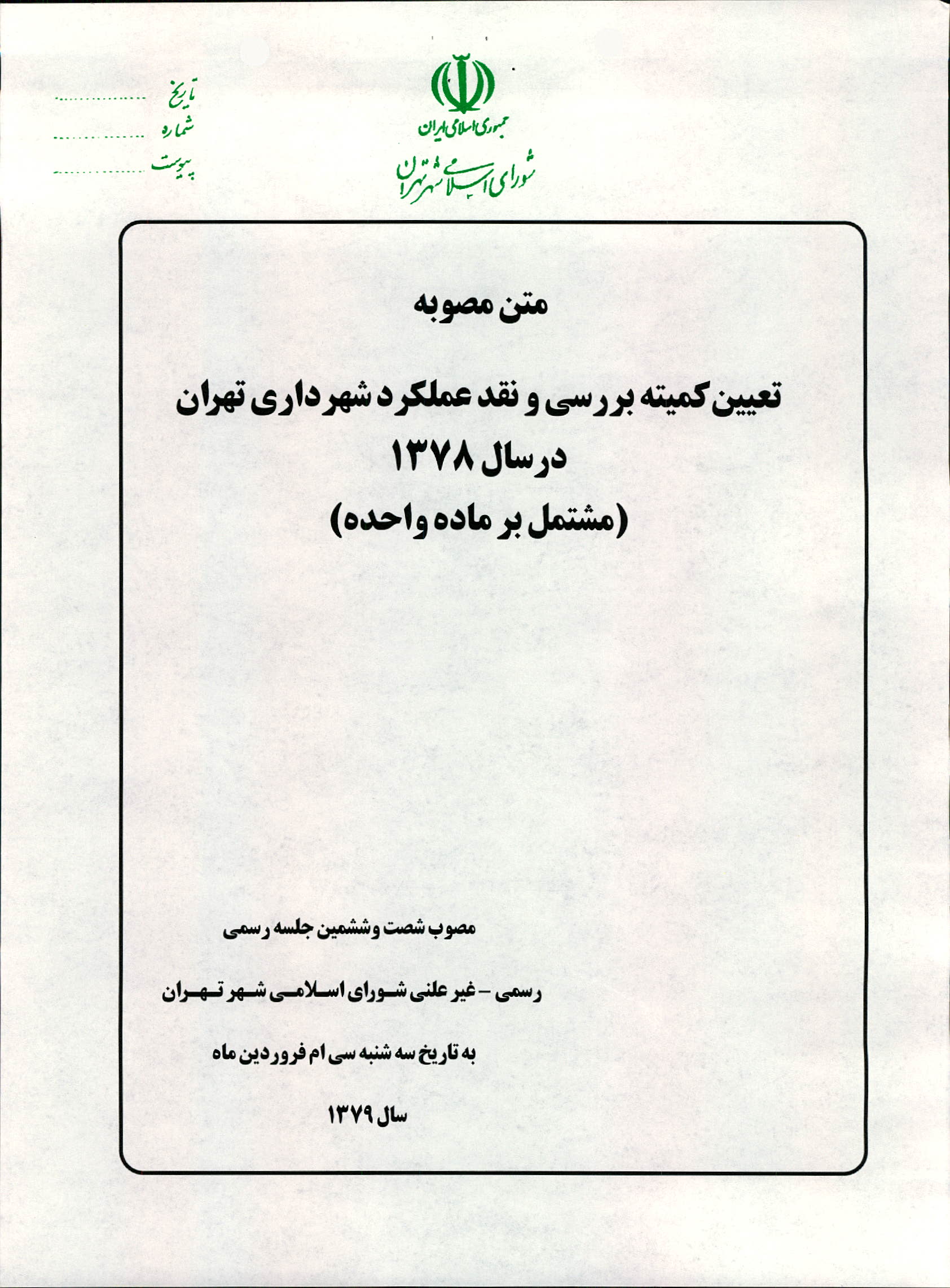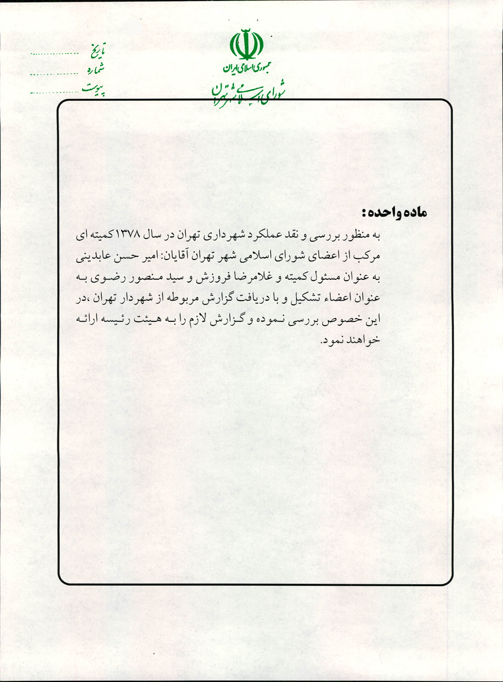 تعيين كميته بررسي و نقد عملكرد شهرداري تهران در سال 1378
