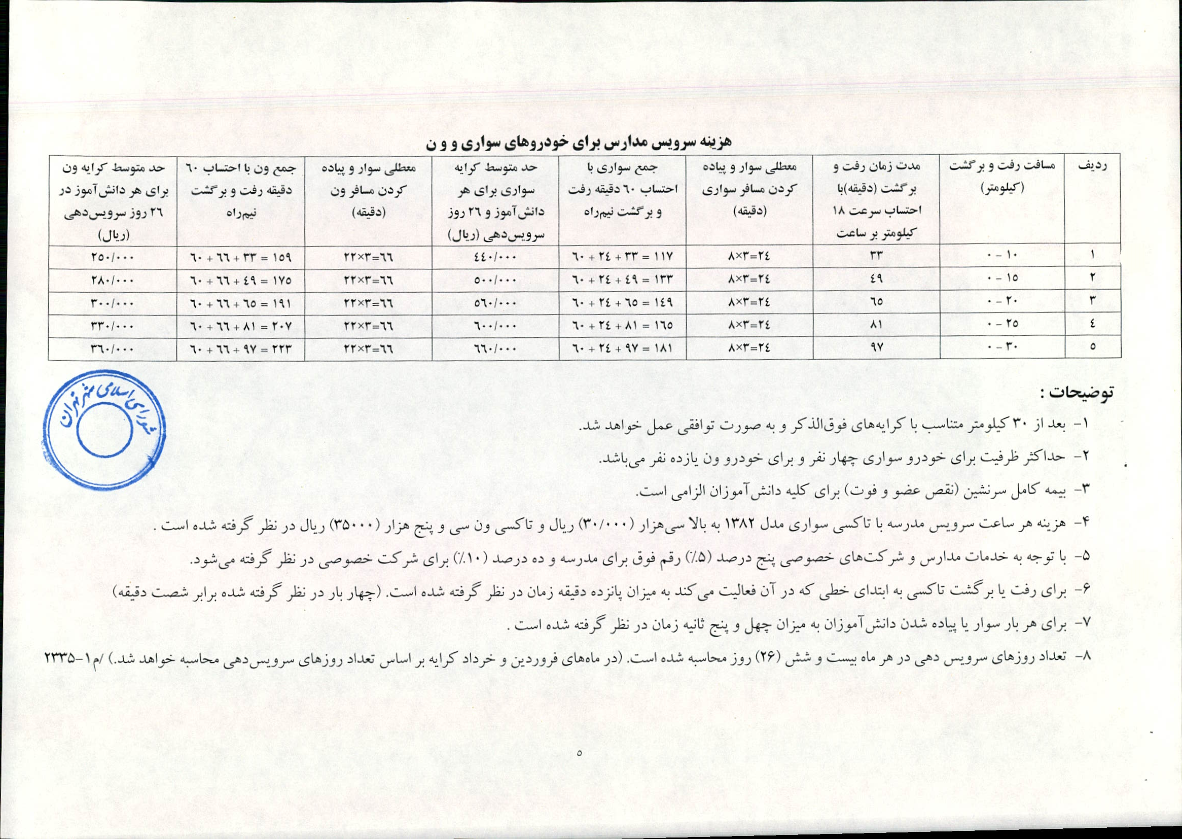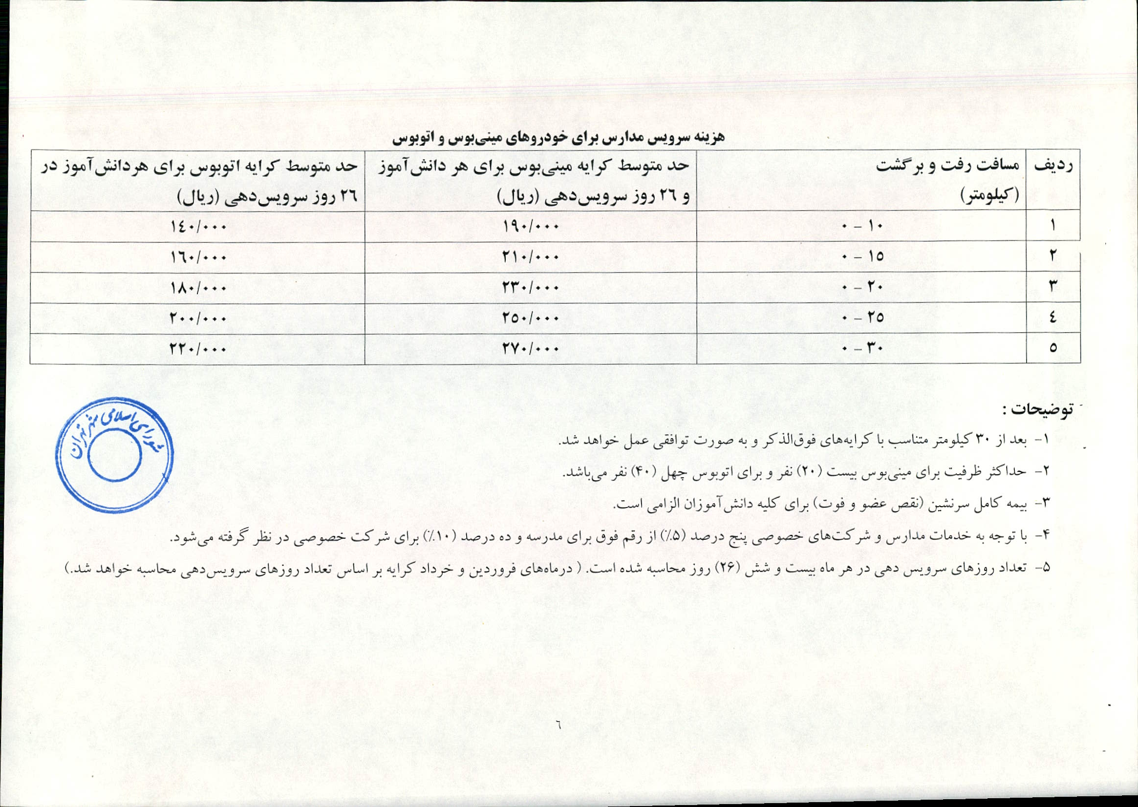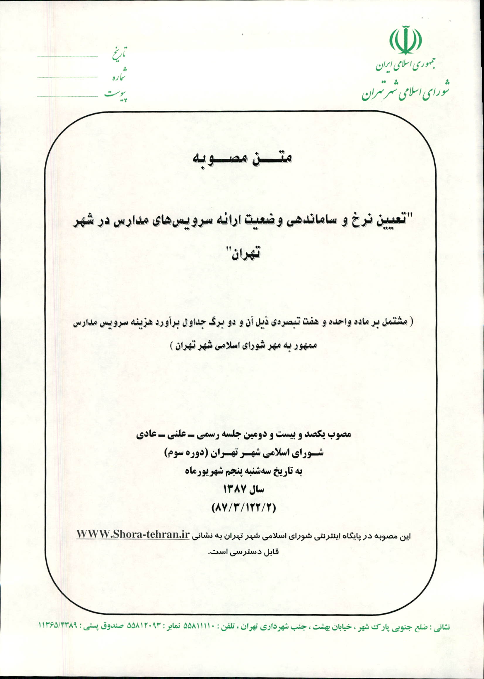 تعيين نرخ و ساماندهي وضعيت ارائه سرويس مدارس در شهر تهران
