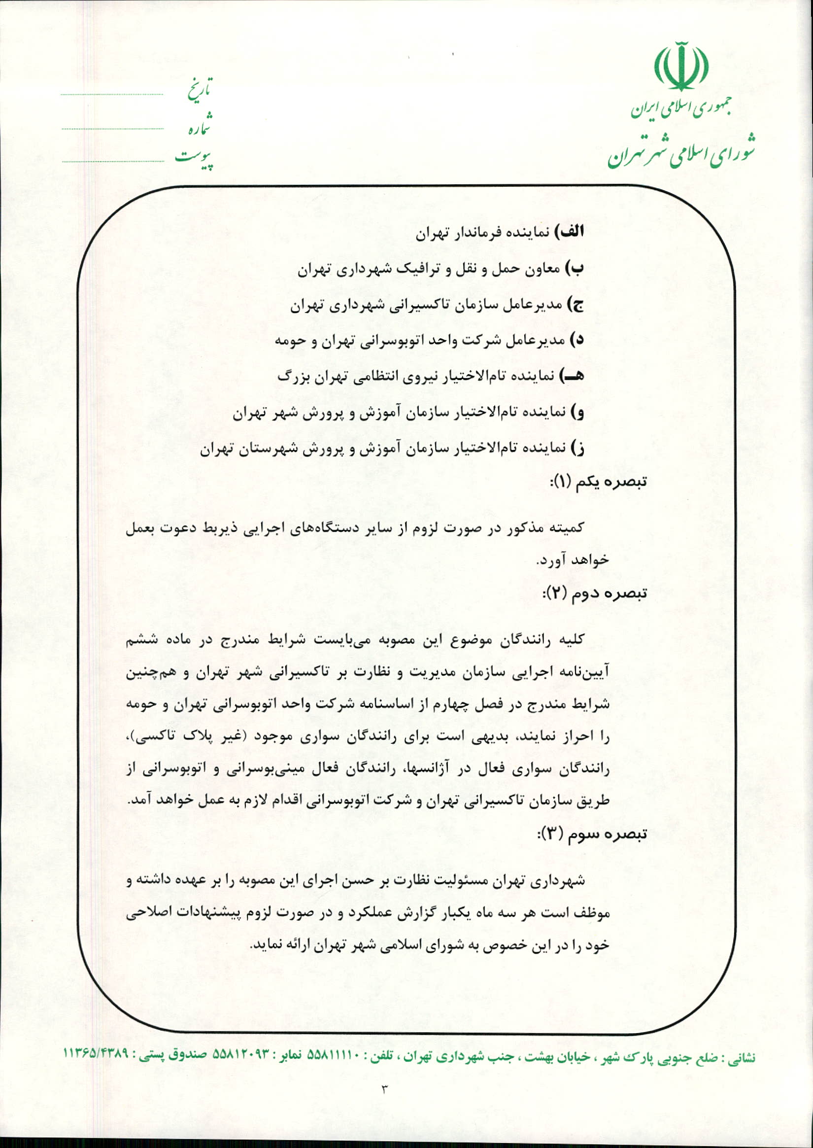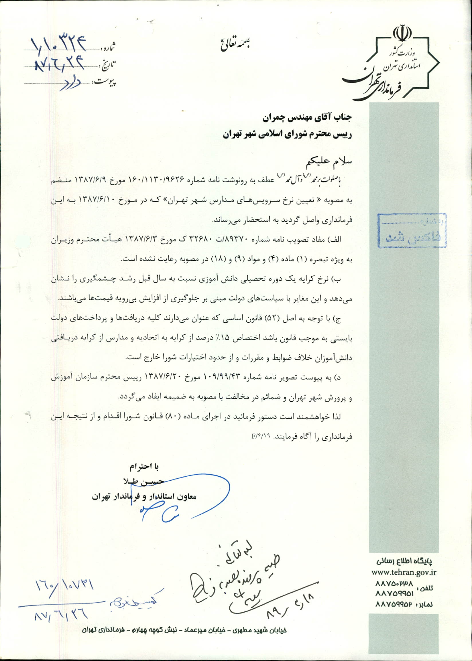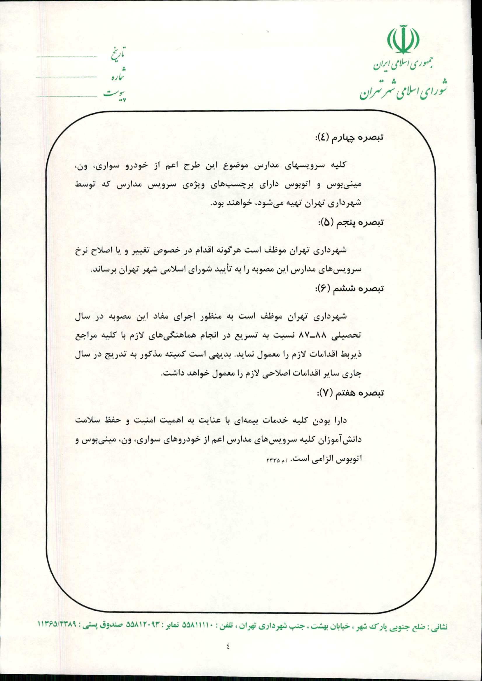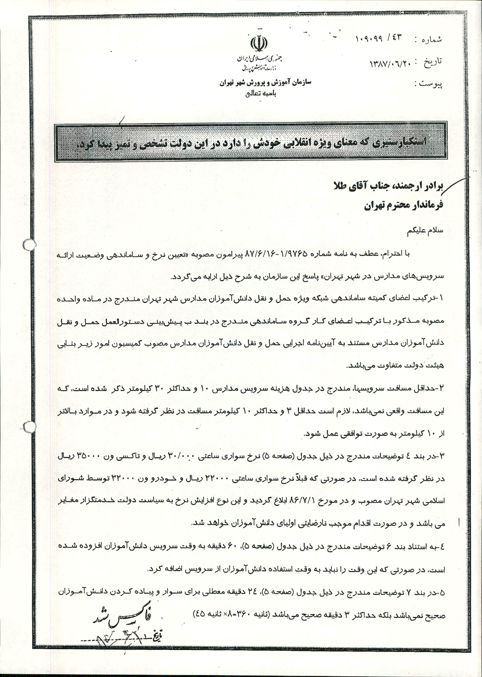 تعيين نرخ و ساماندهي وضعيت ارائه سرويس مدارس در شهر تهران