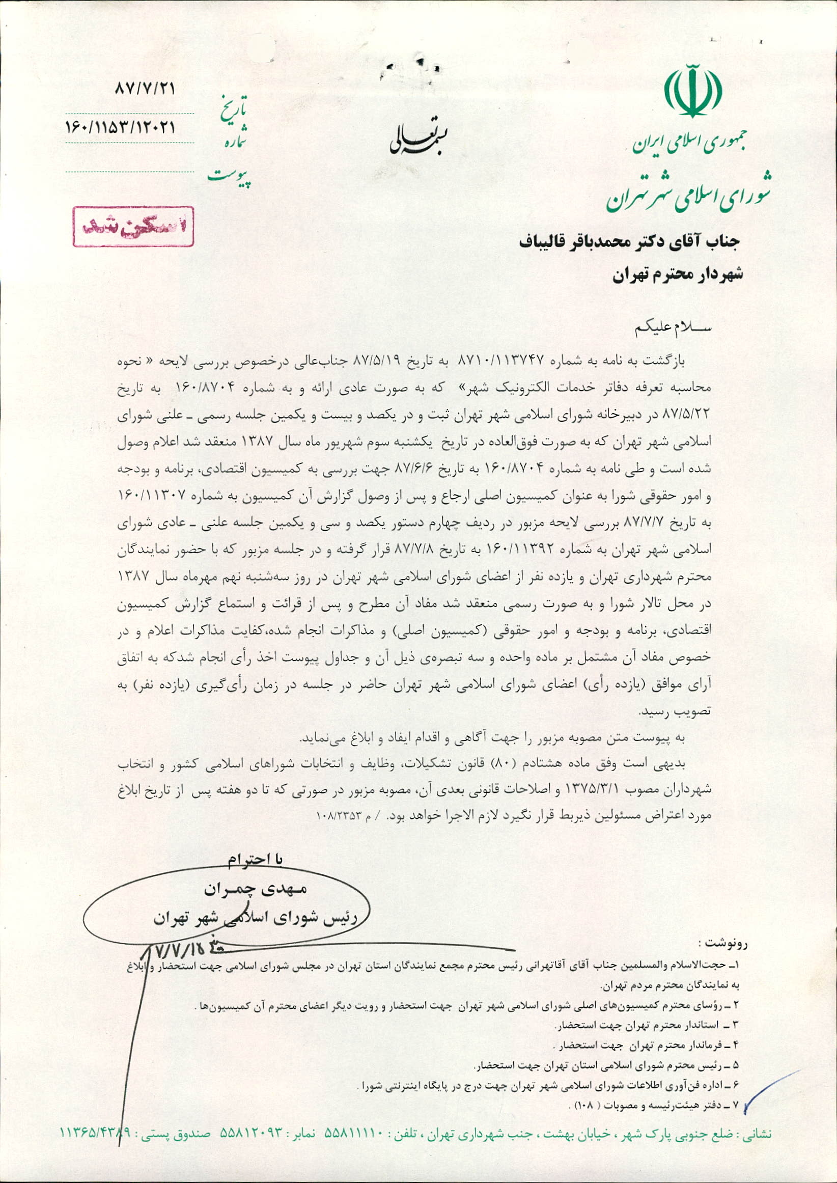 تاریخ صدور(ابلاغ) : 1387/07/21