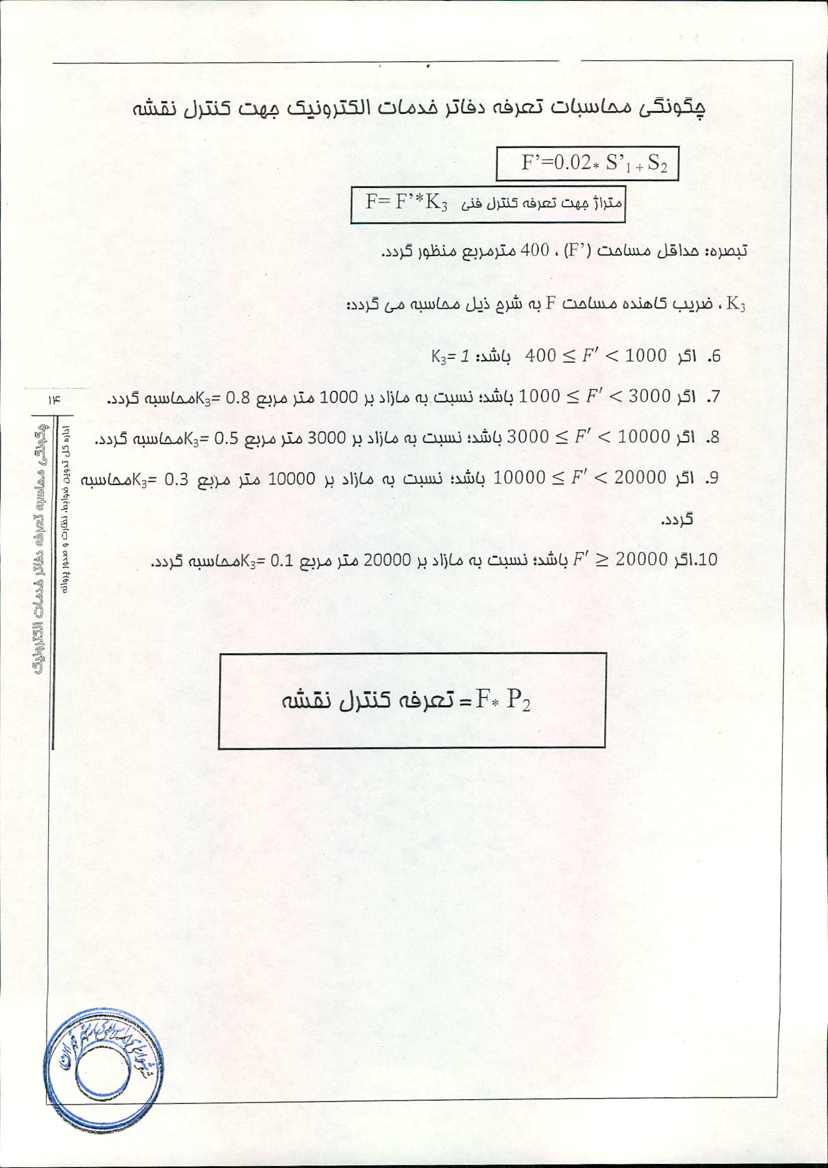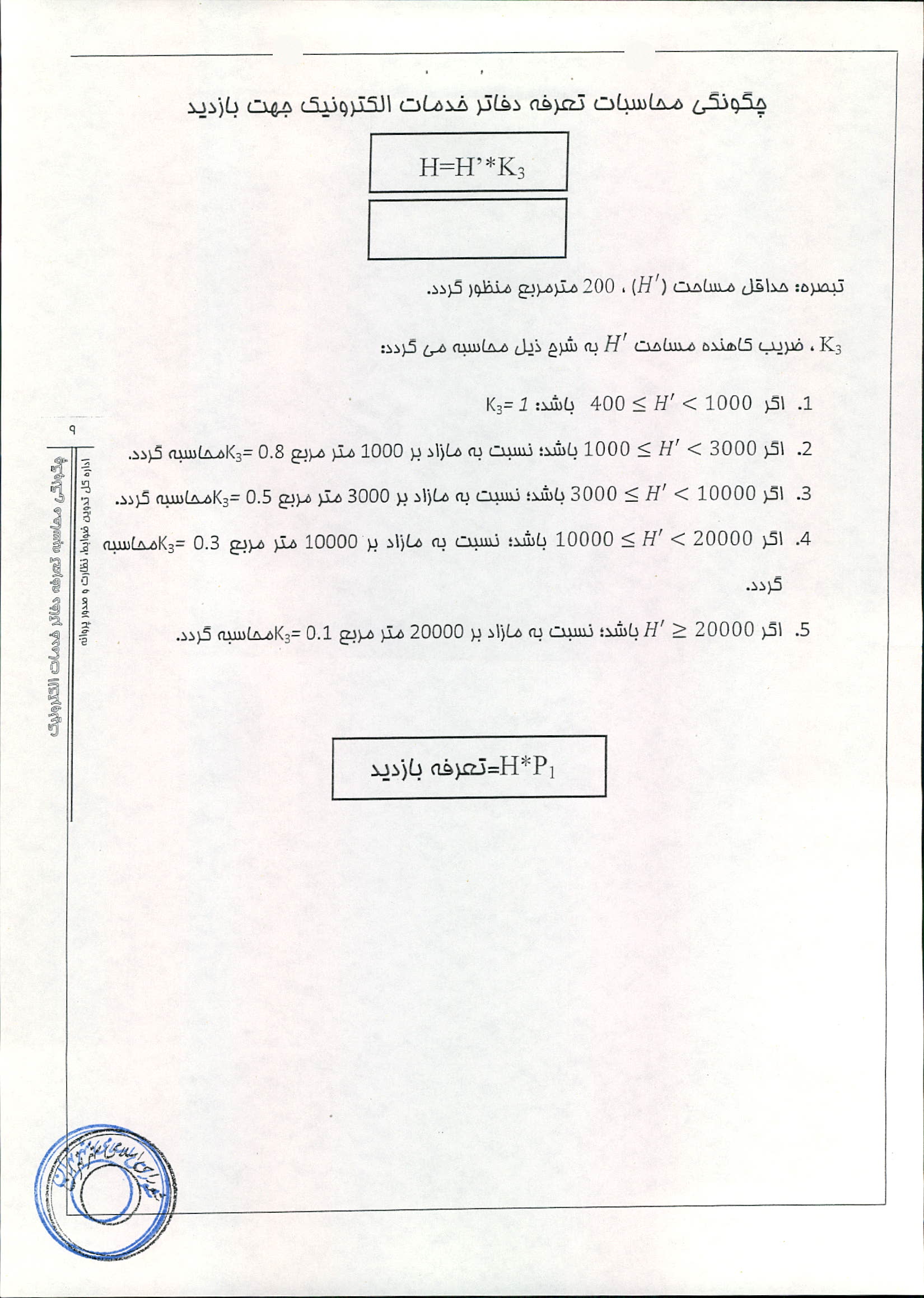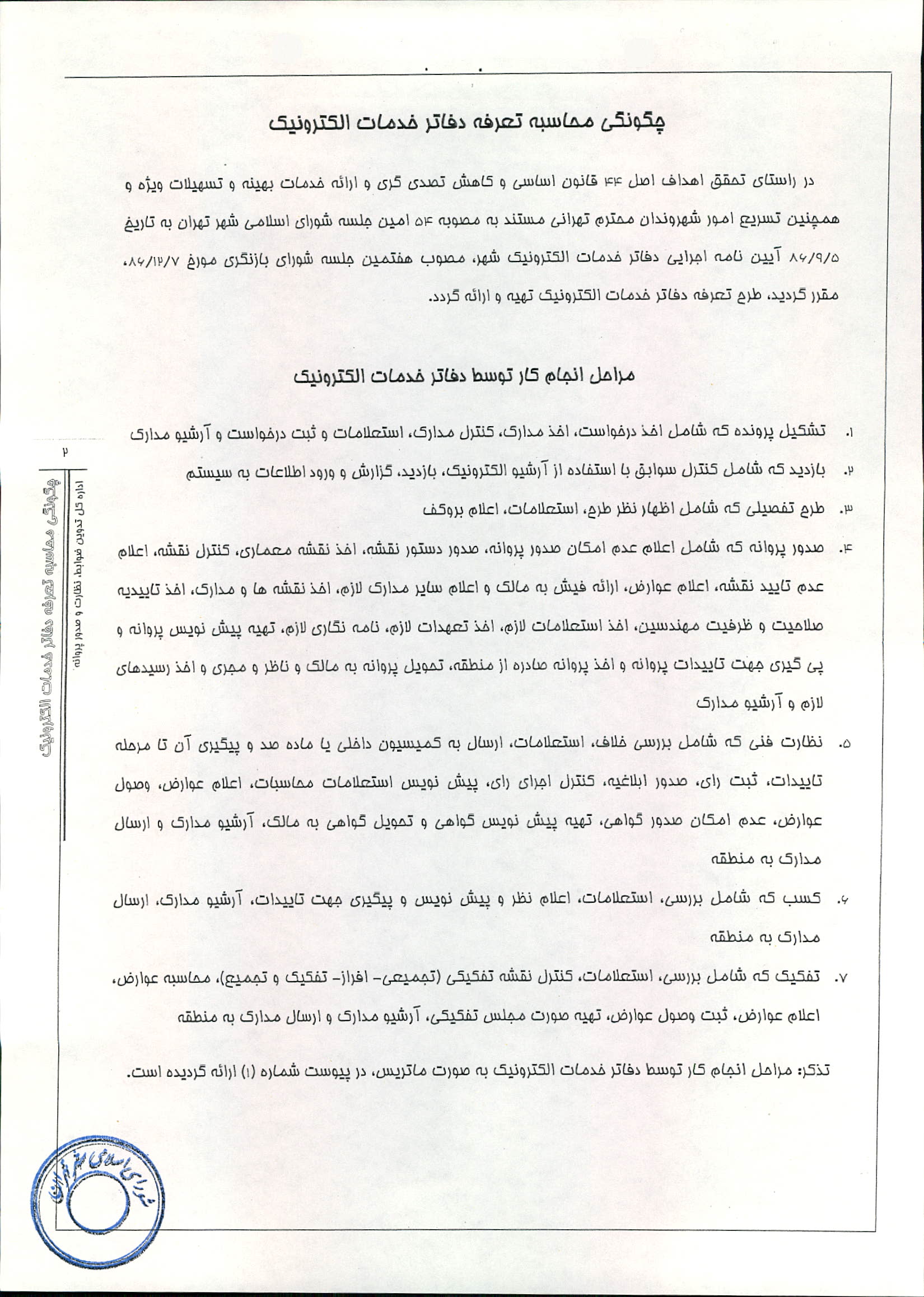 نحوه محاسبه تعرفه دفاتر خدمات الكترونيك شهر تهران