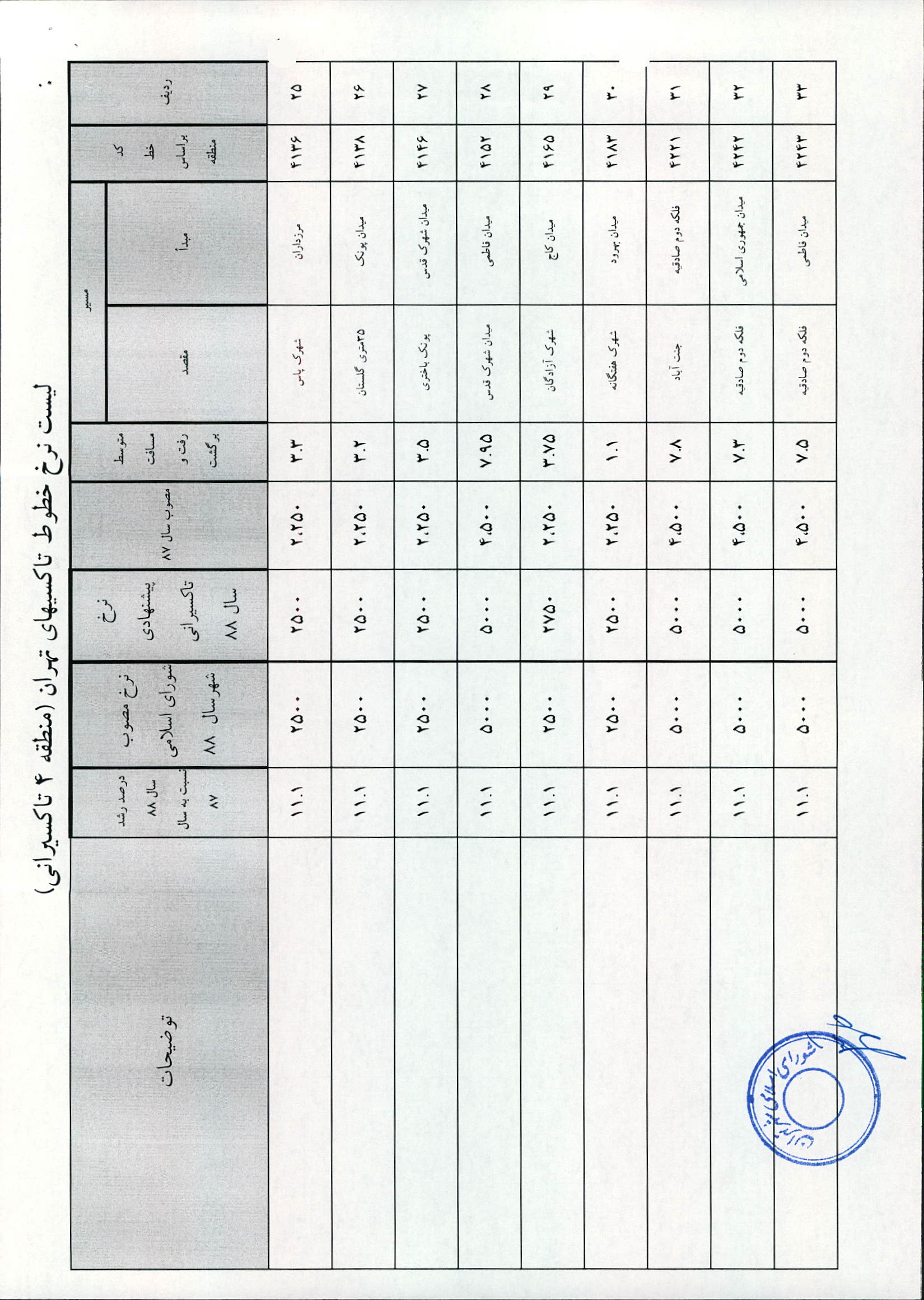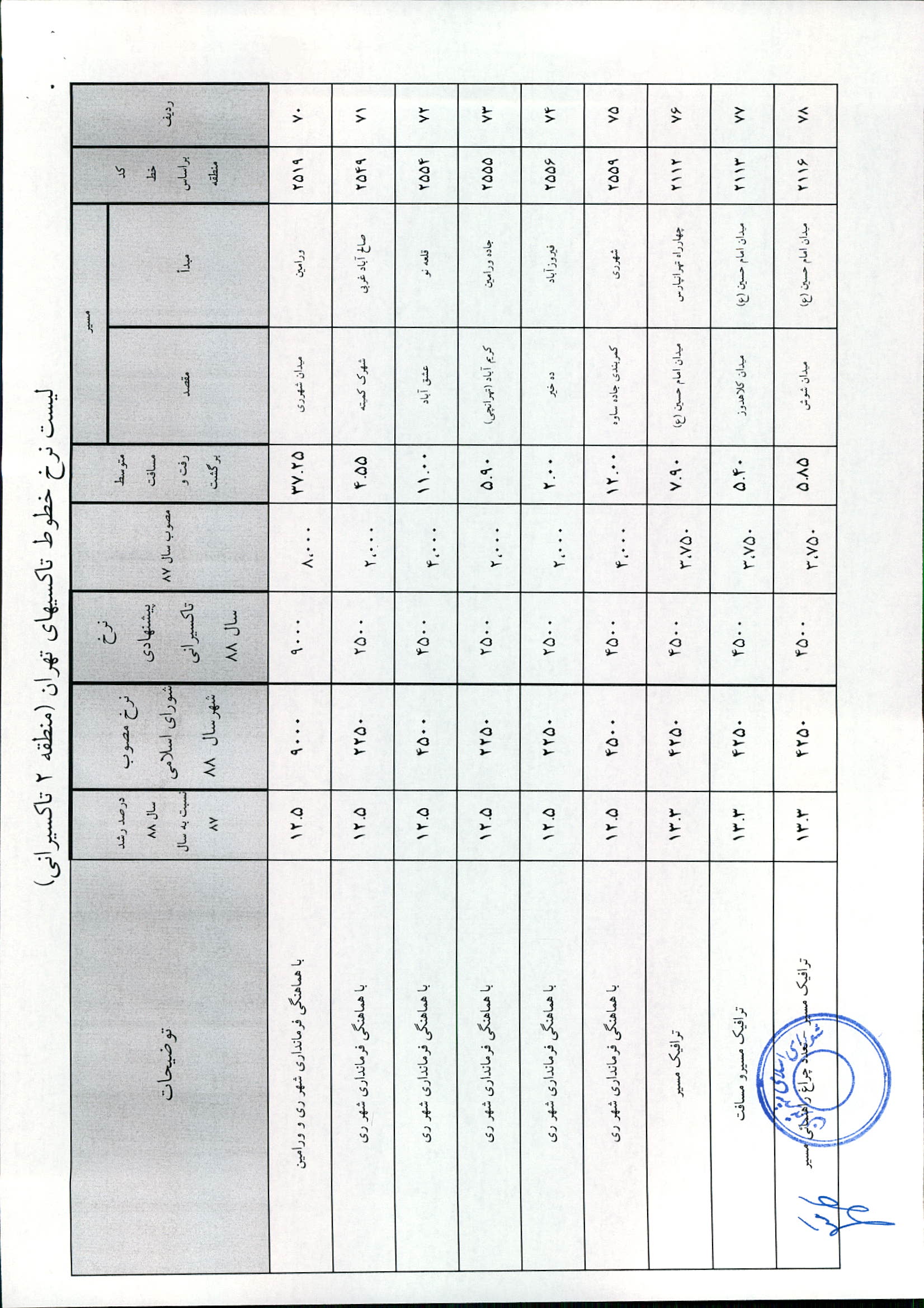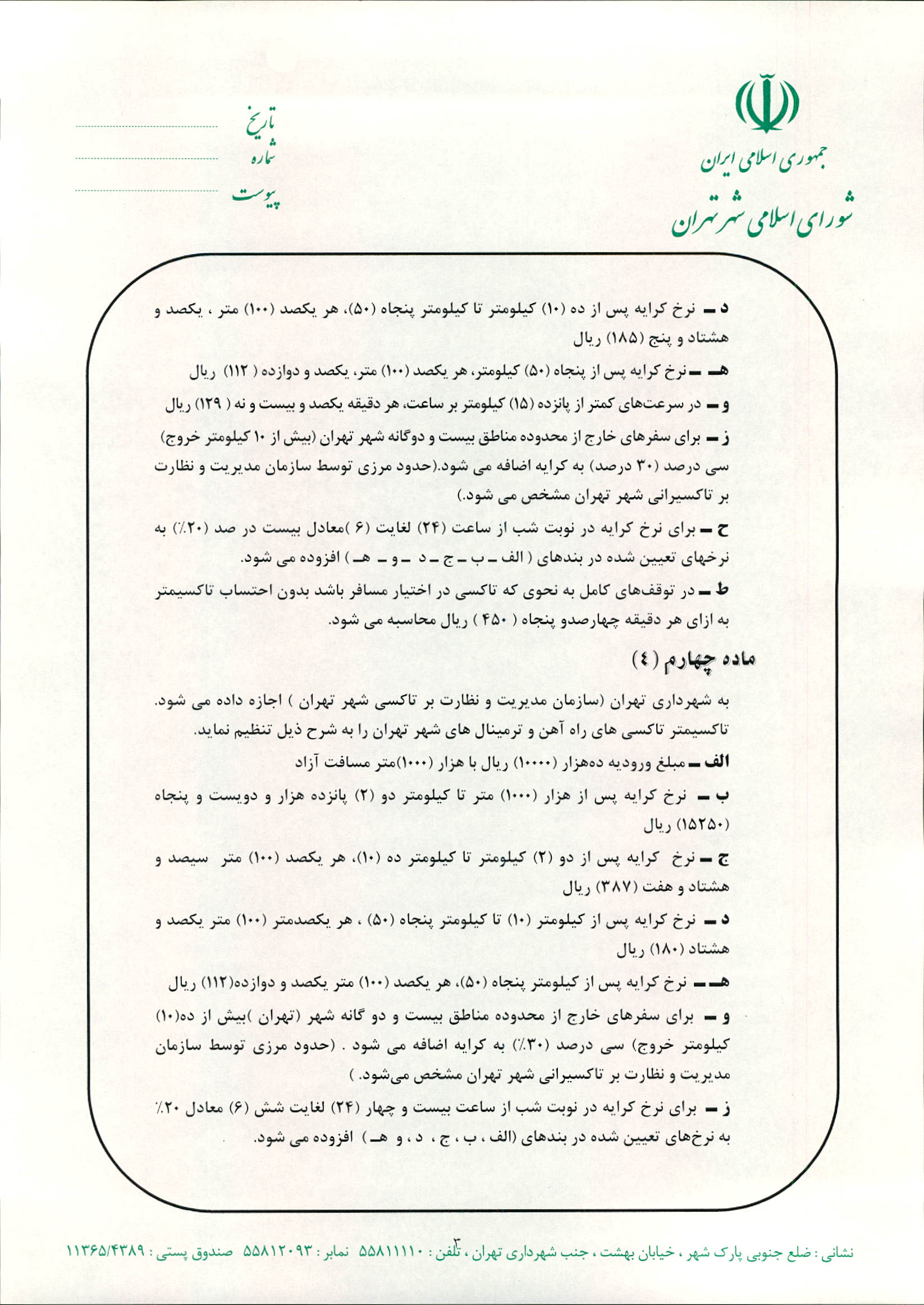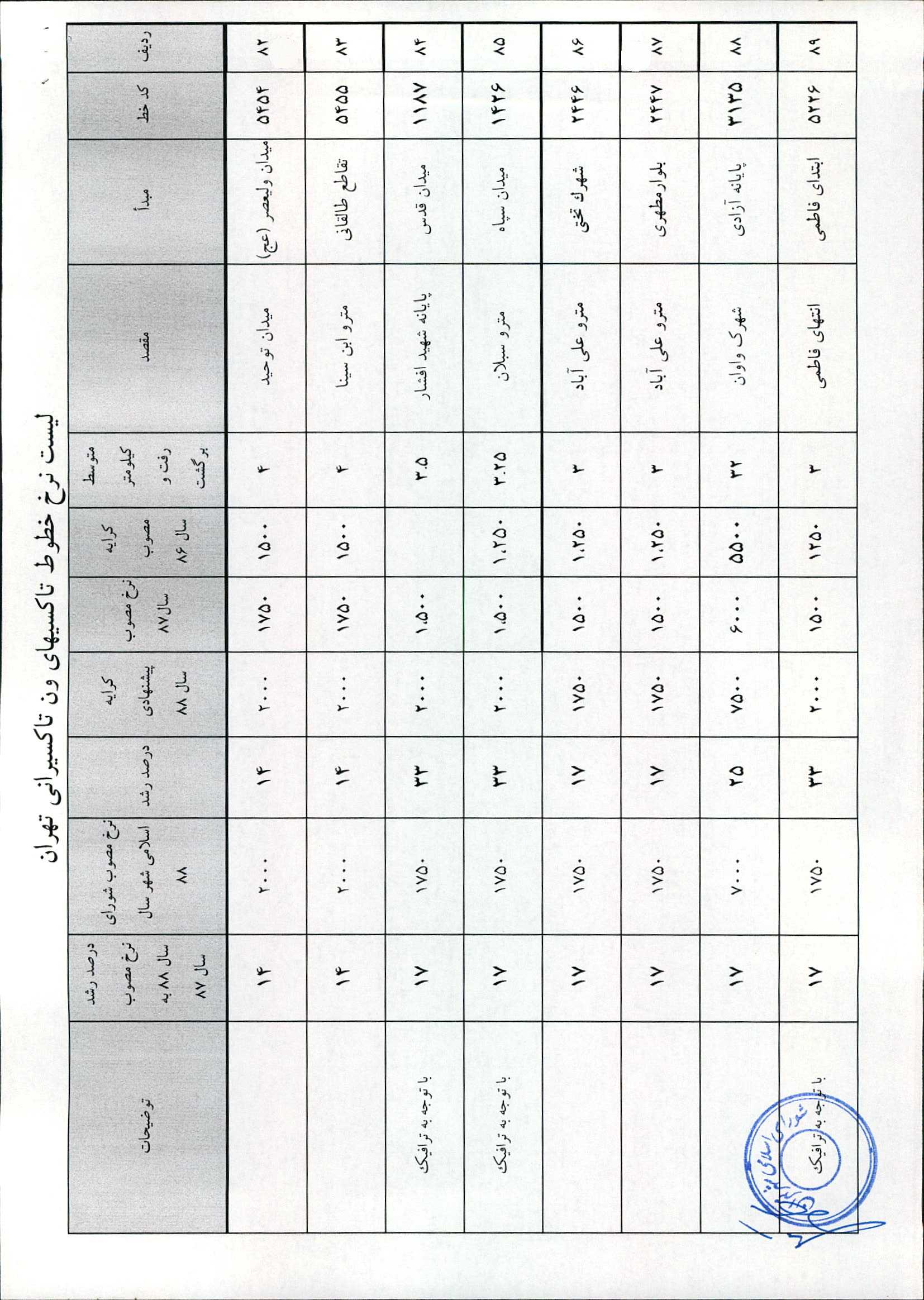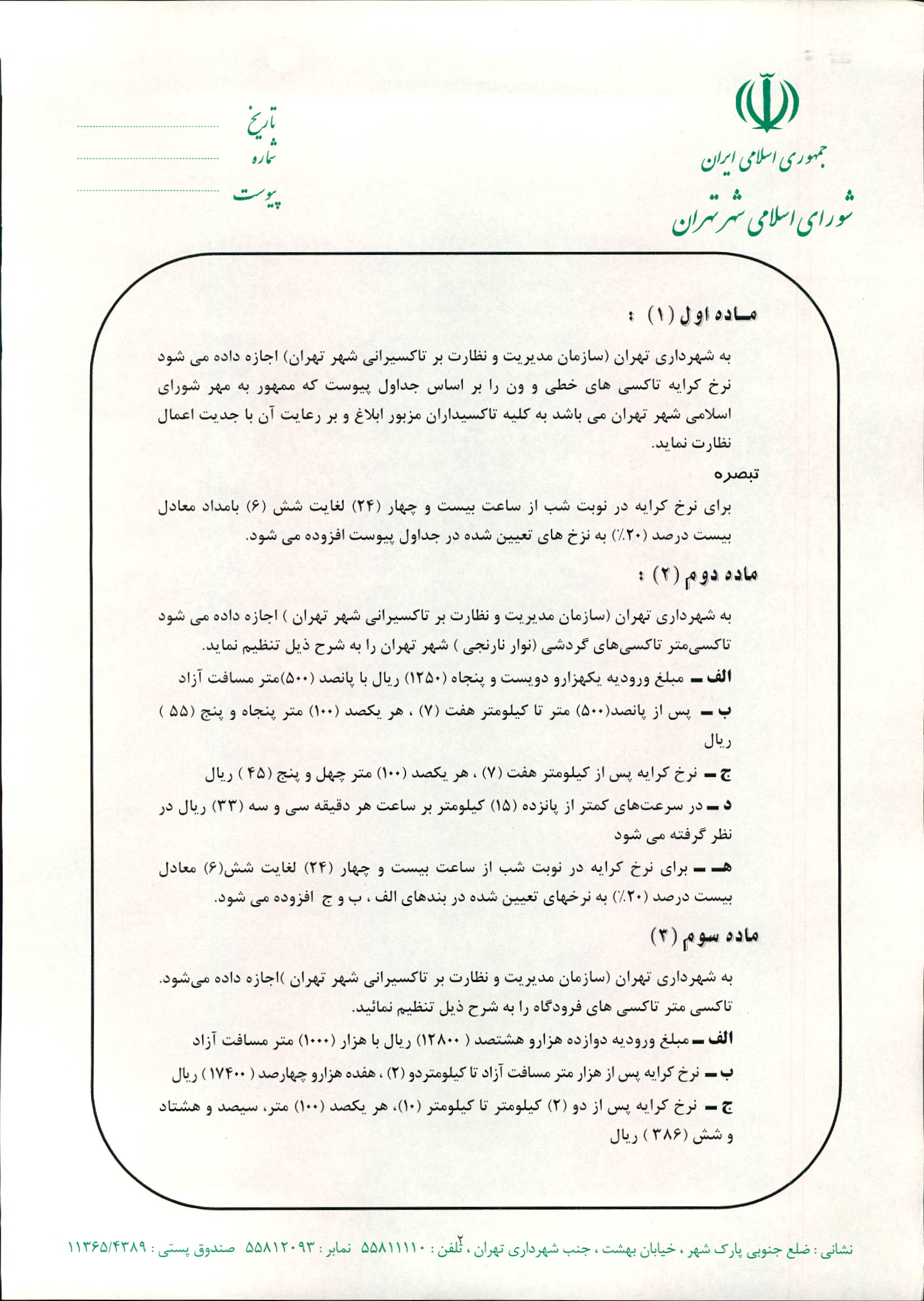 تعيين نرخ كرايه انواع تاكسي در شهر تهران