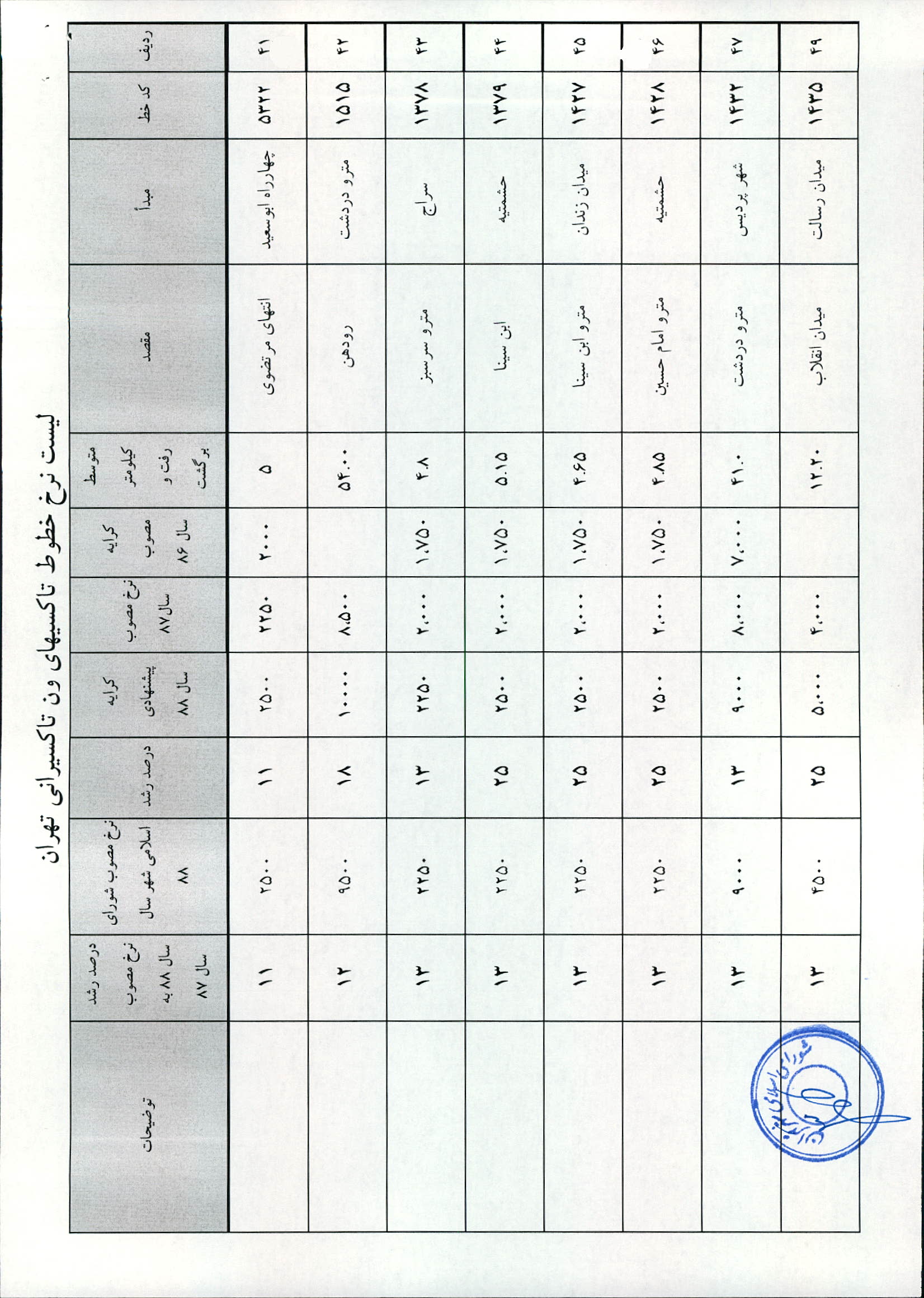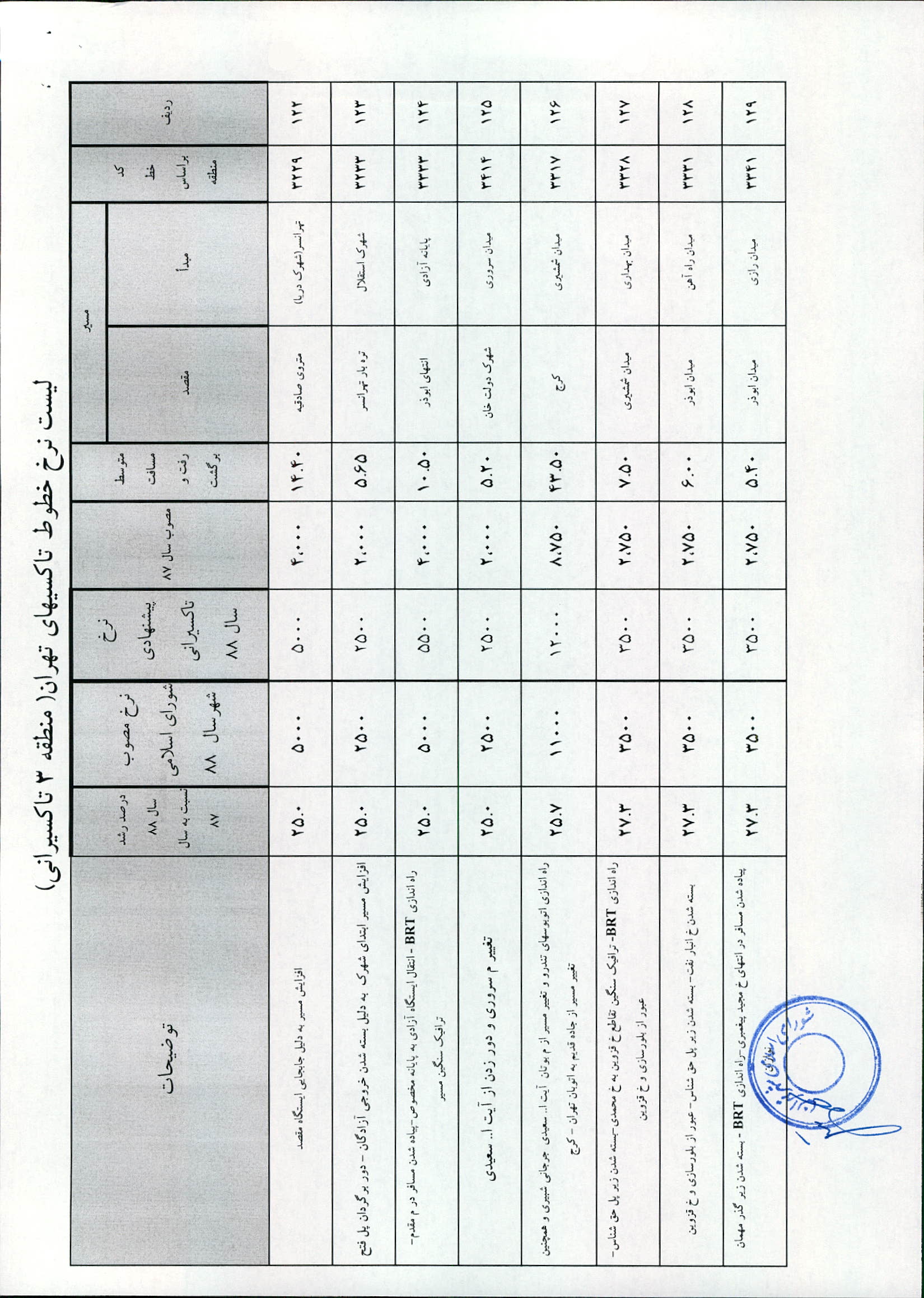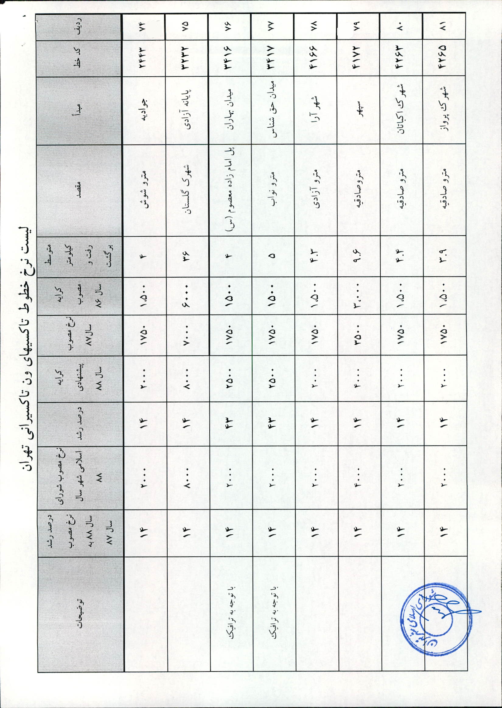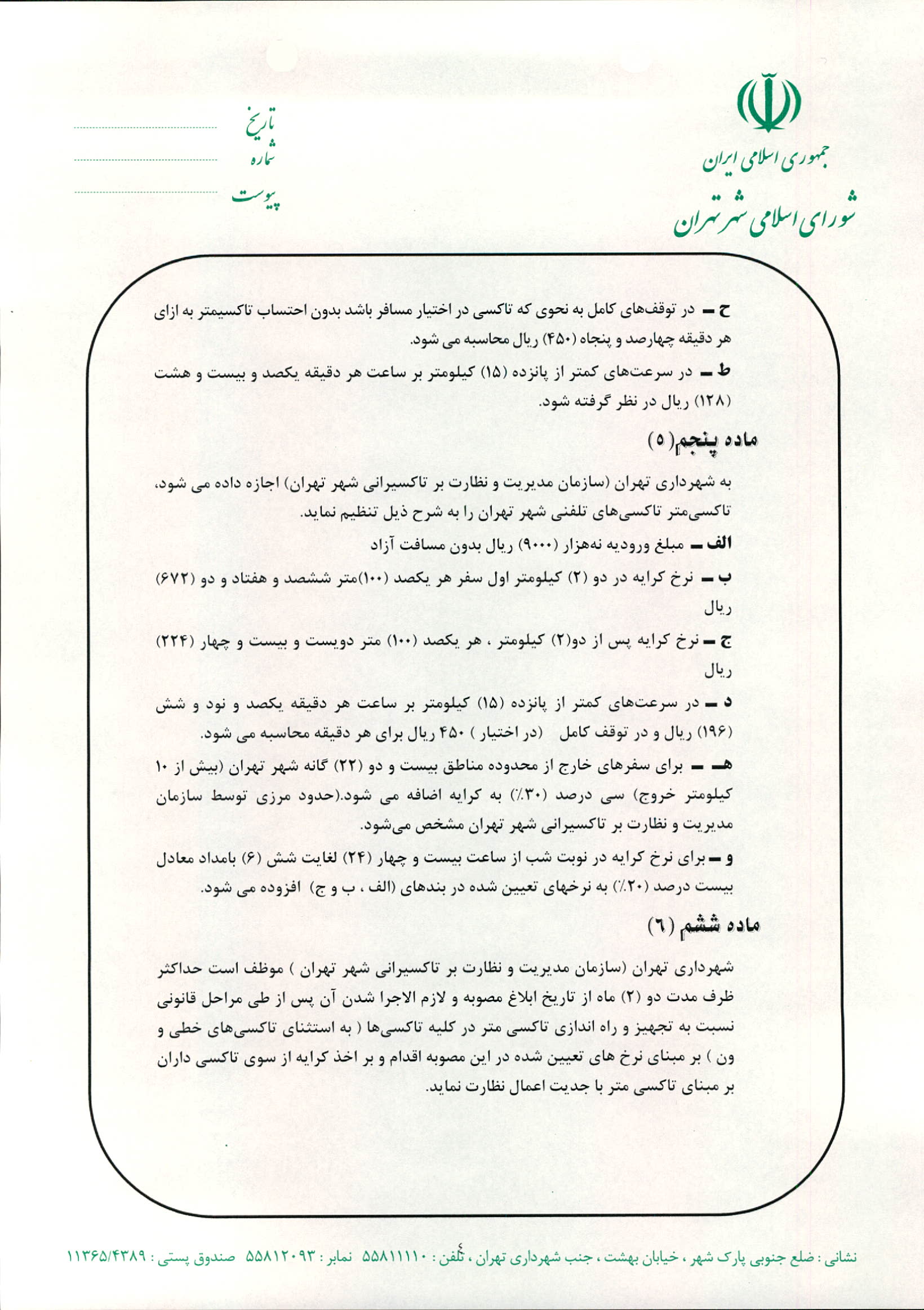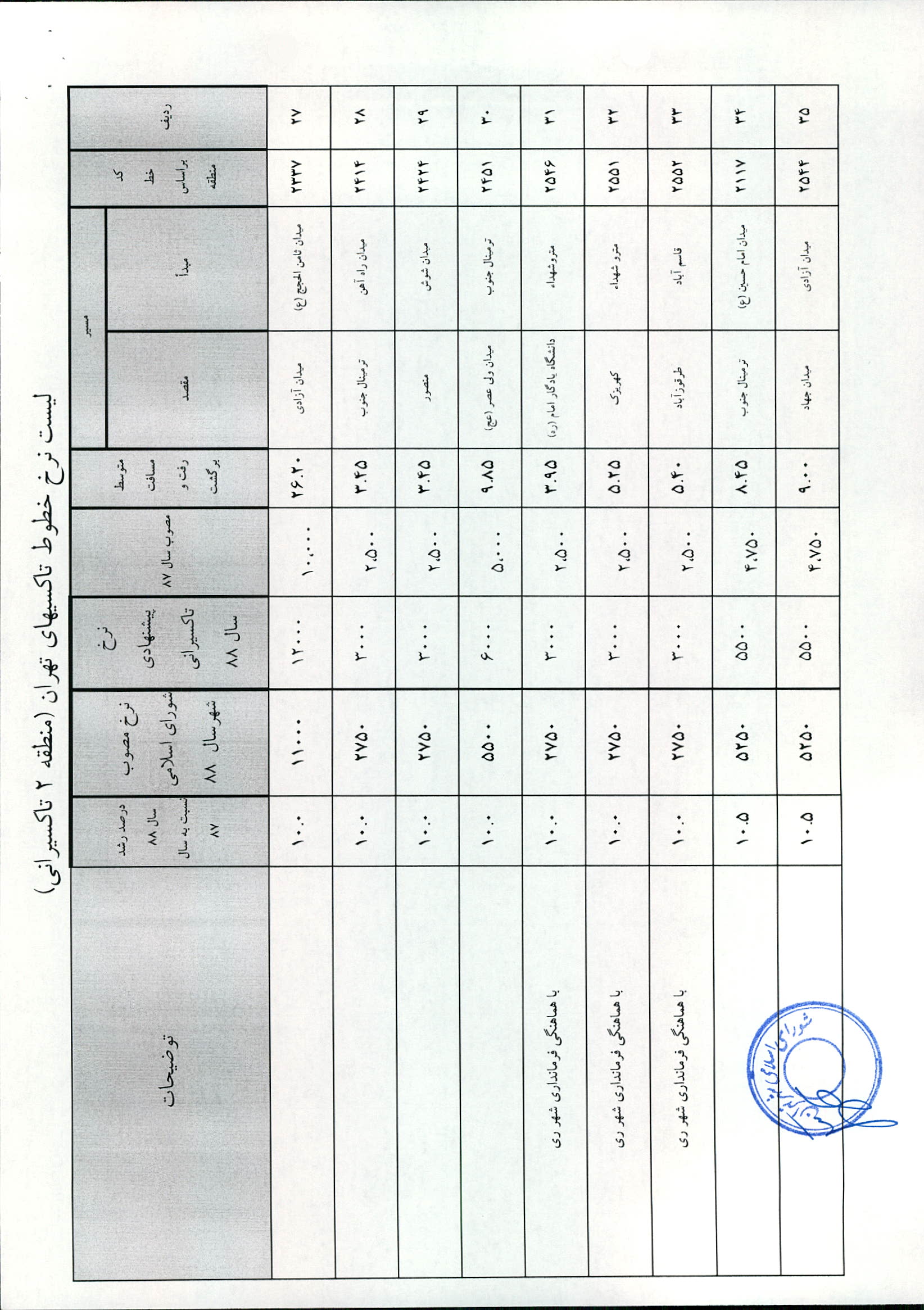 تعيين نرخ كرايه انواع تاكسي در شهر تهران