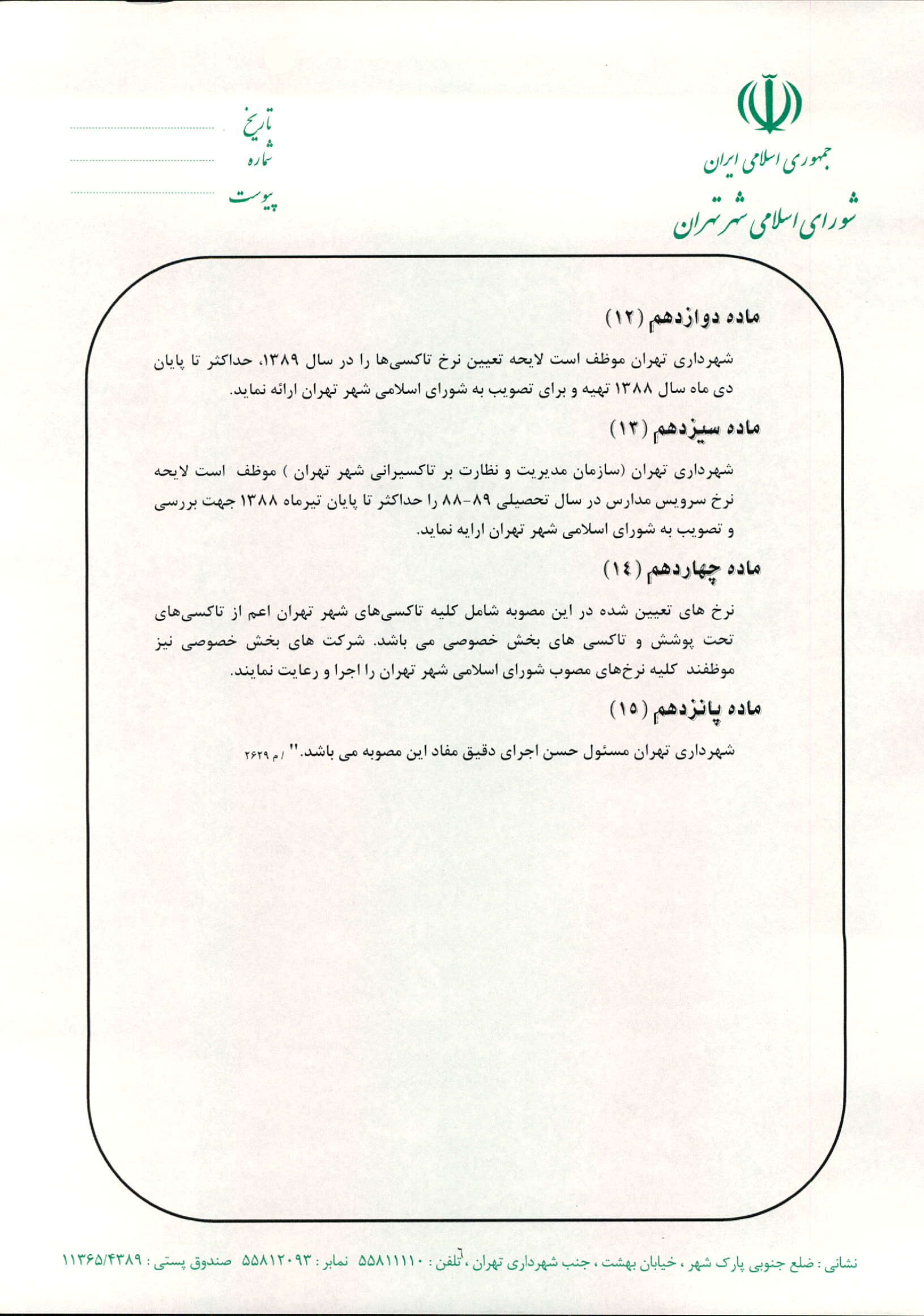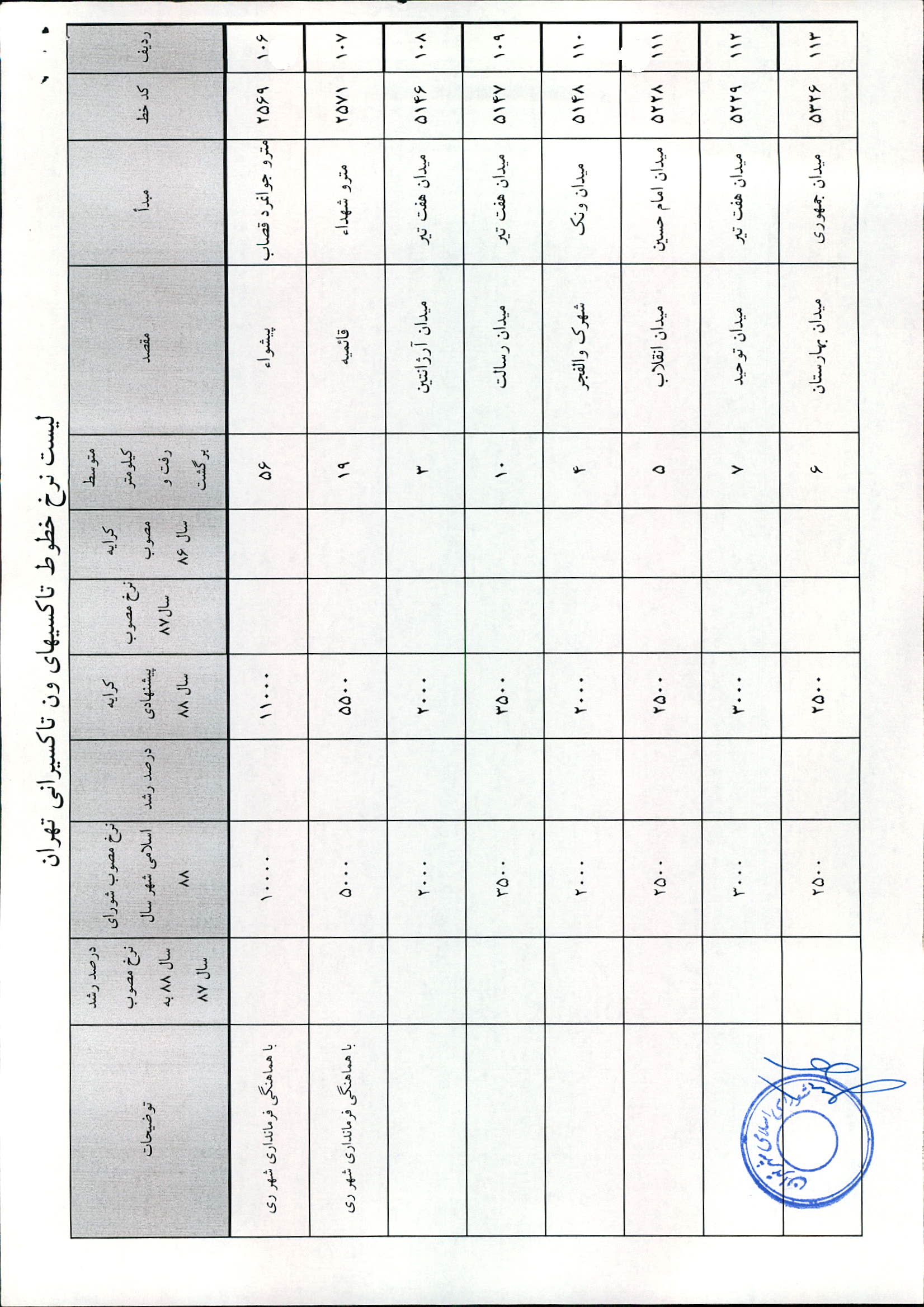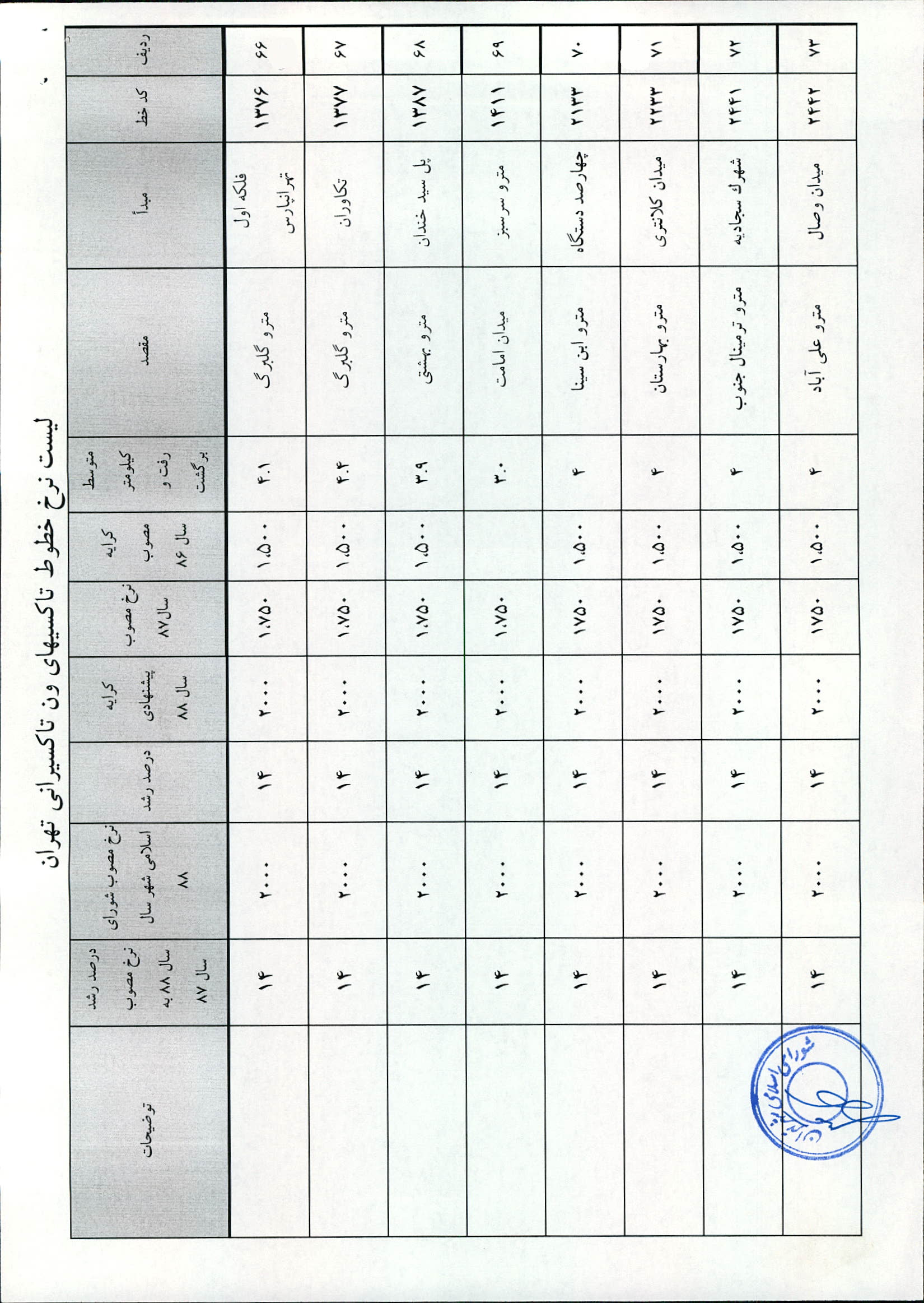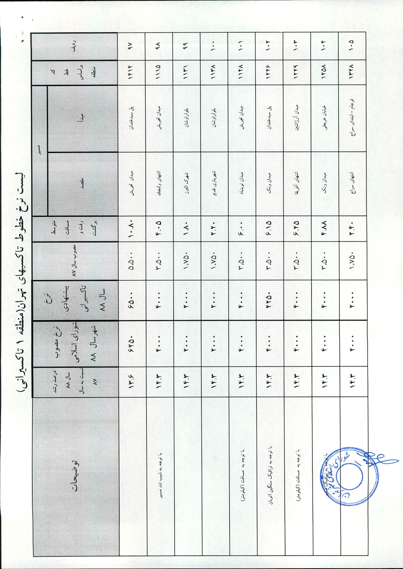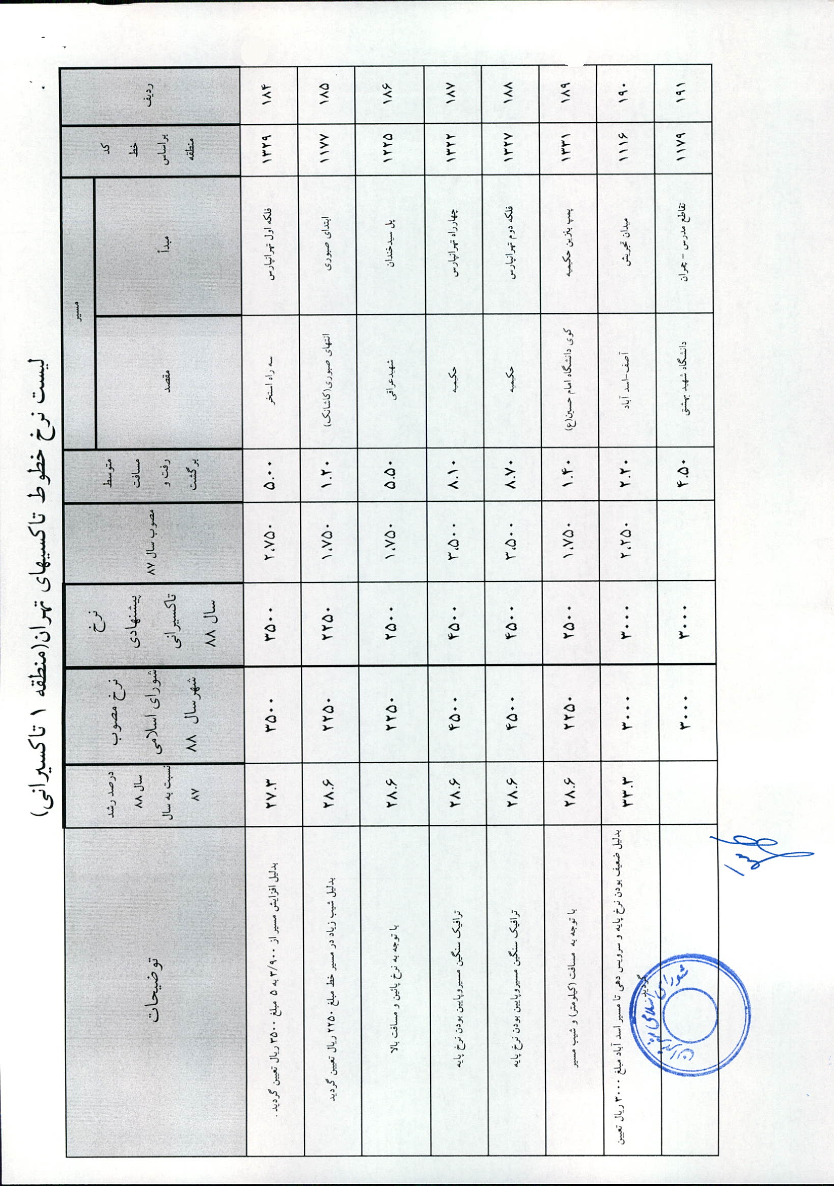تعيين نرخ كرايه انواع تاكسي در شهر تهران
