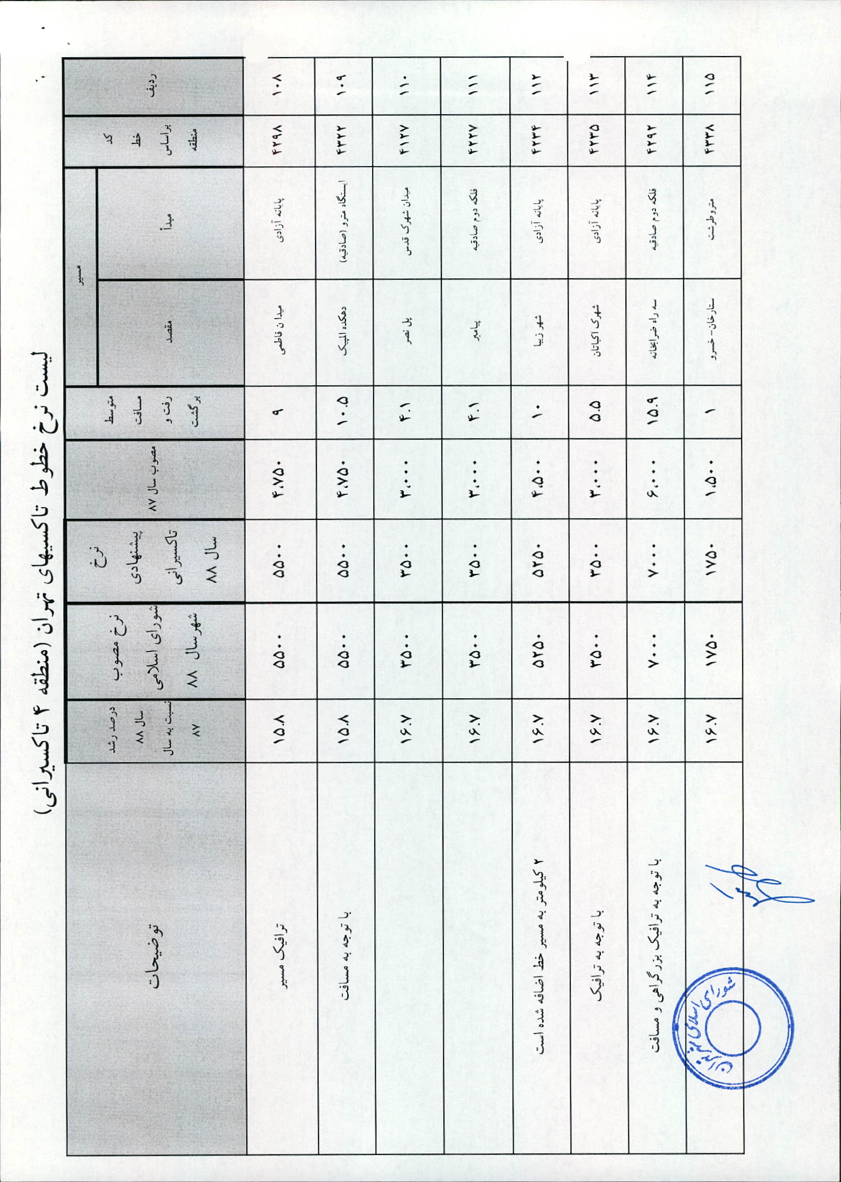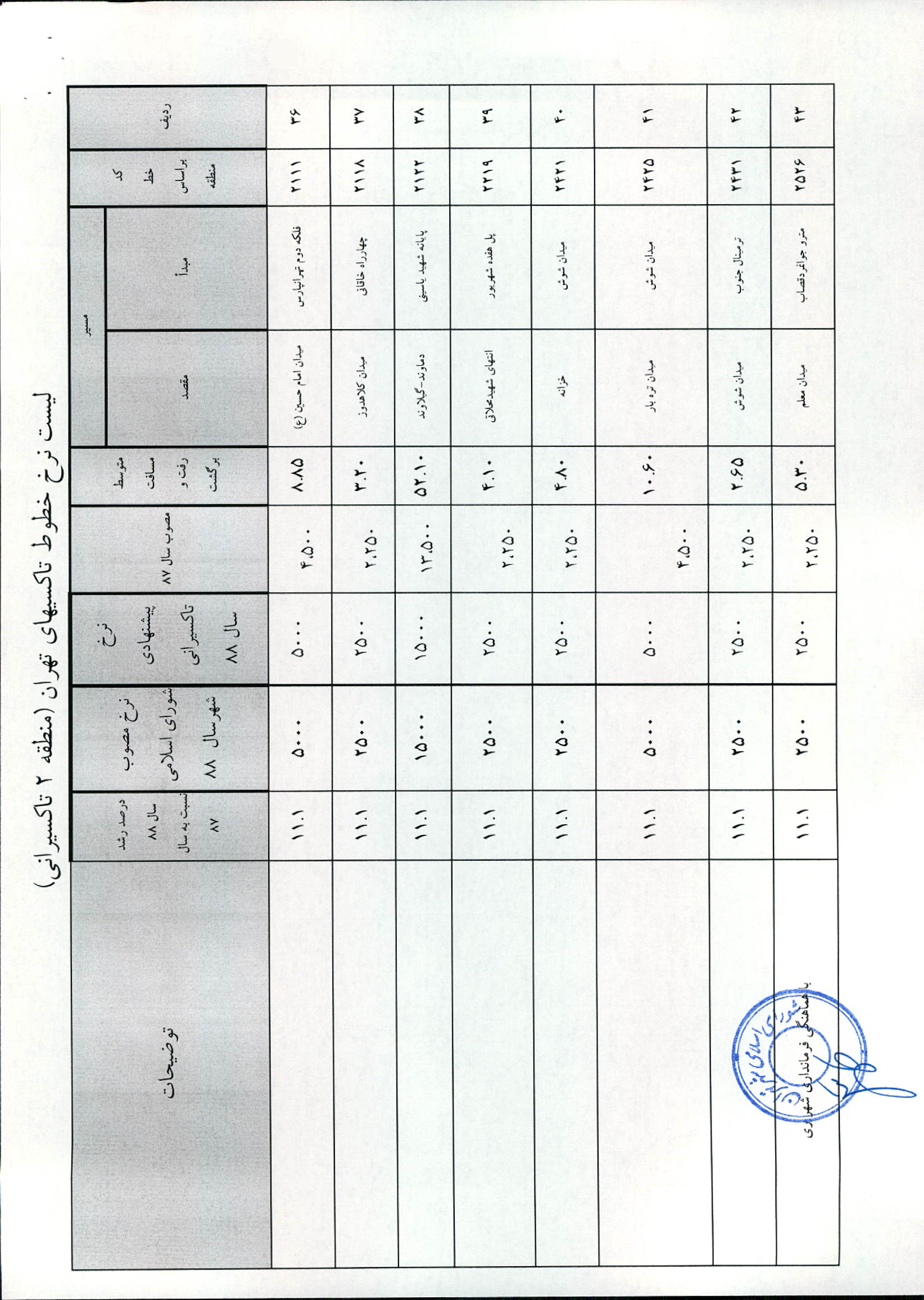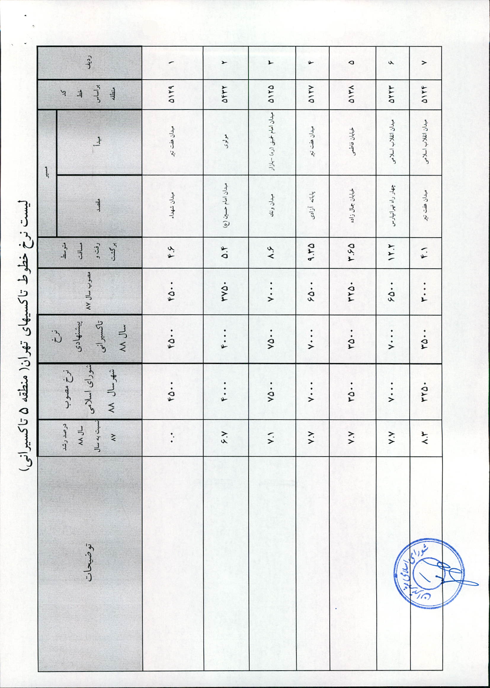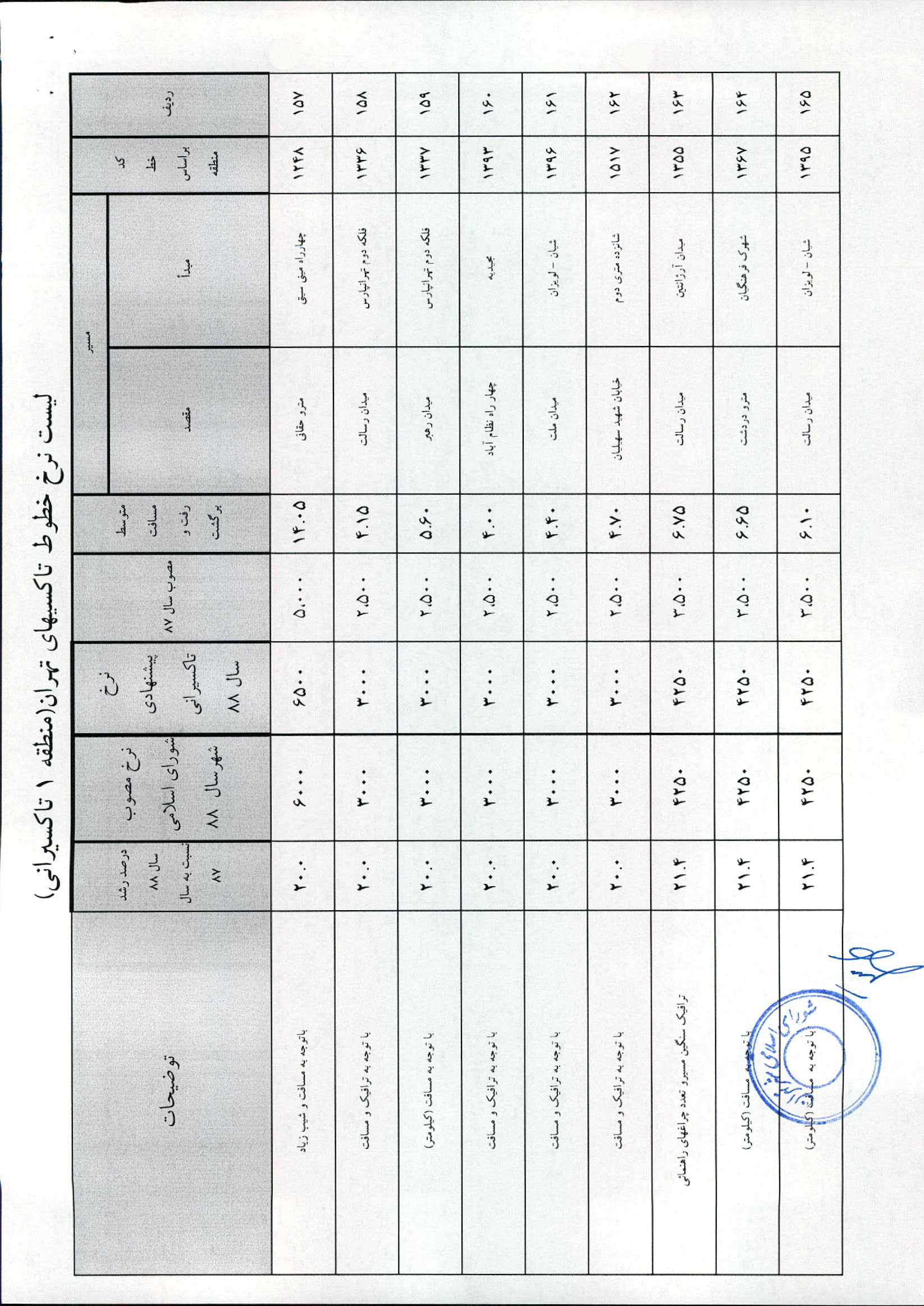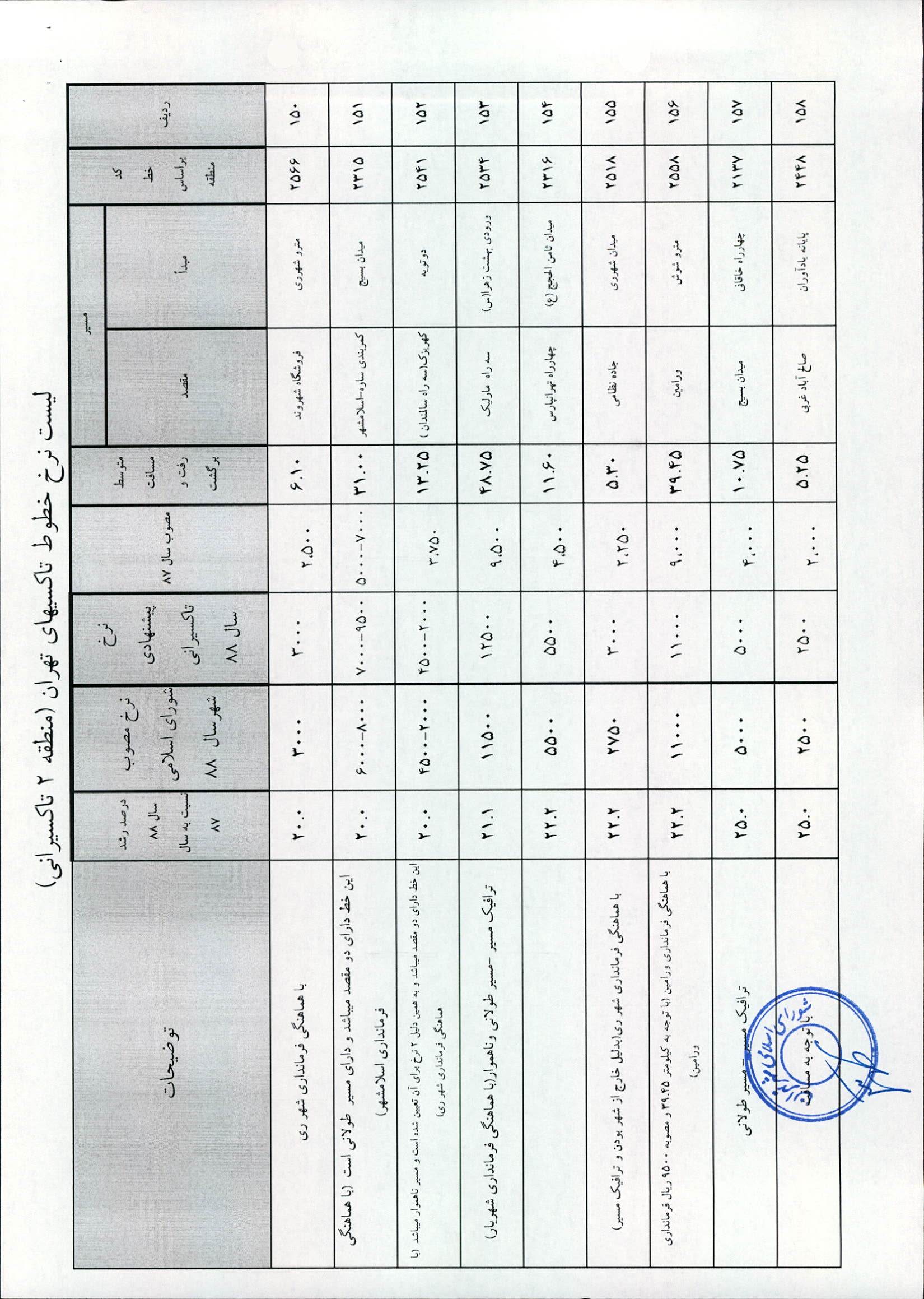 تعيين نرخ كرايه انواع تاكسي در شهر تهران