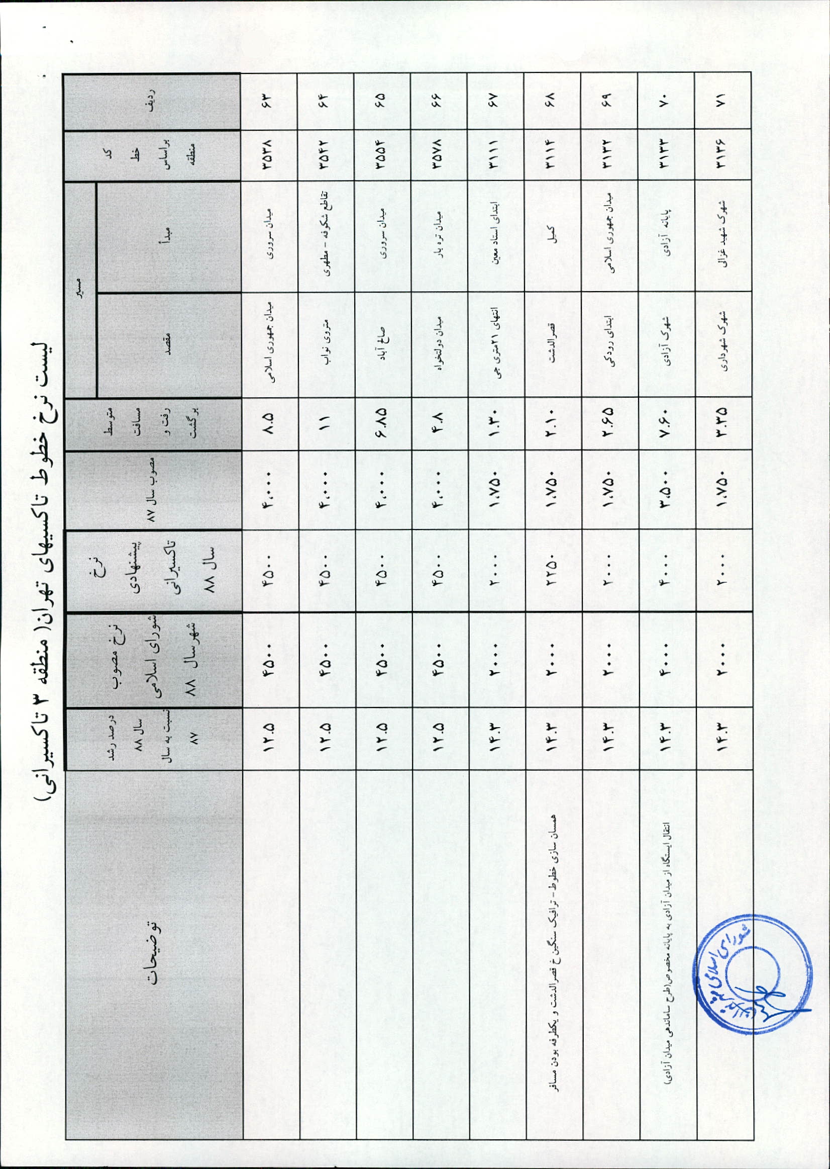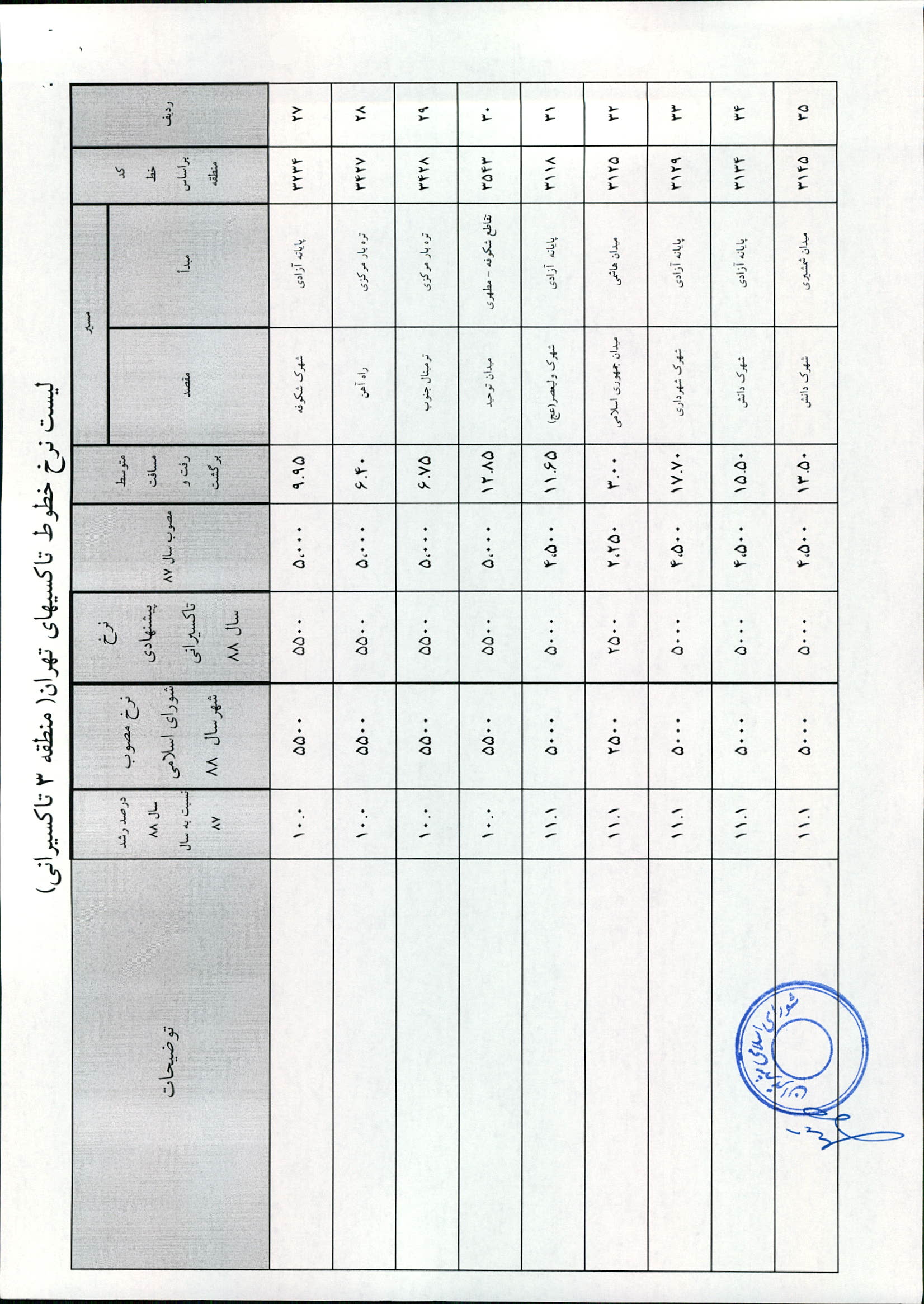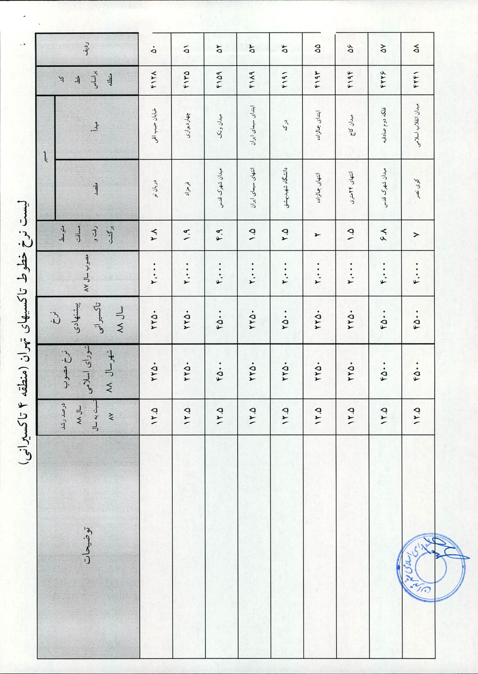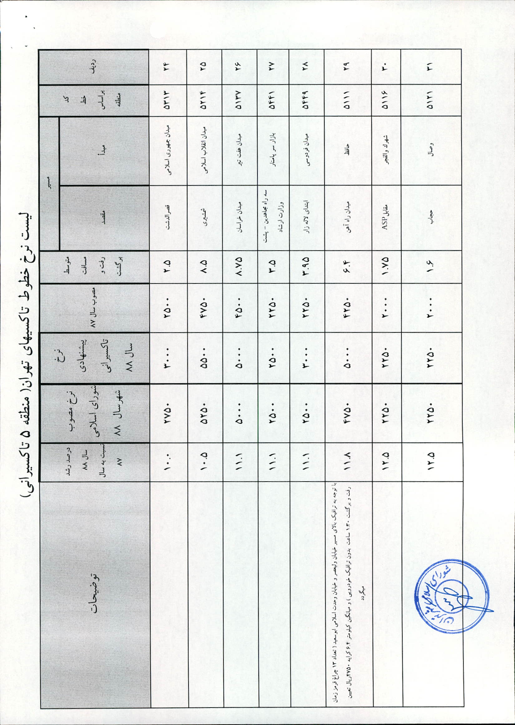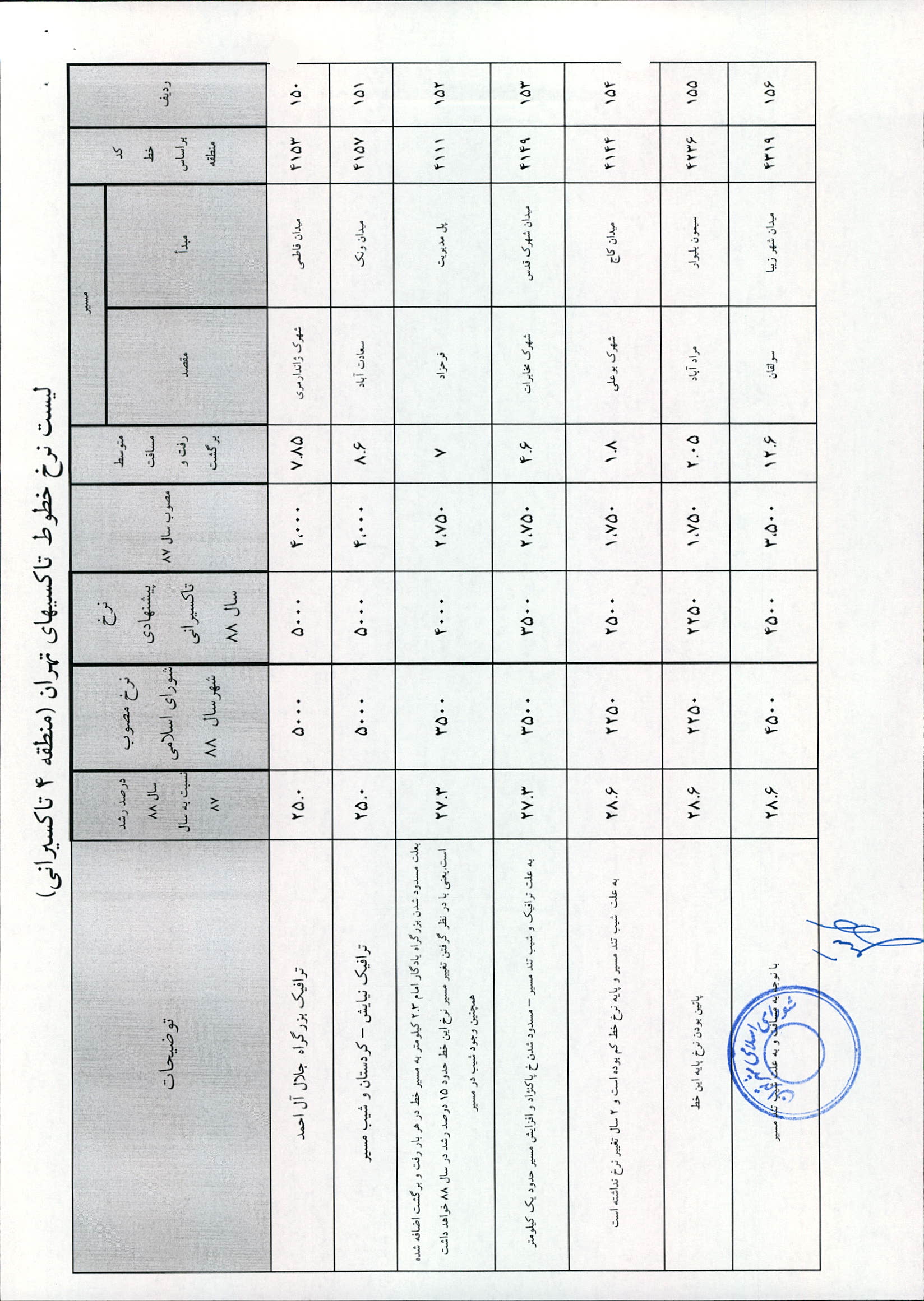 تعيين نرخ كرايه انواع تاكسي در شهر تهران