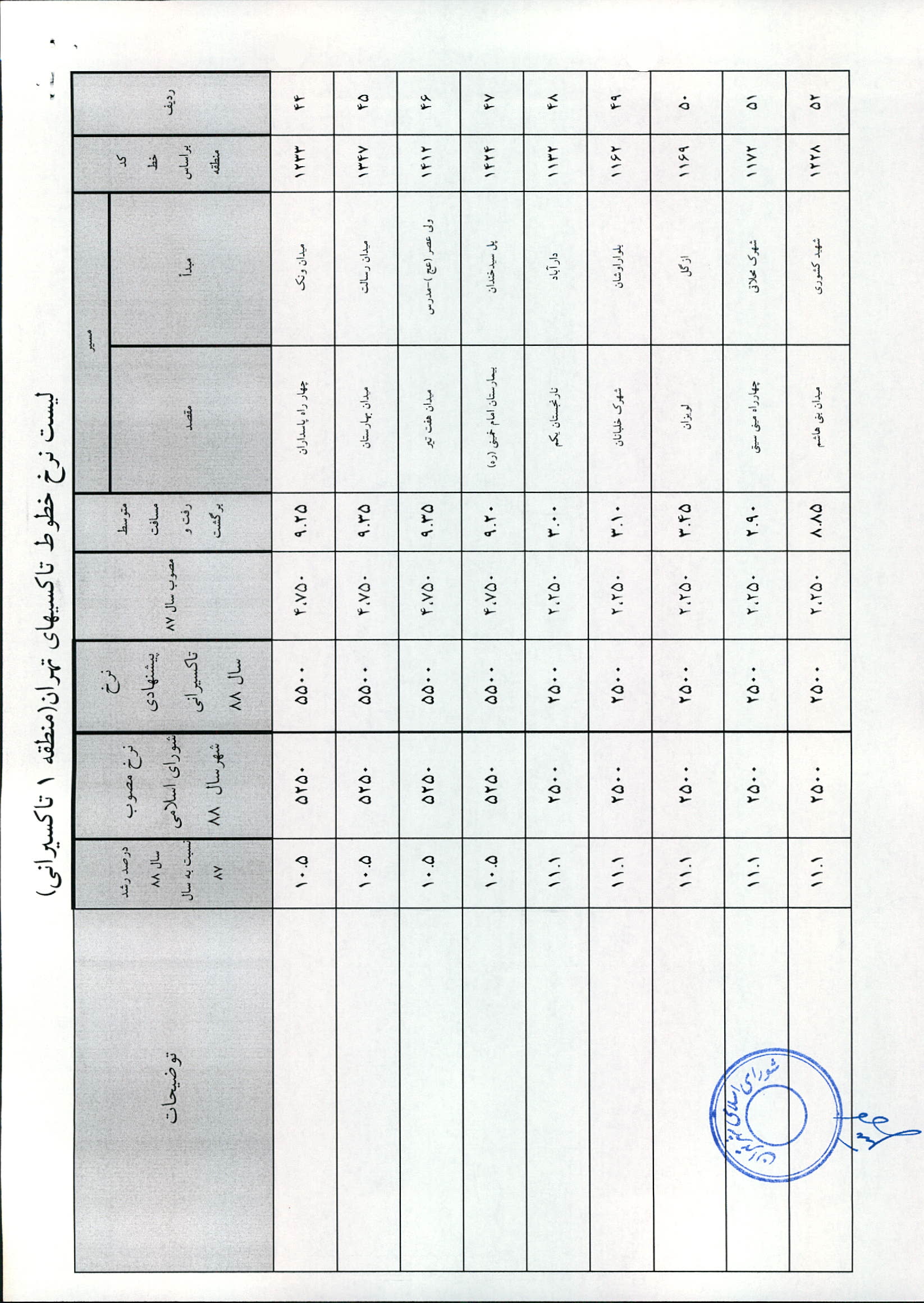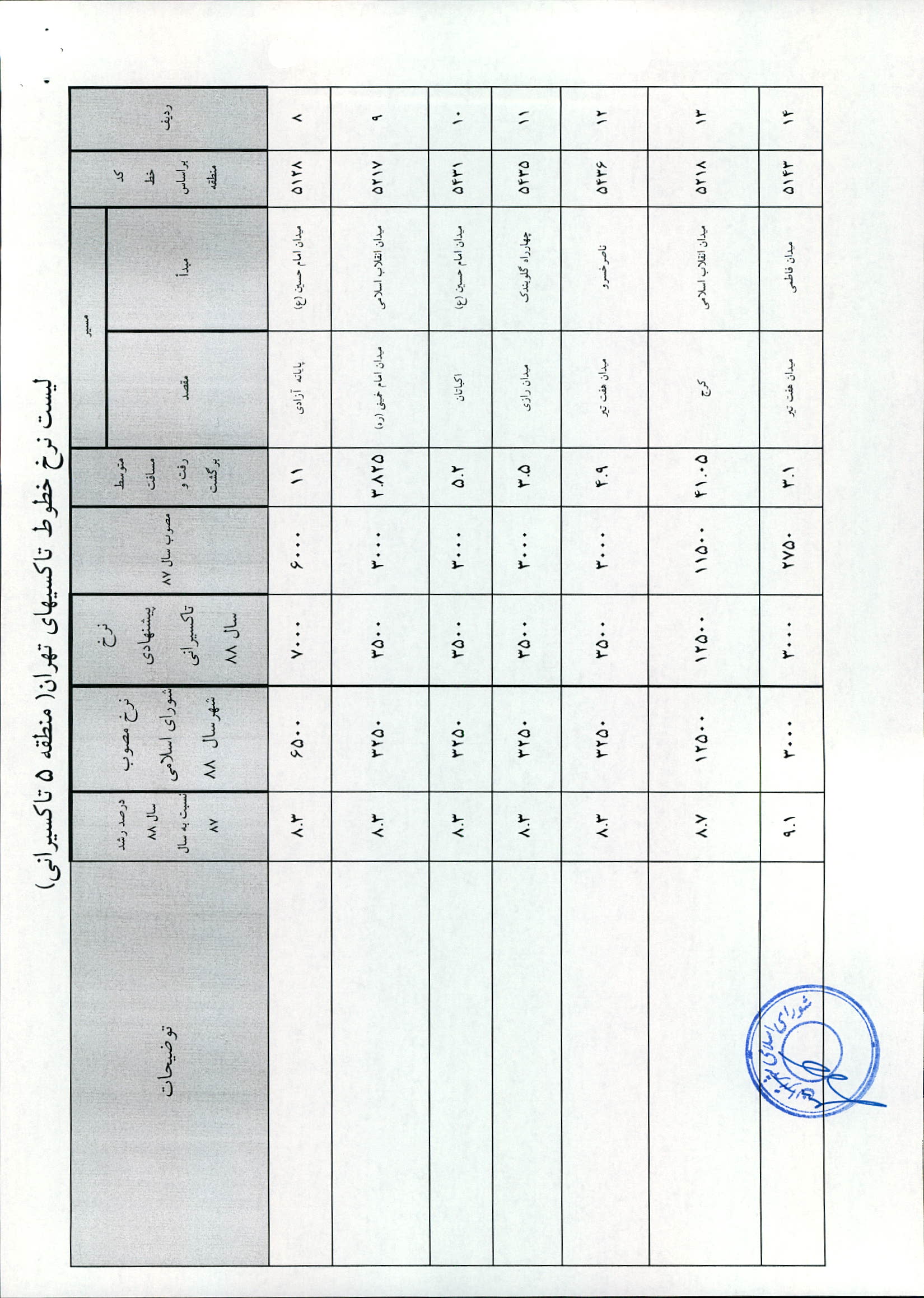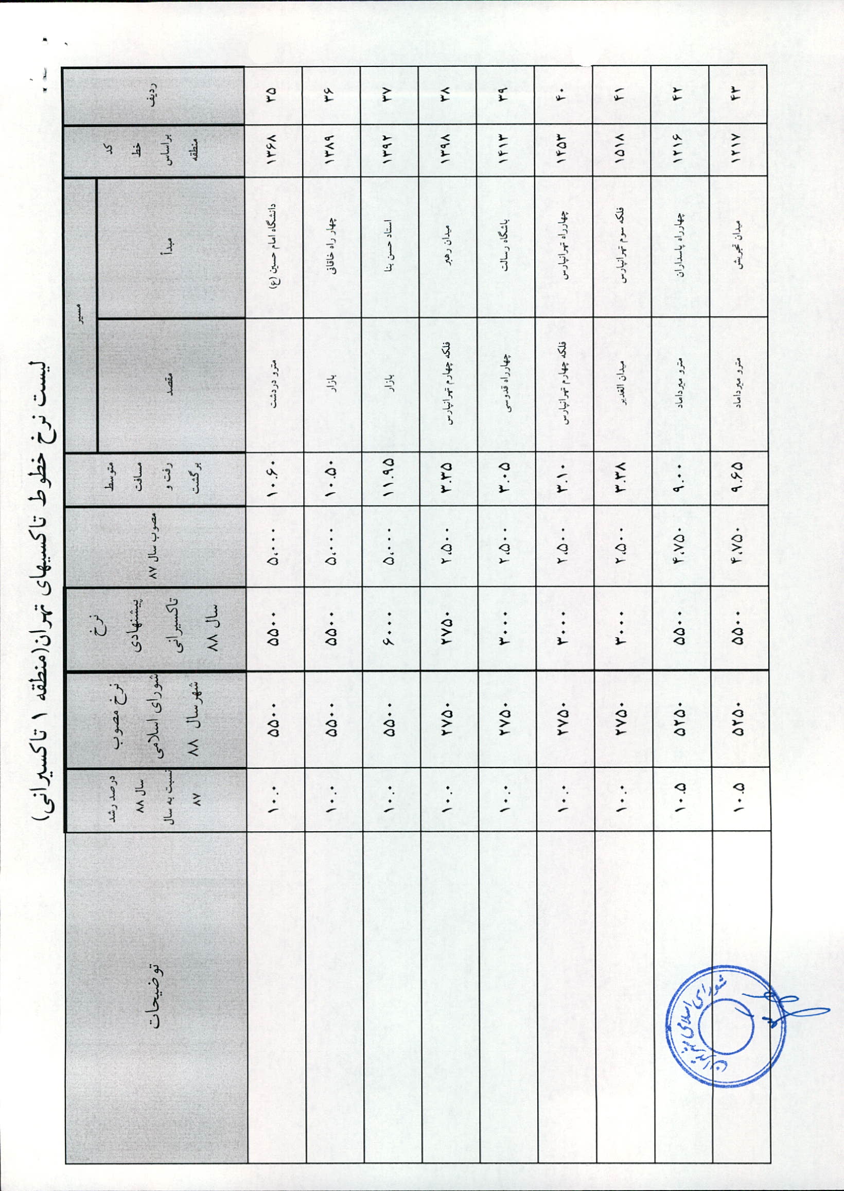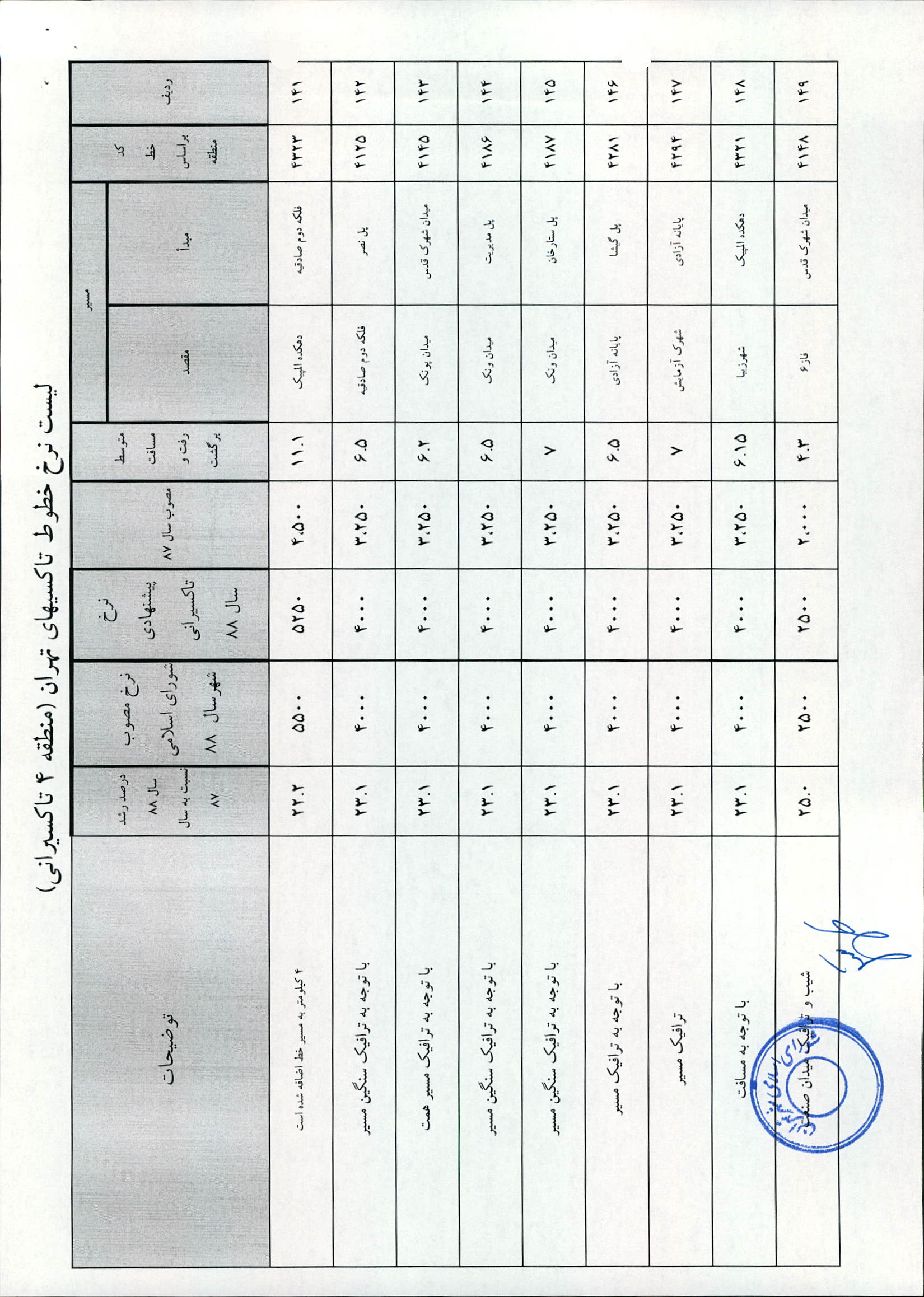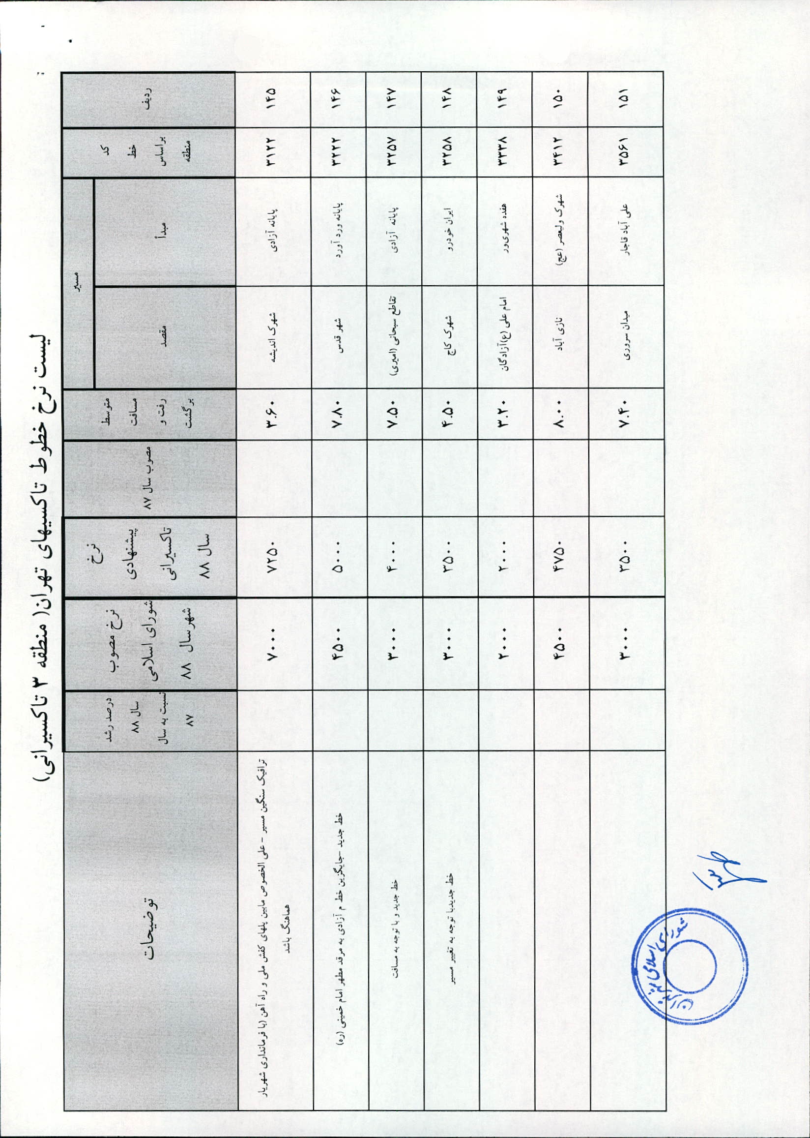 تعيين نرخ كرايه انواع تاكسي در شهر تهران