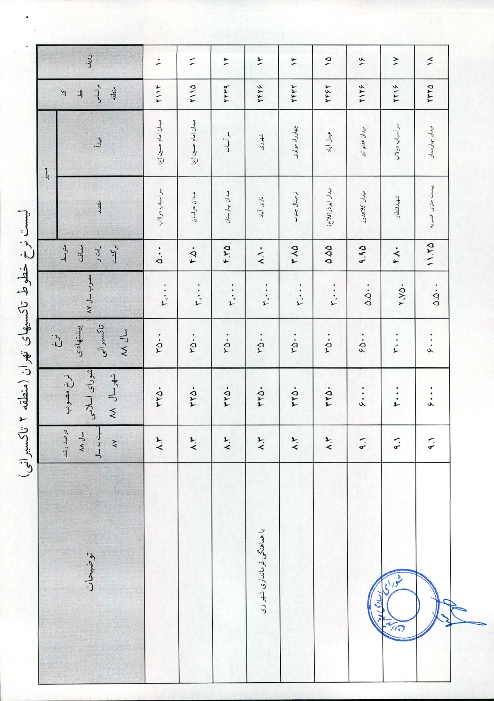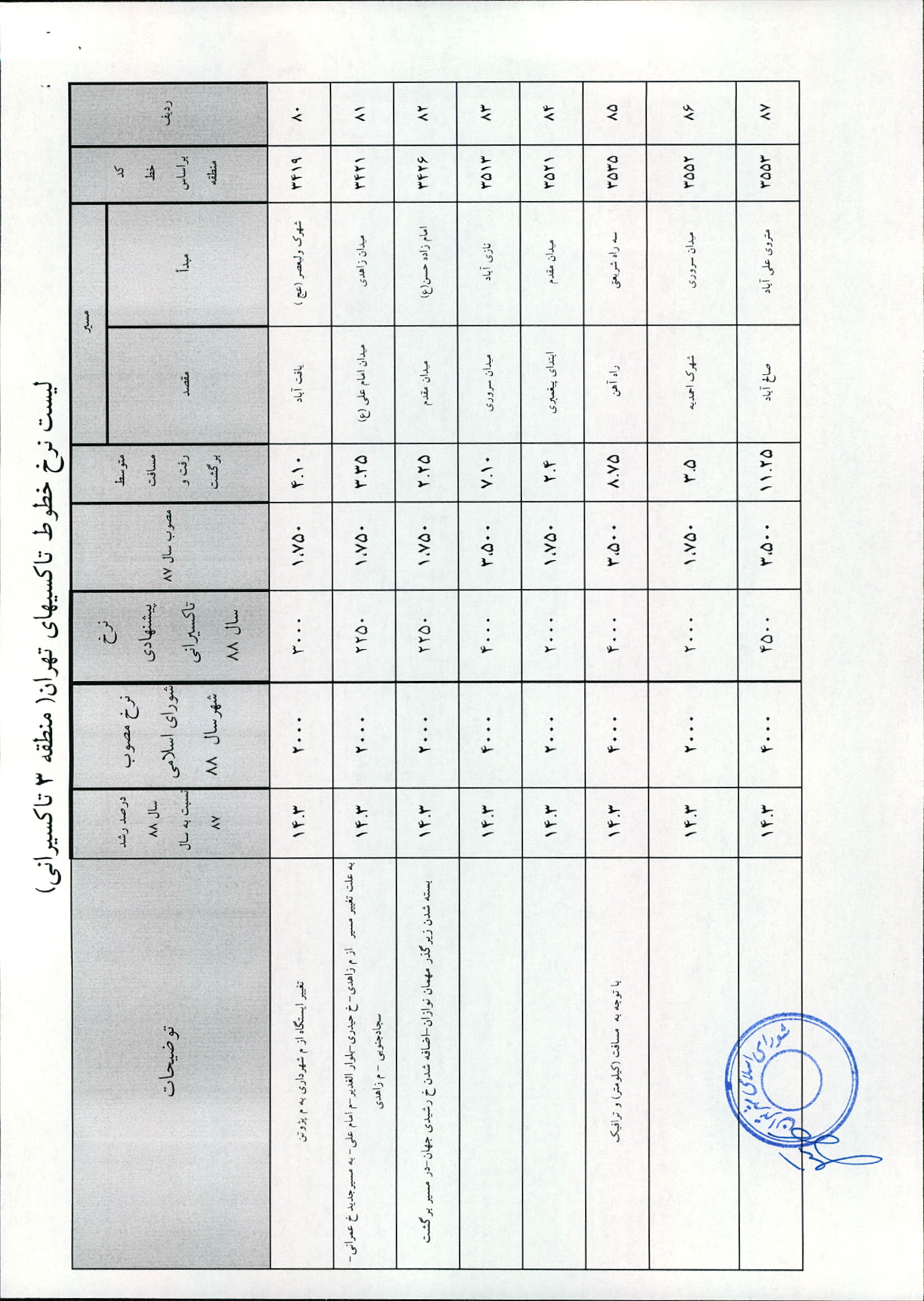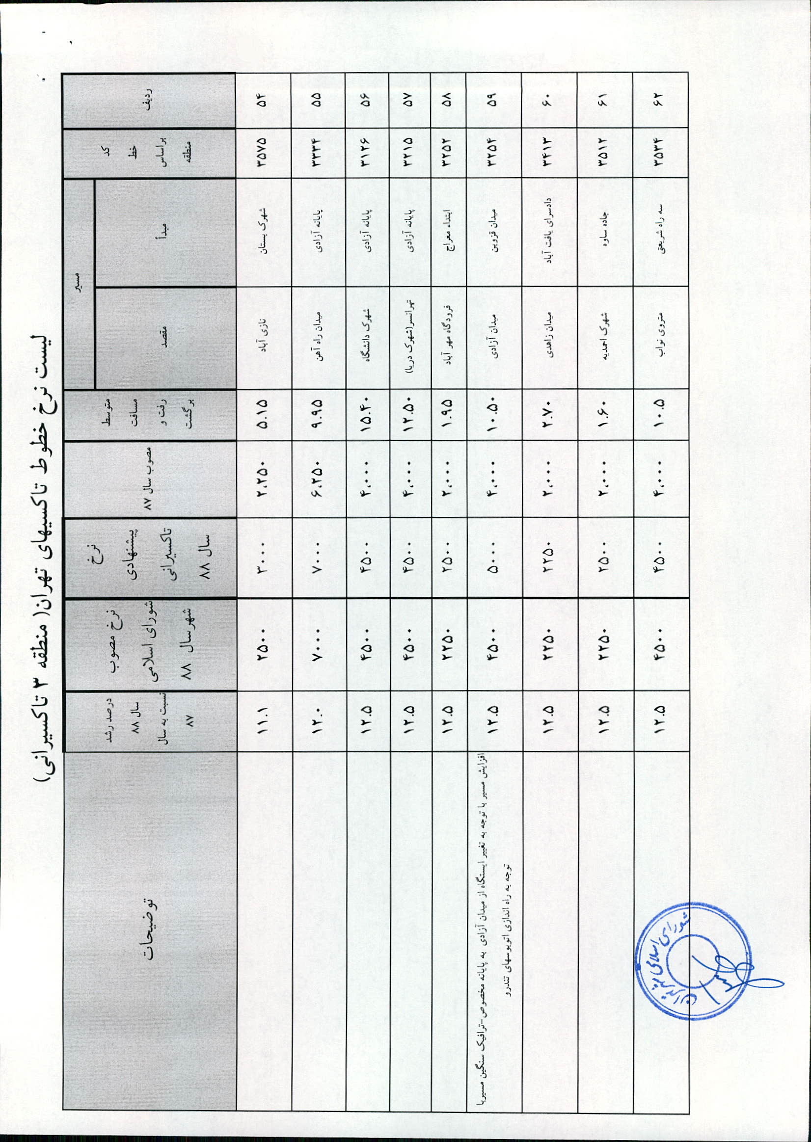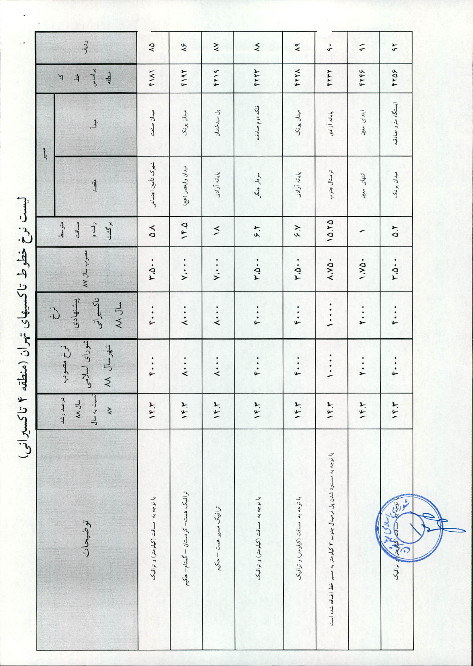 تعيين نرخ كرايه انواع تاكسي در شهر تهران
