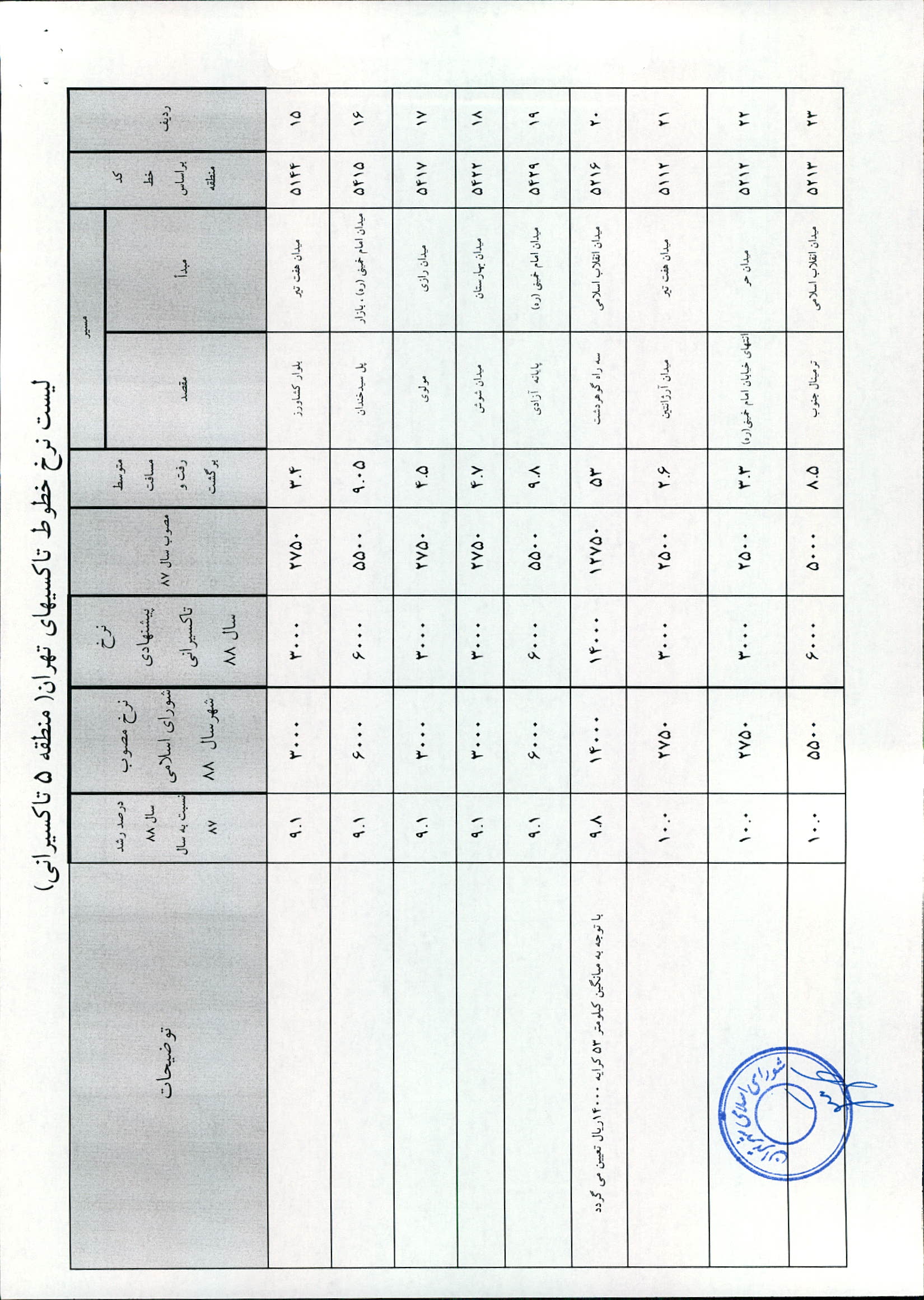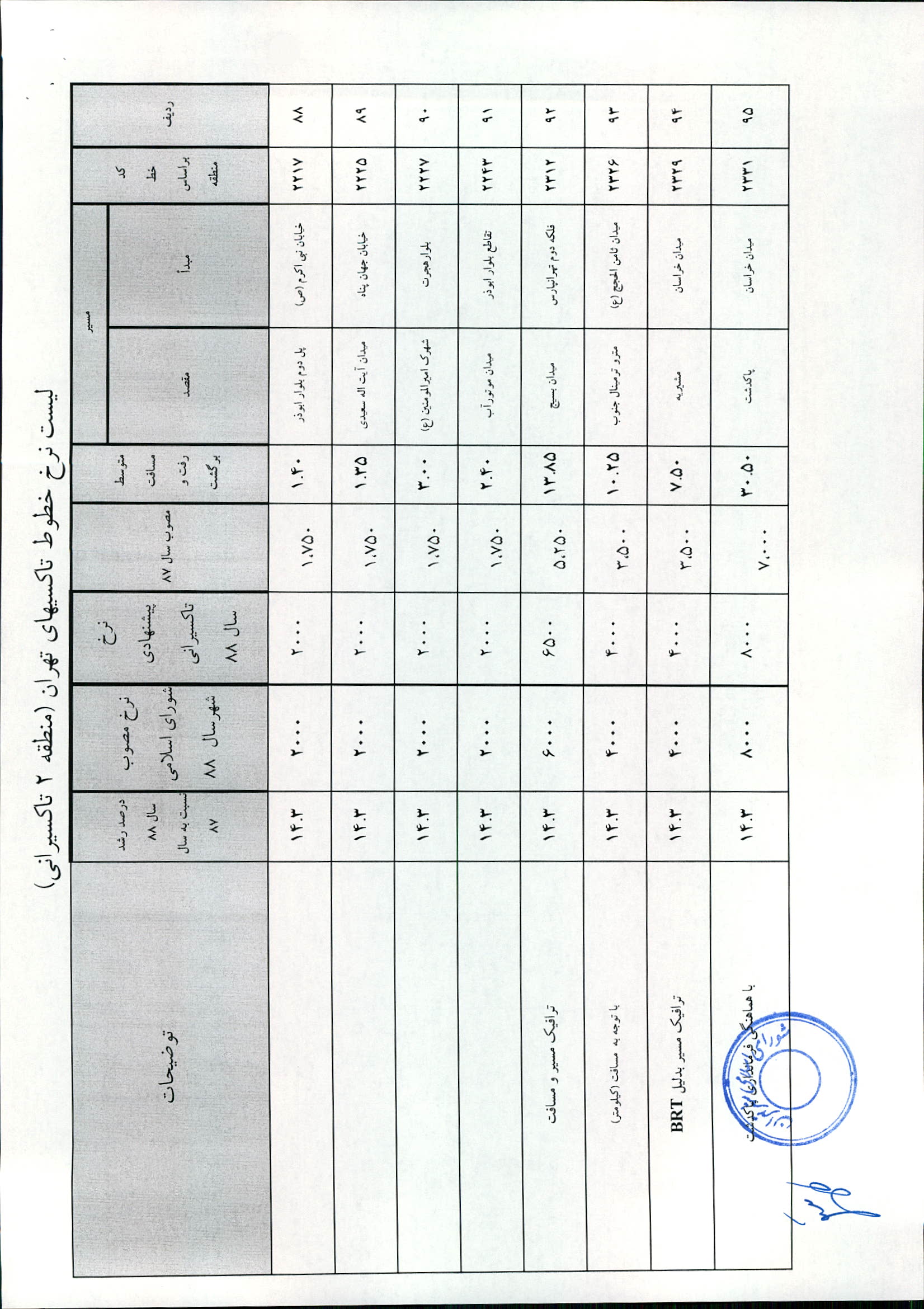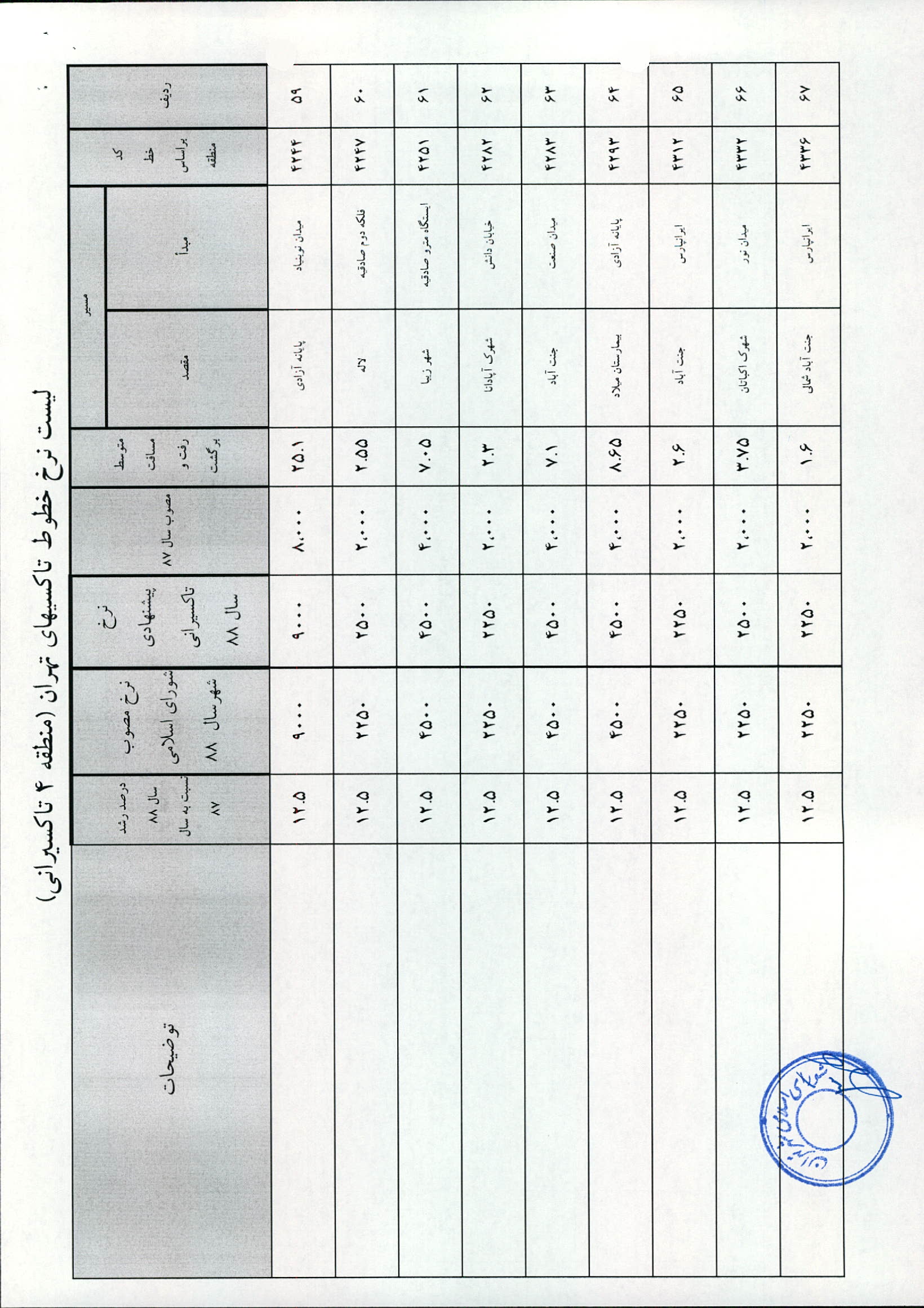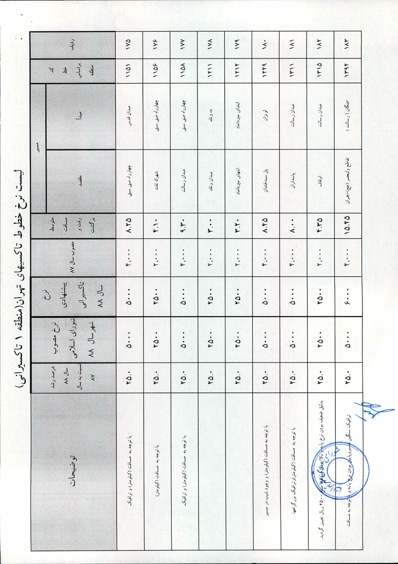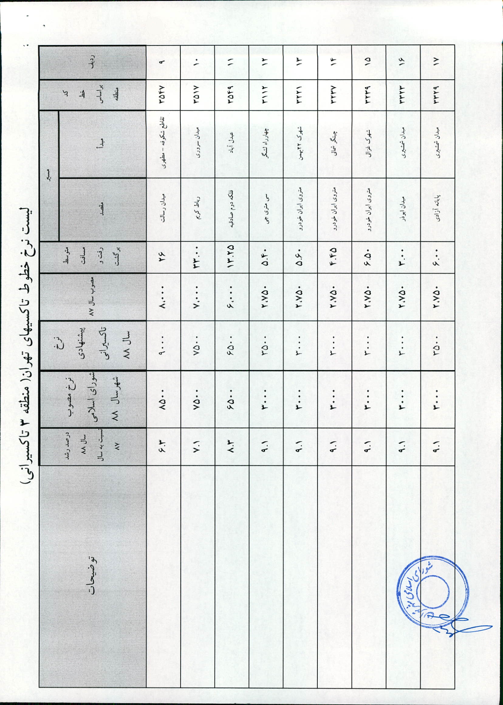 تعيين نرخ كرايه انواع تاكسي در شهر تهران