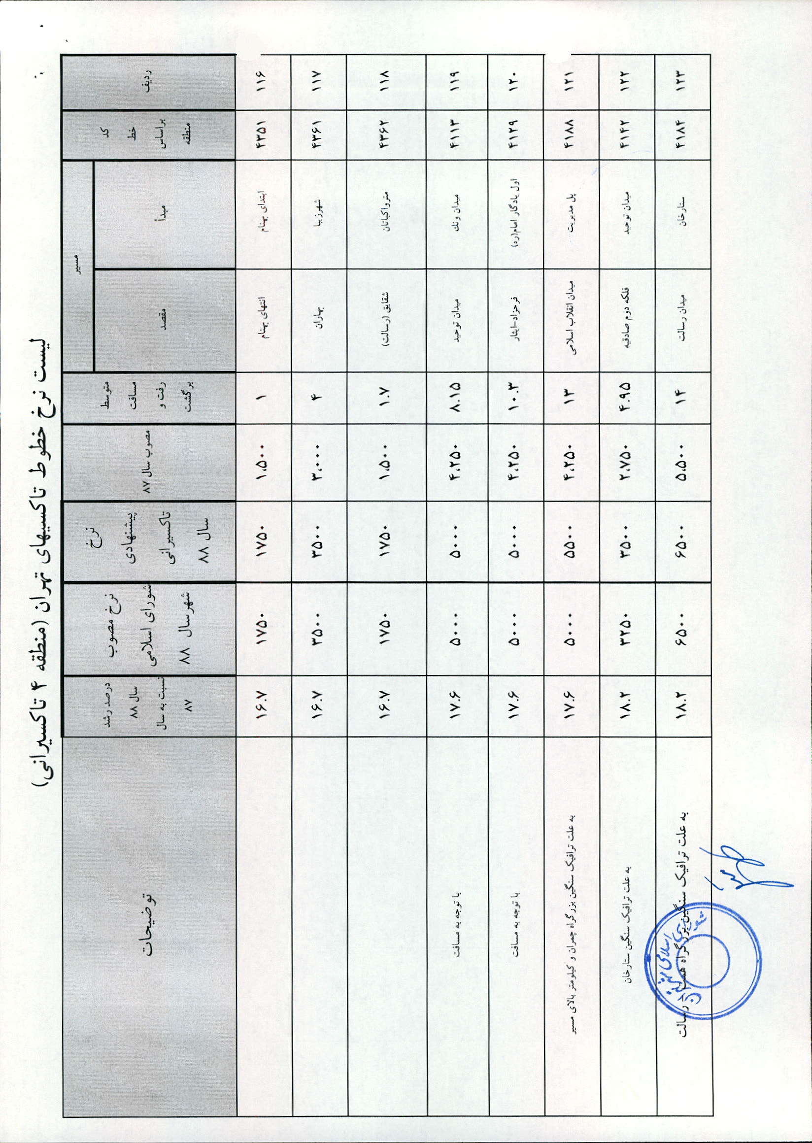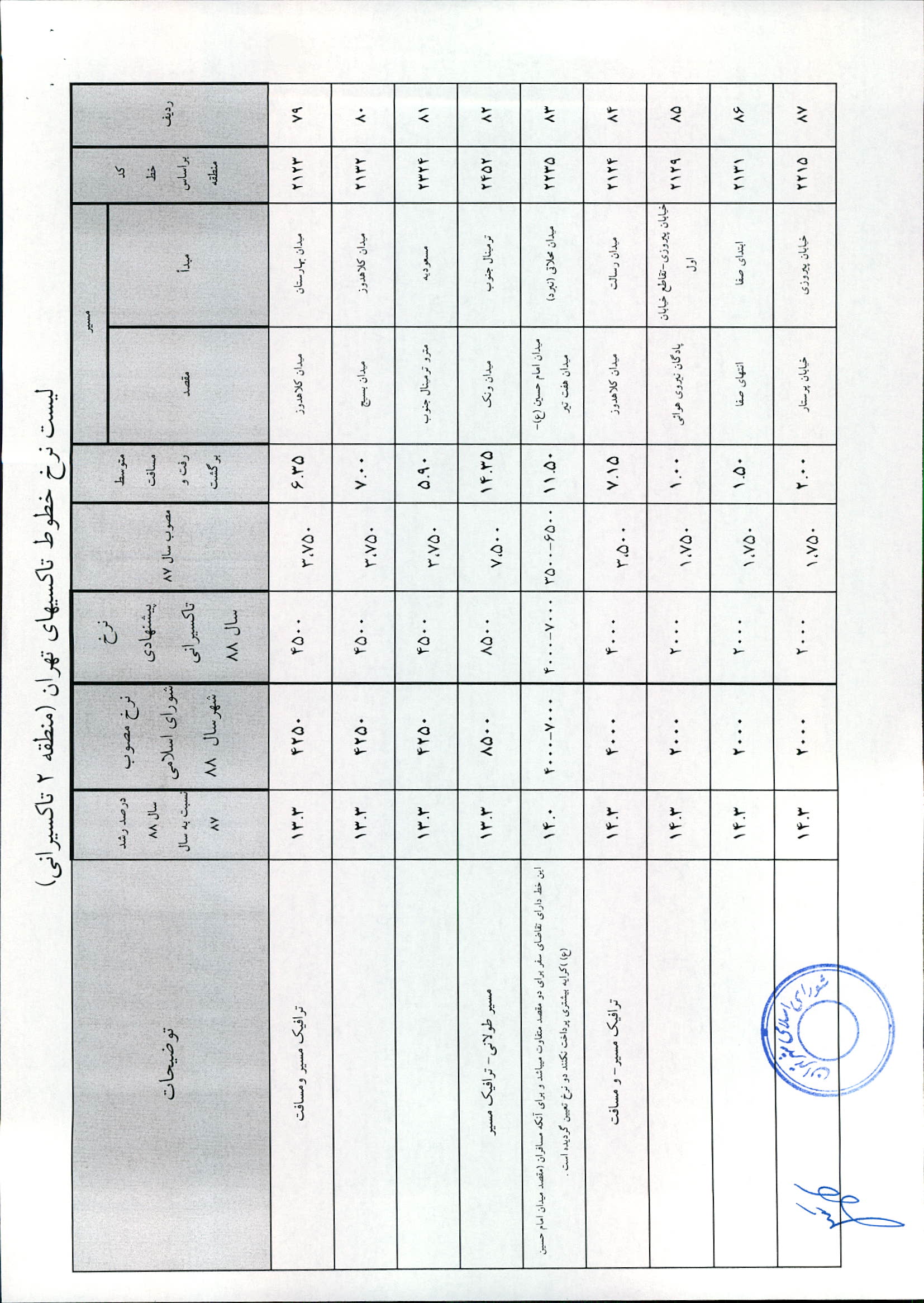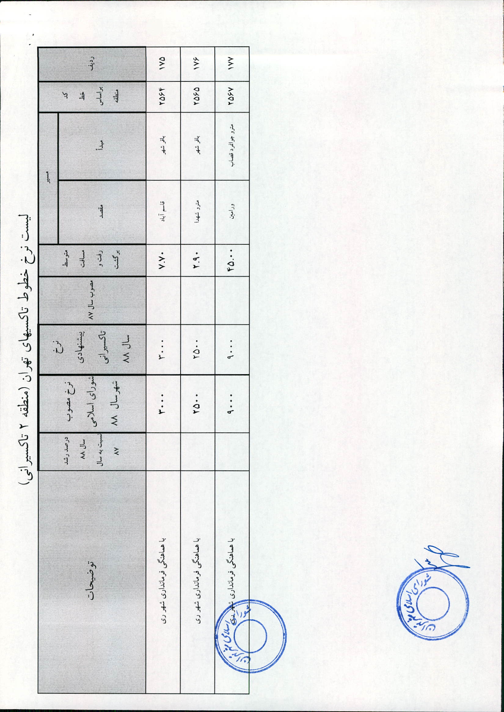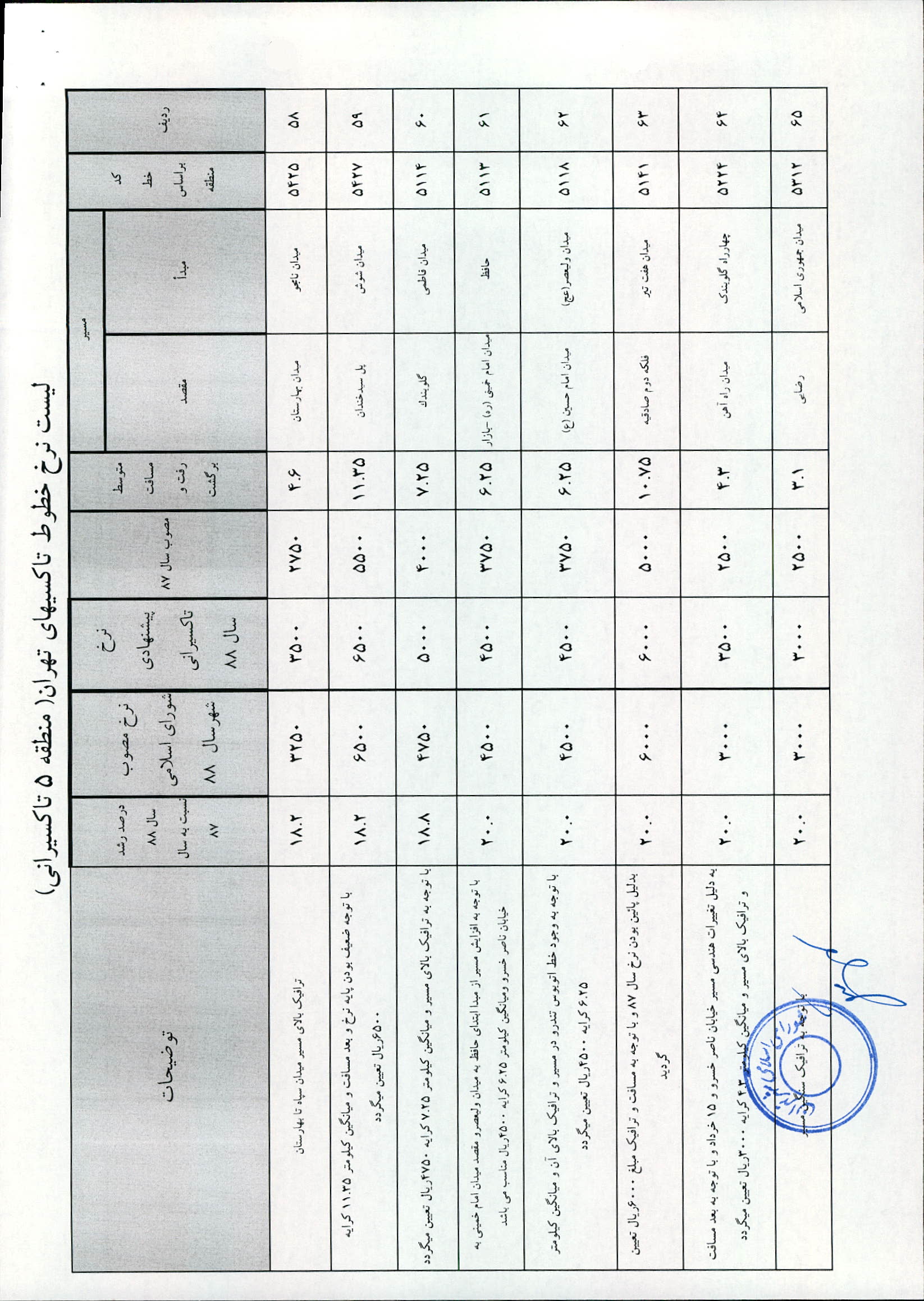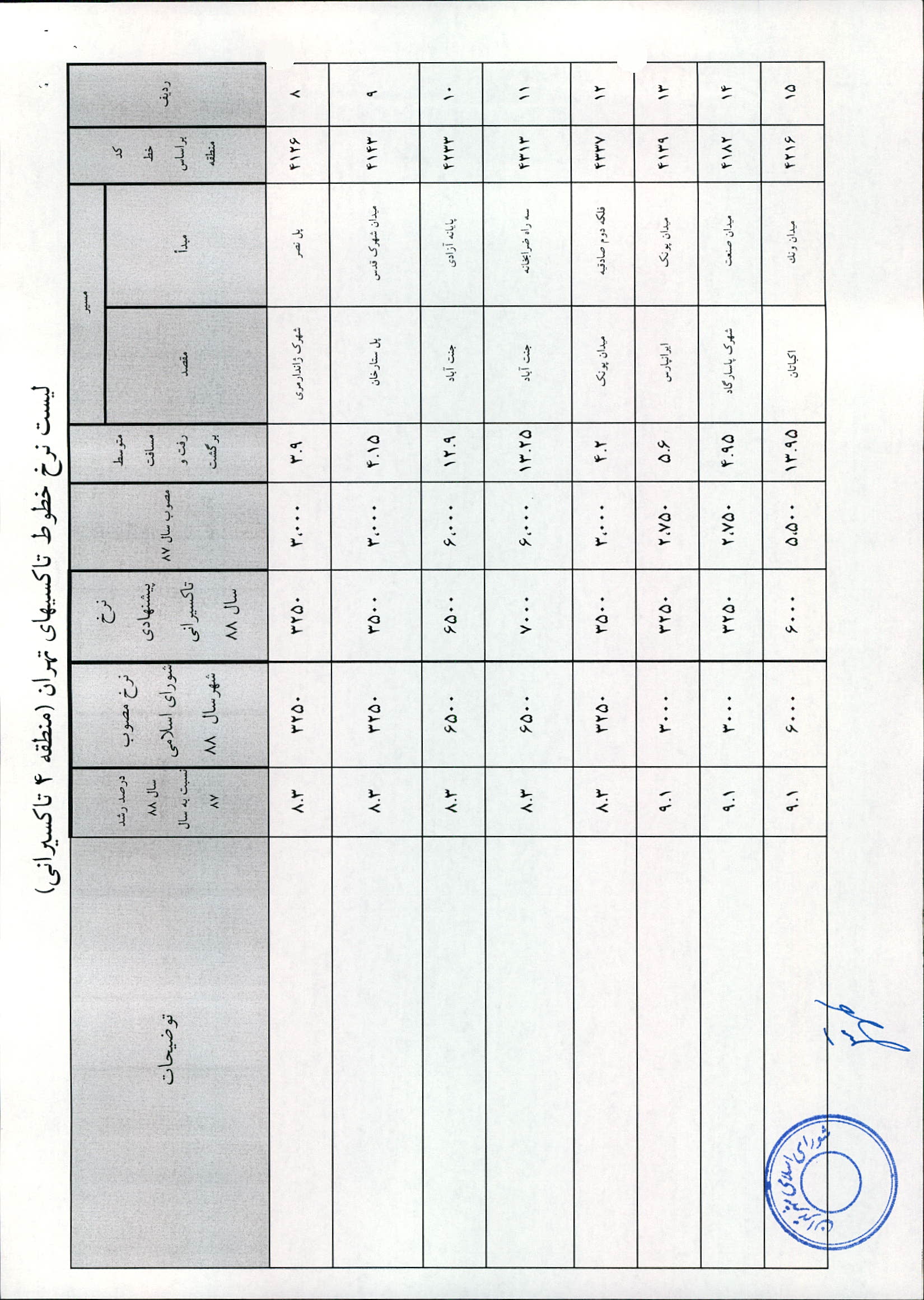 تعيين نرخ كرايه انواع تاكسي در شهر تهران