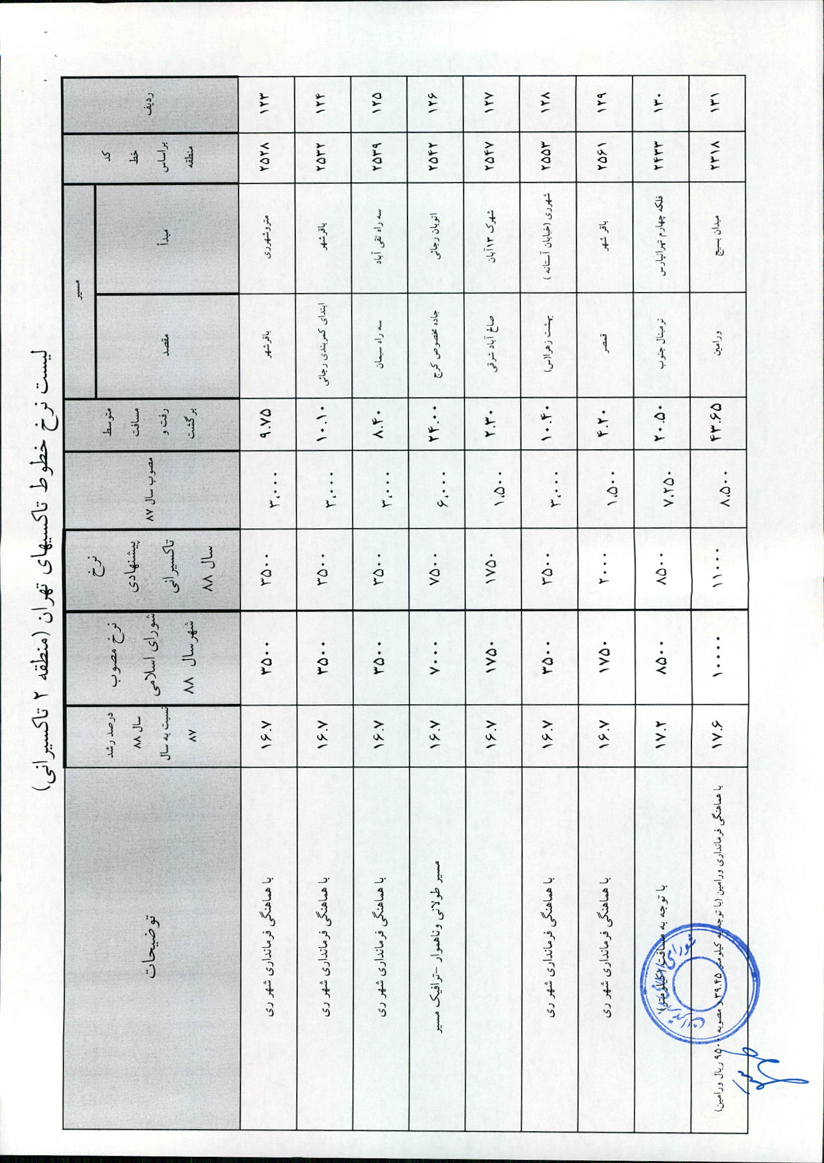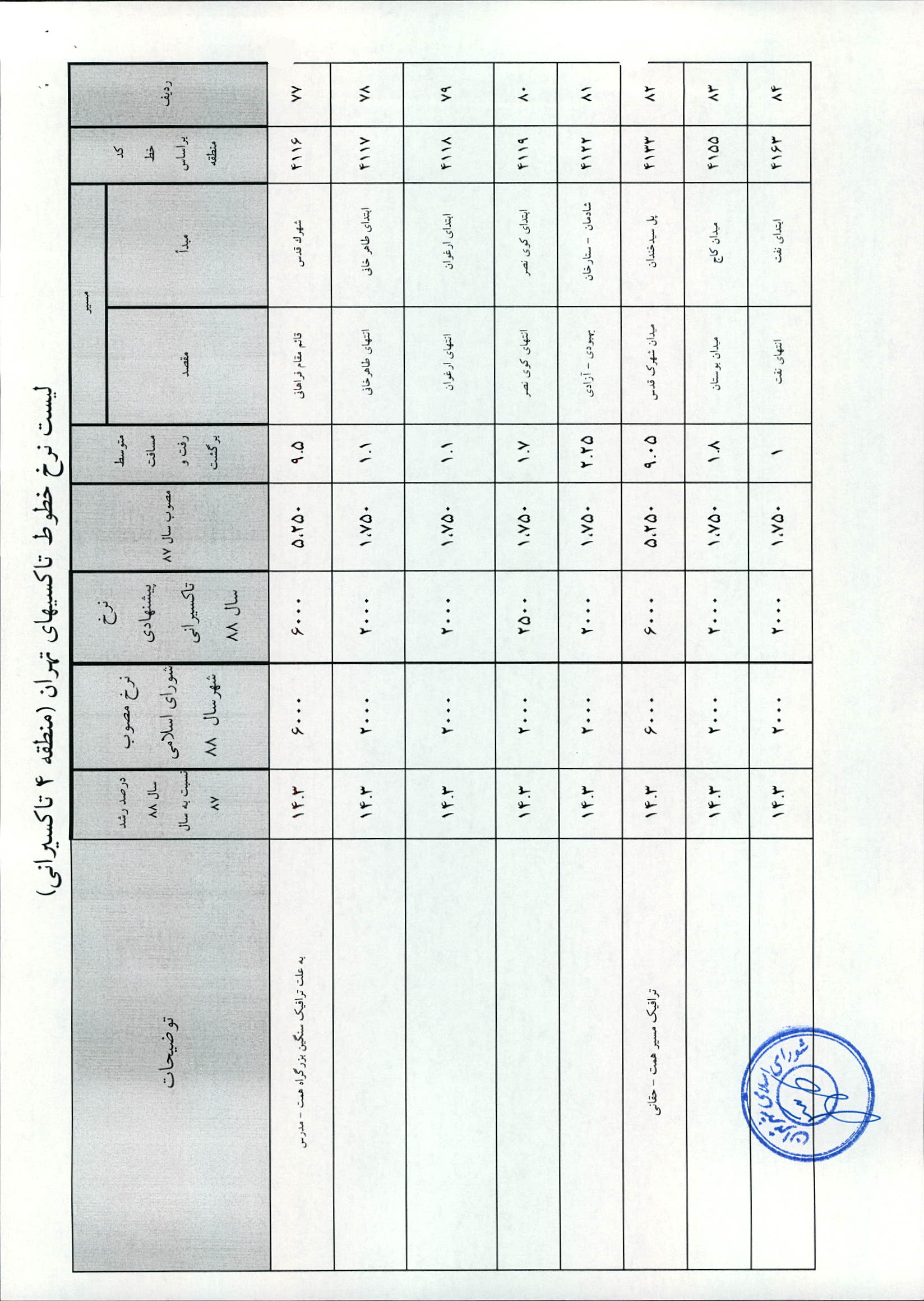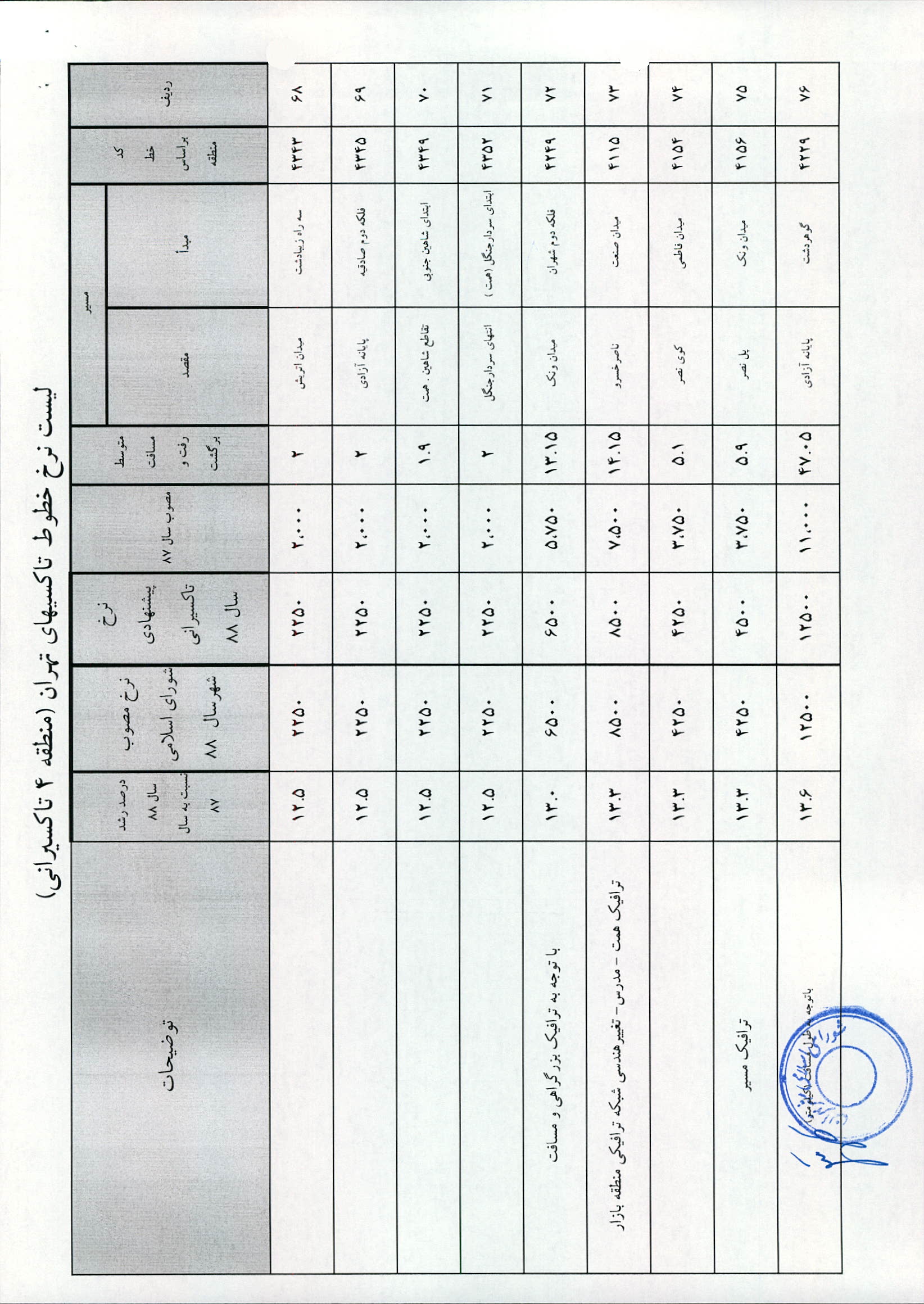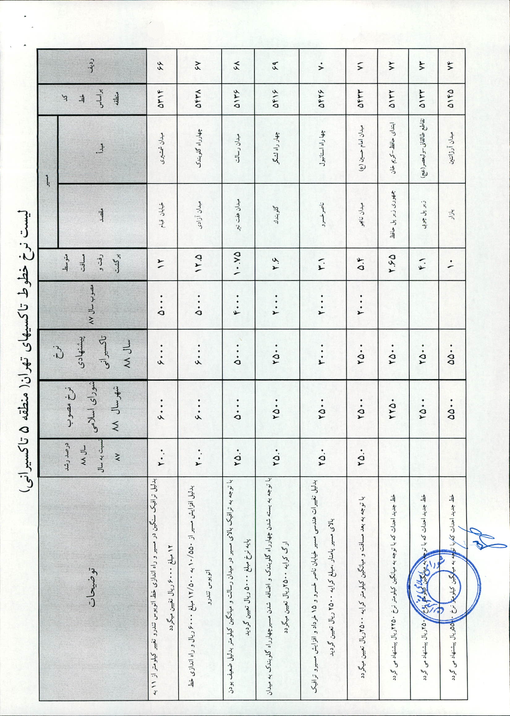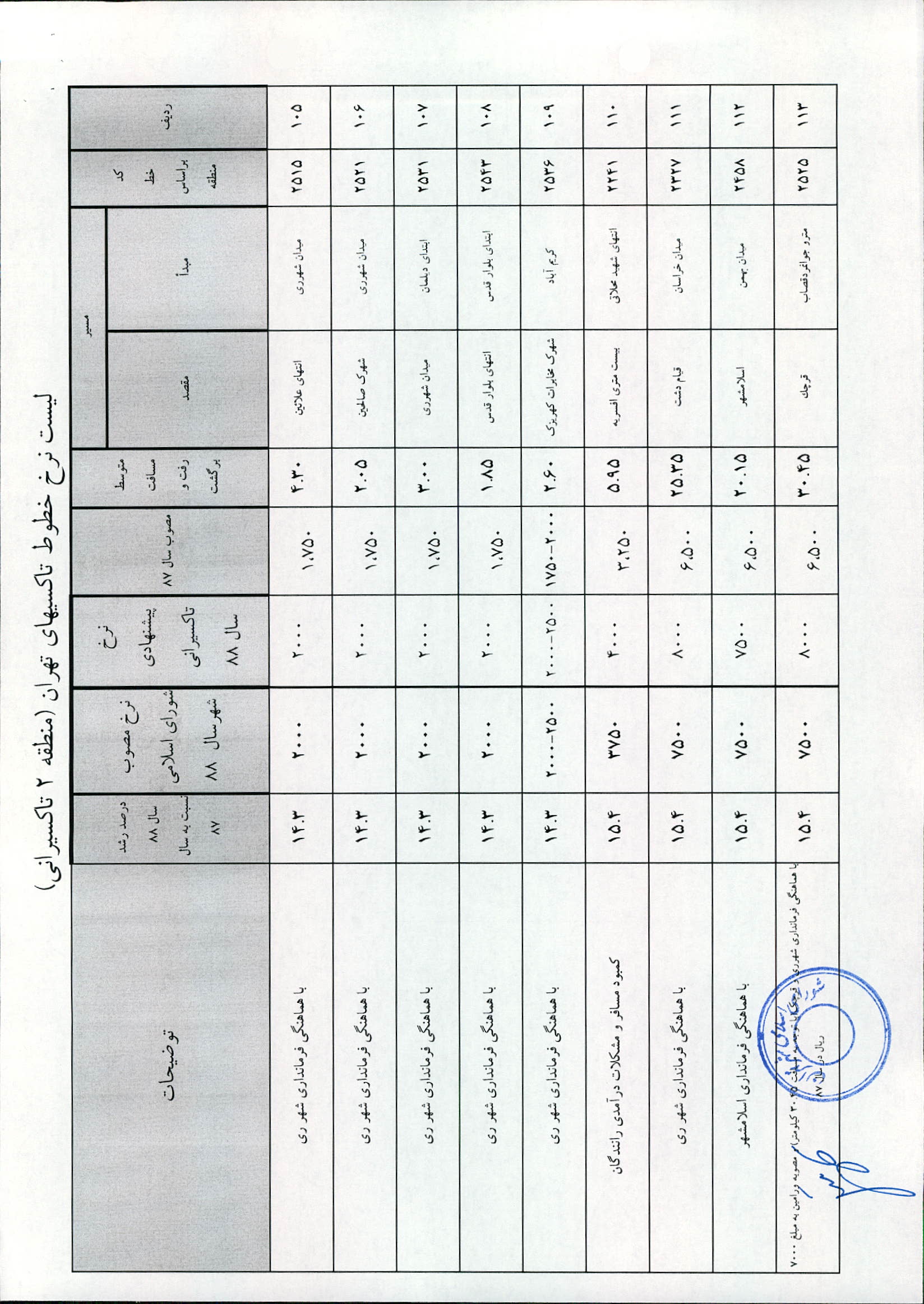 تعيين نرخ كرايه انواع تاكسي در شهر تهران