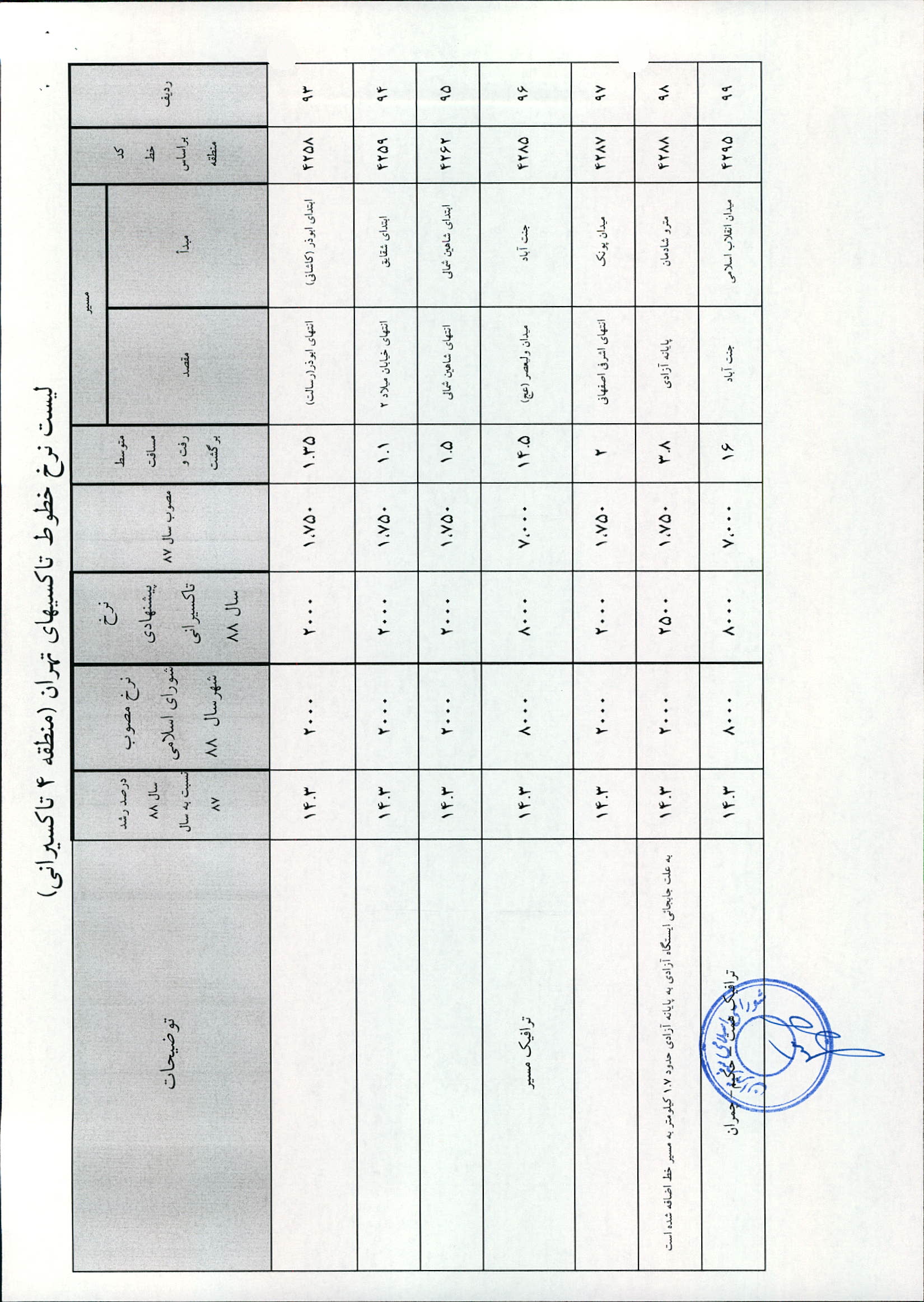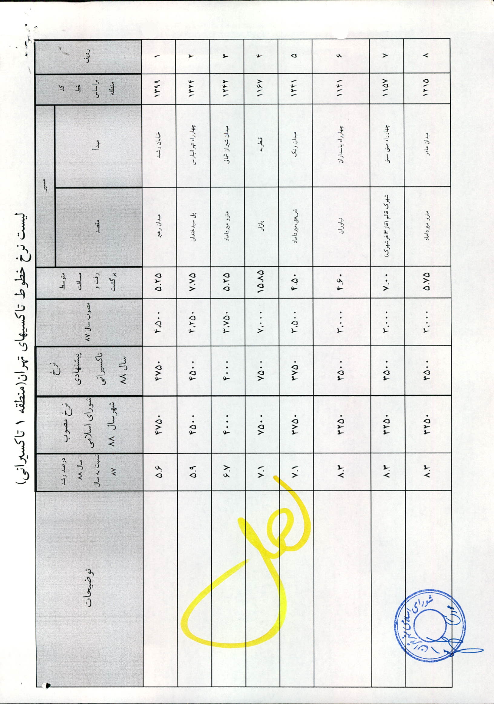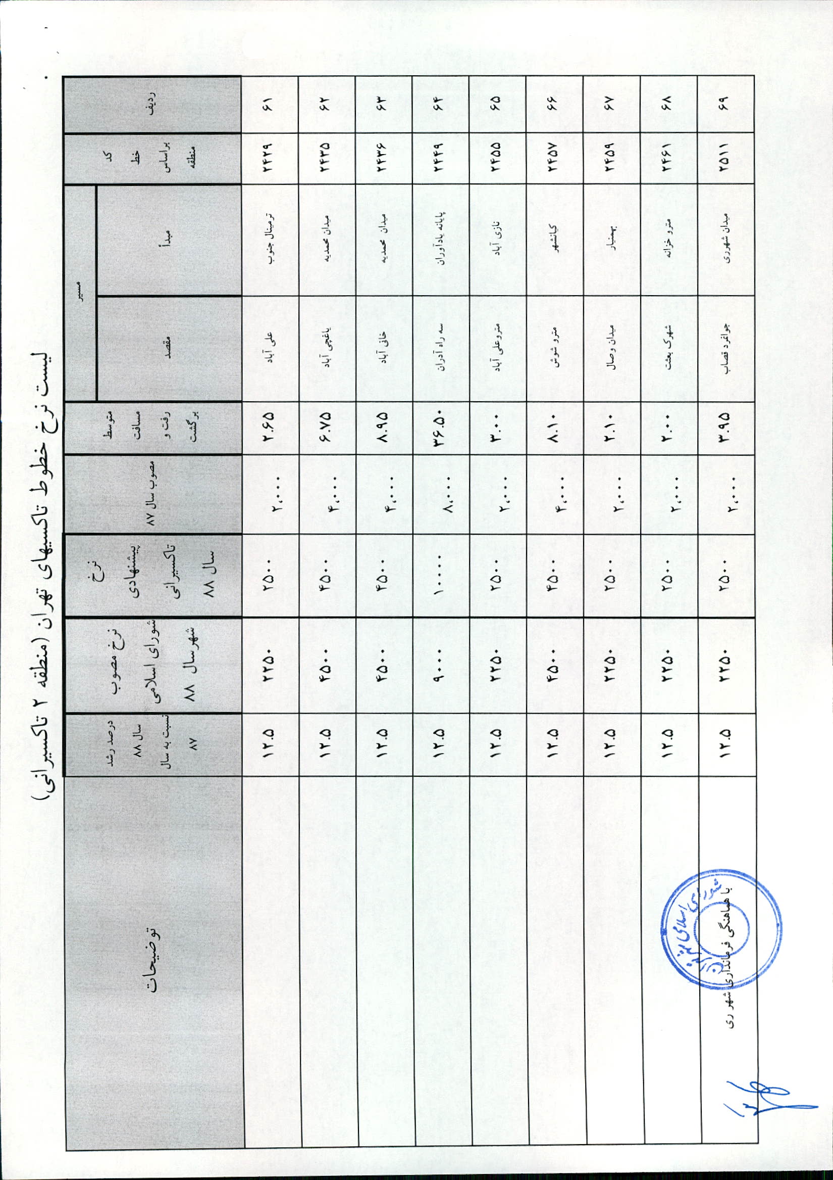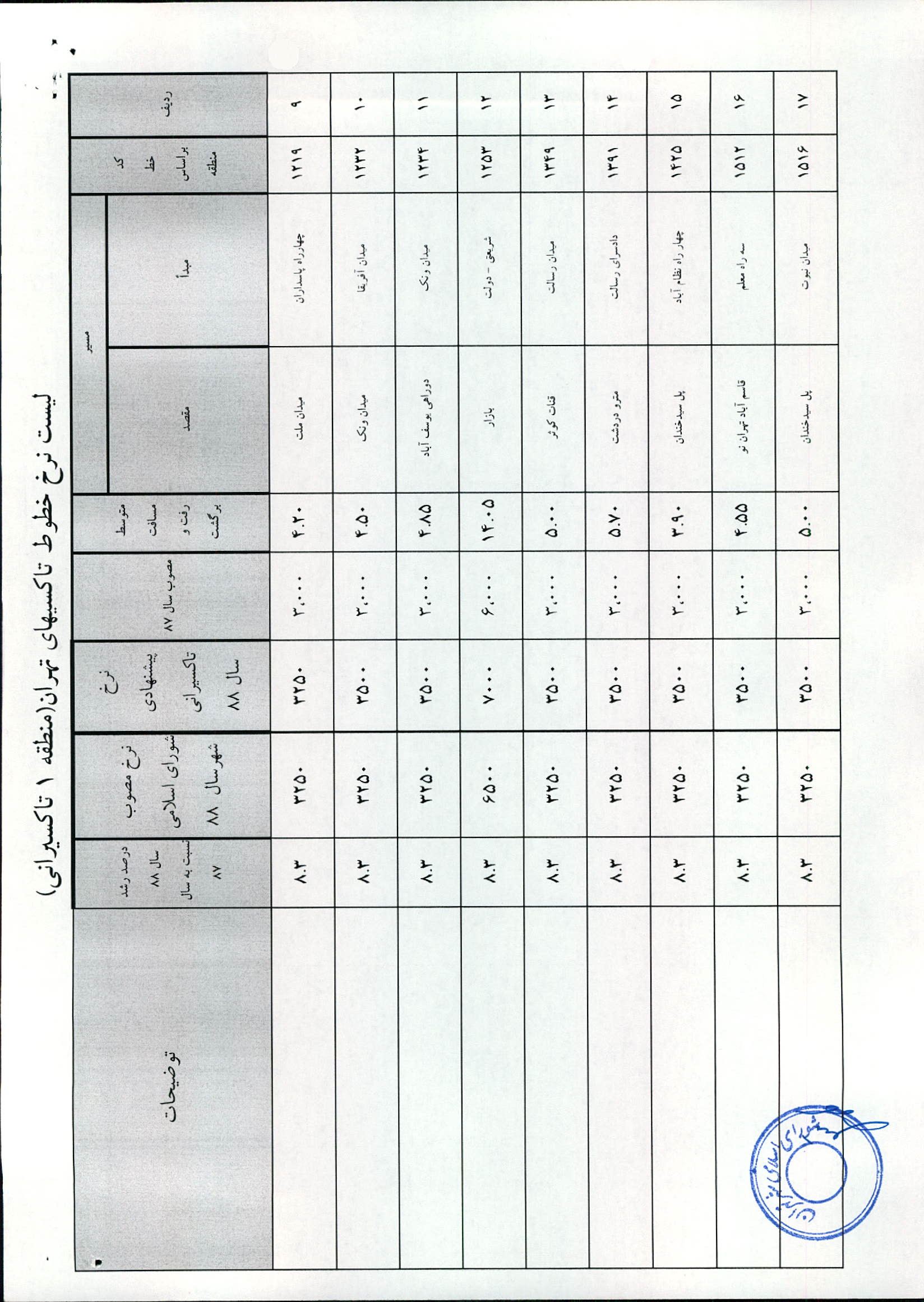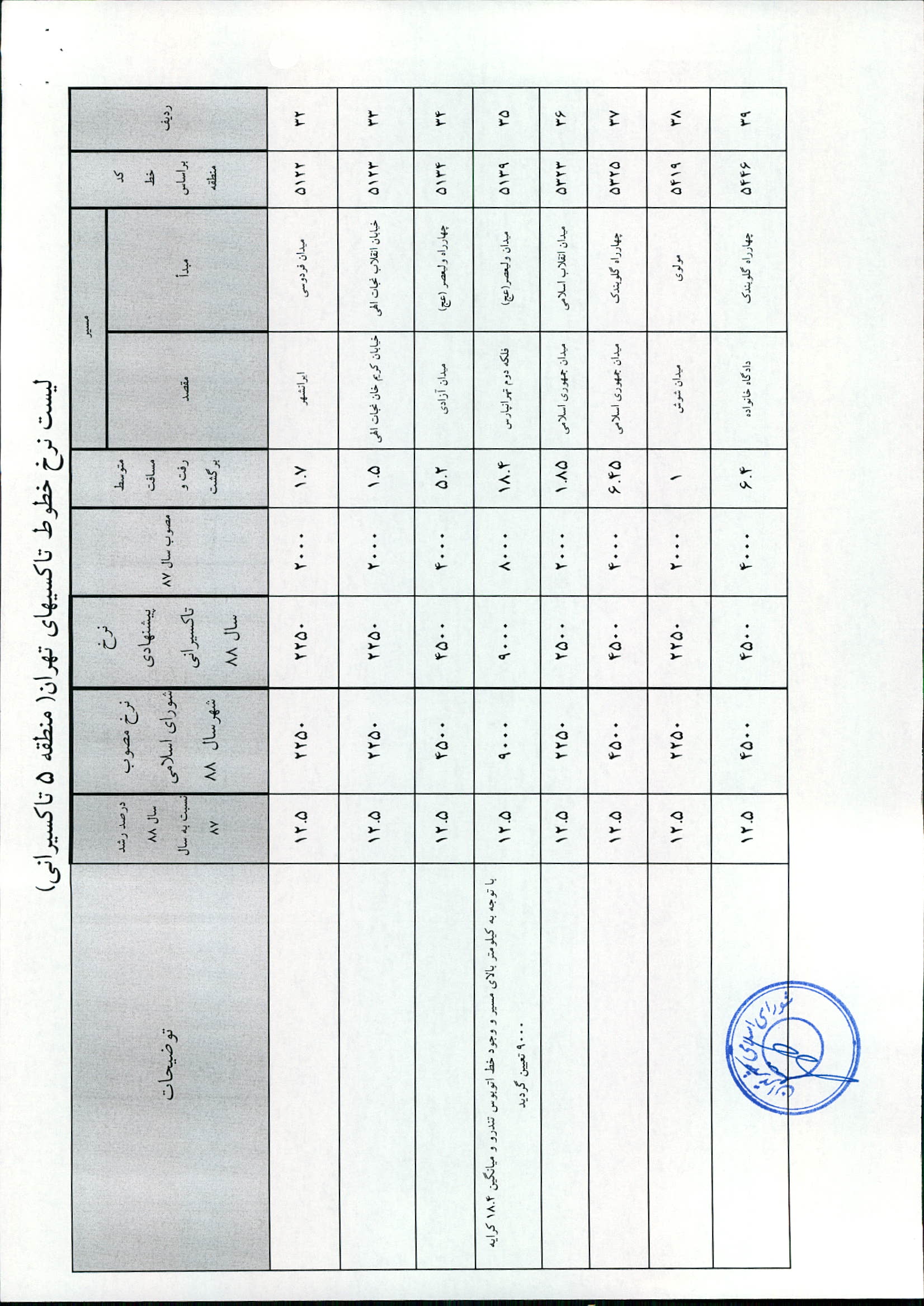 تعيين نرخ كرايه انواع تاكسي در شهر تهران