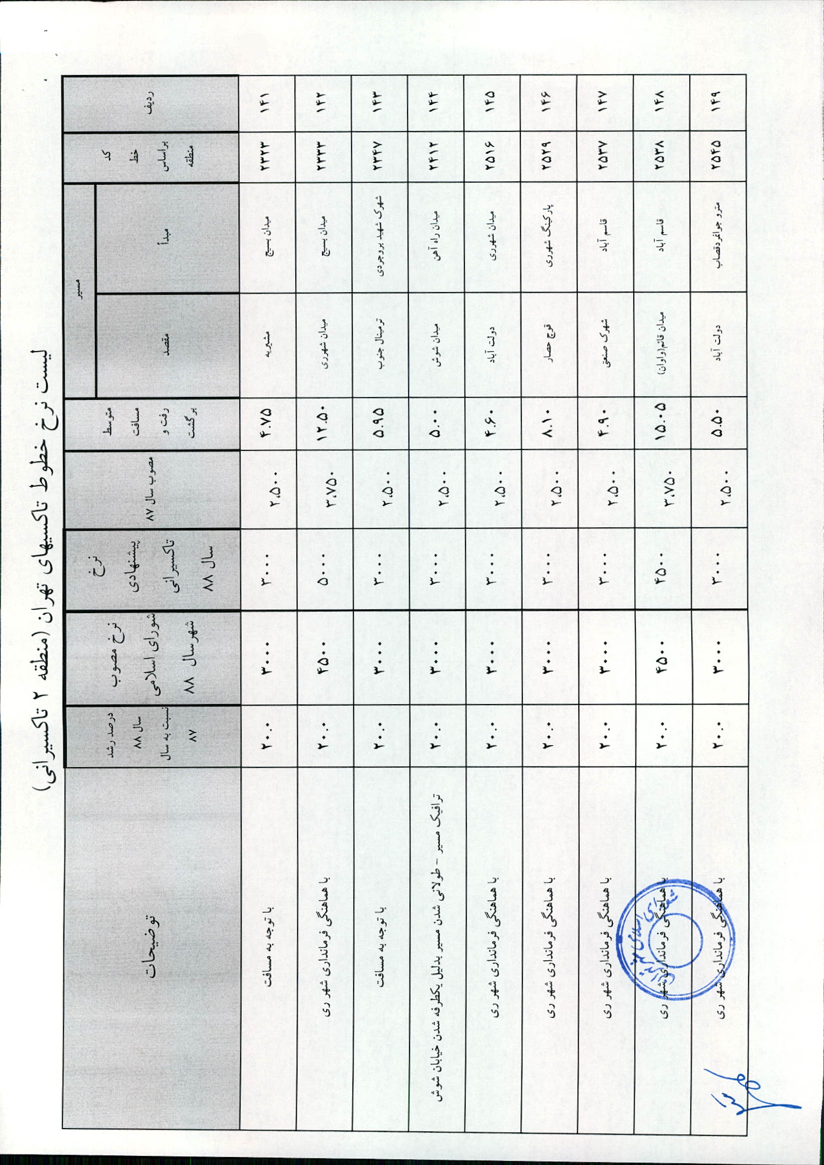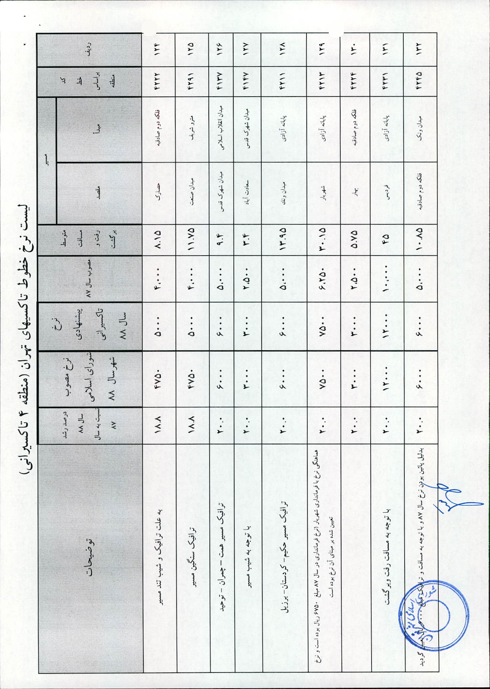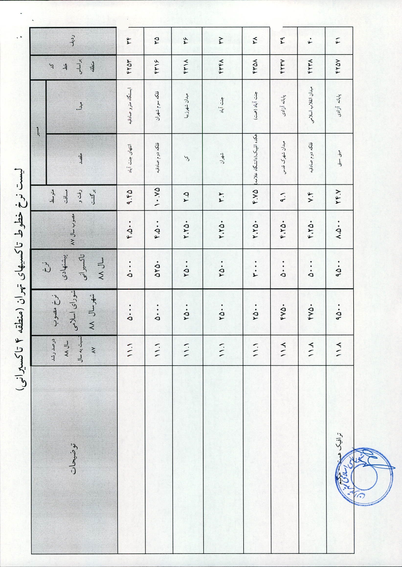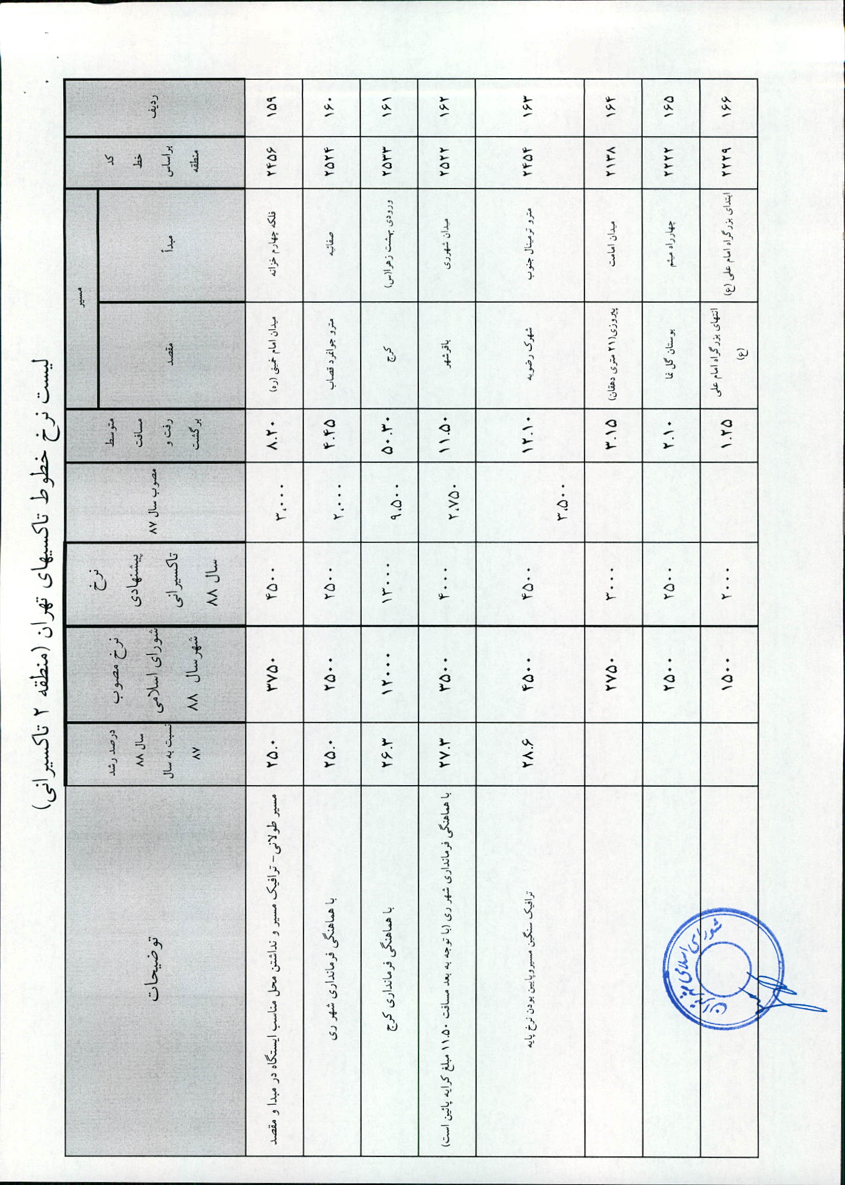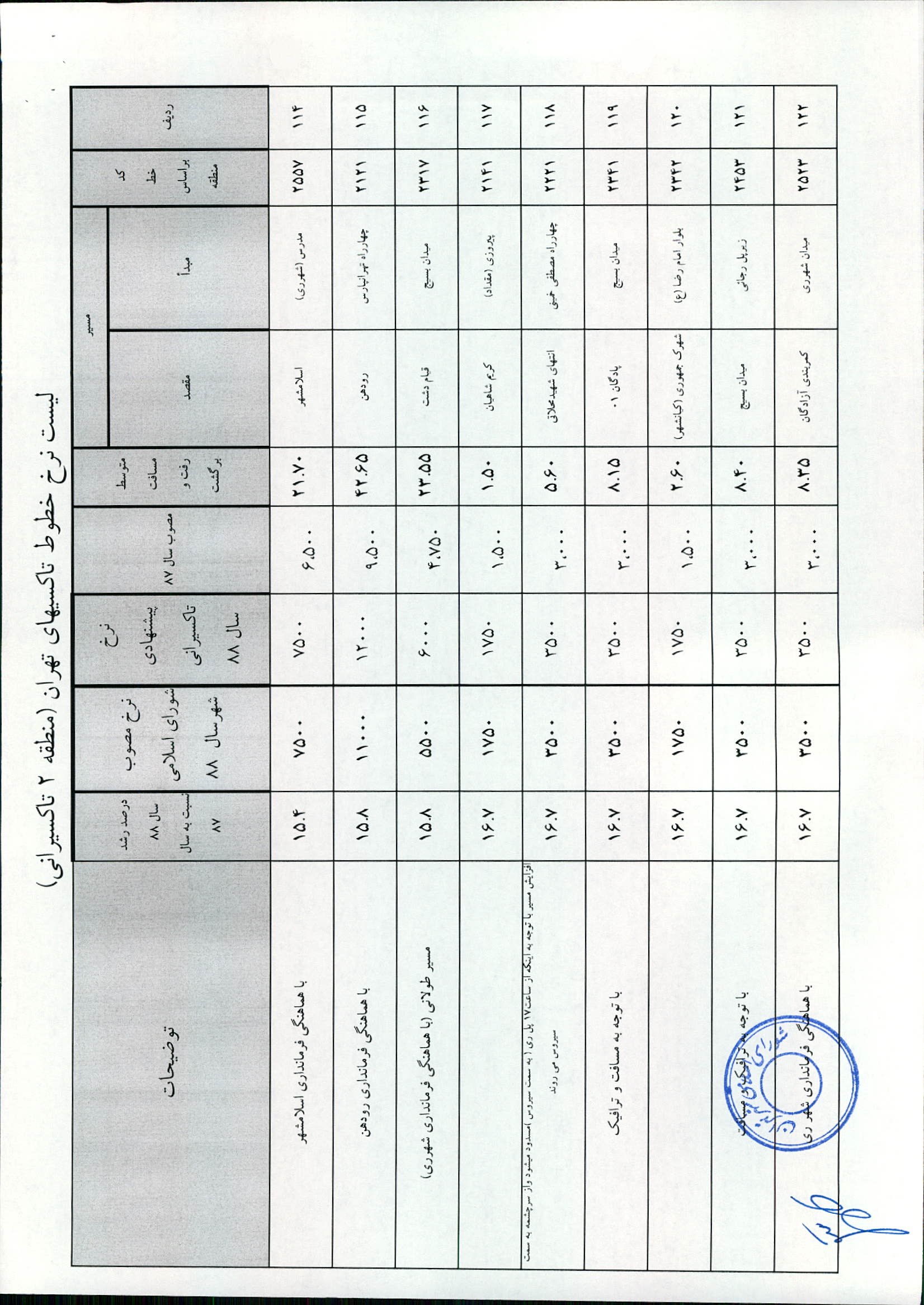 تعيين نرخ كرايه انواع تاكسي در شهر تهران