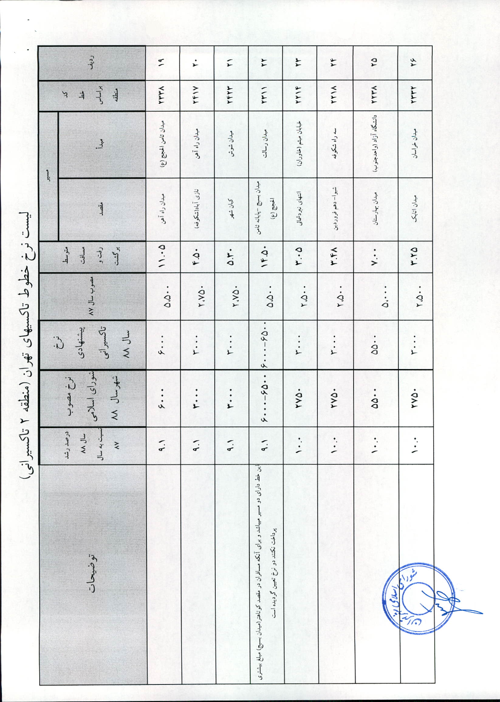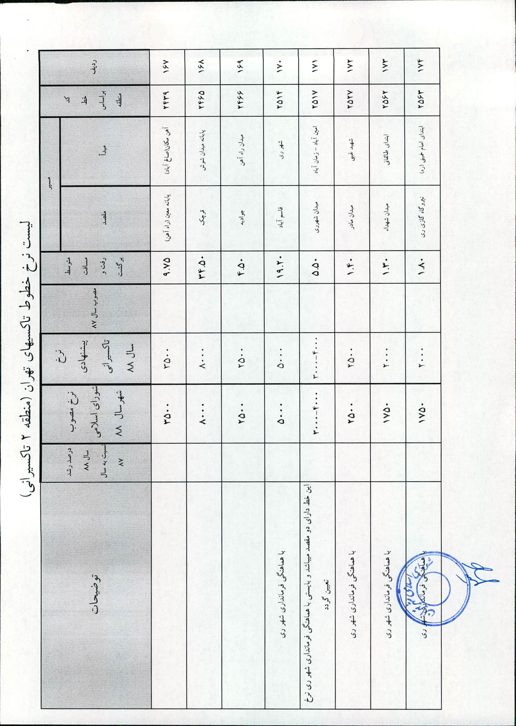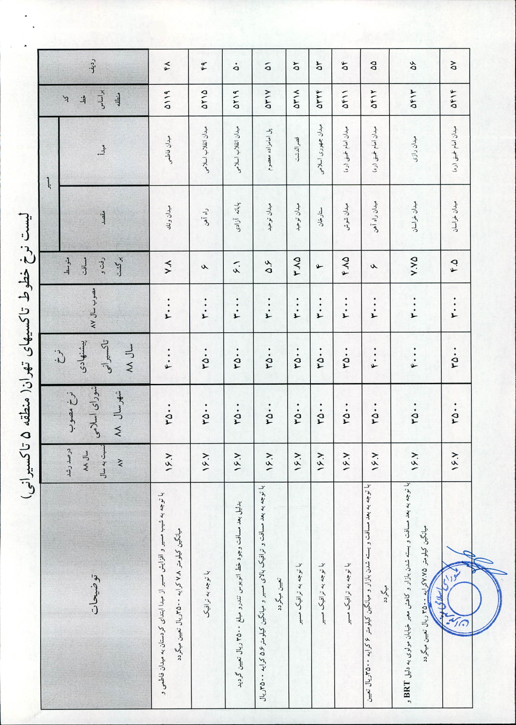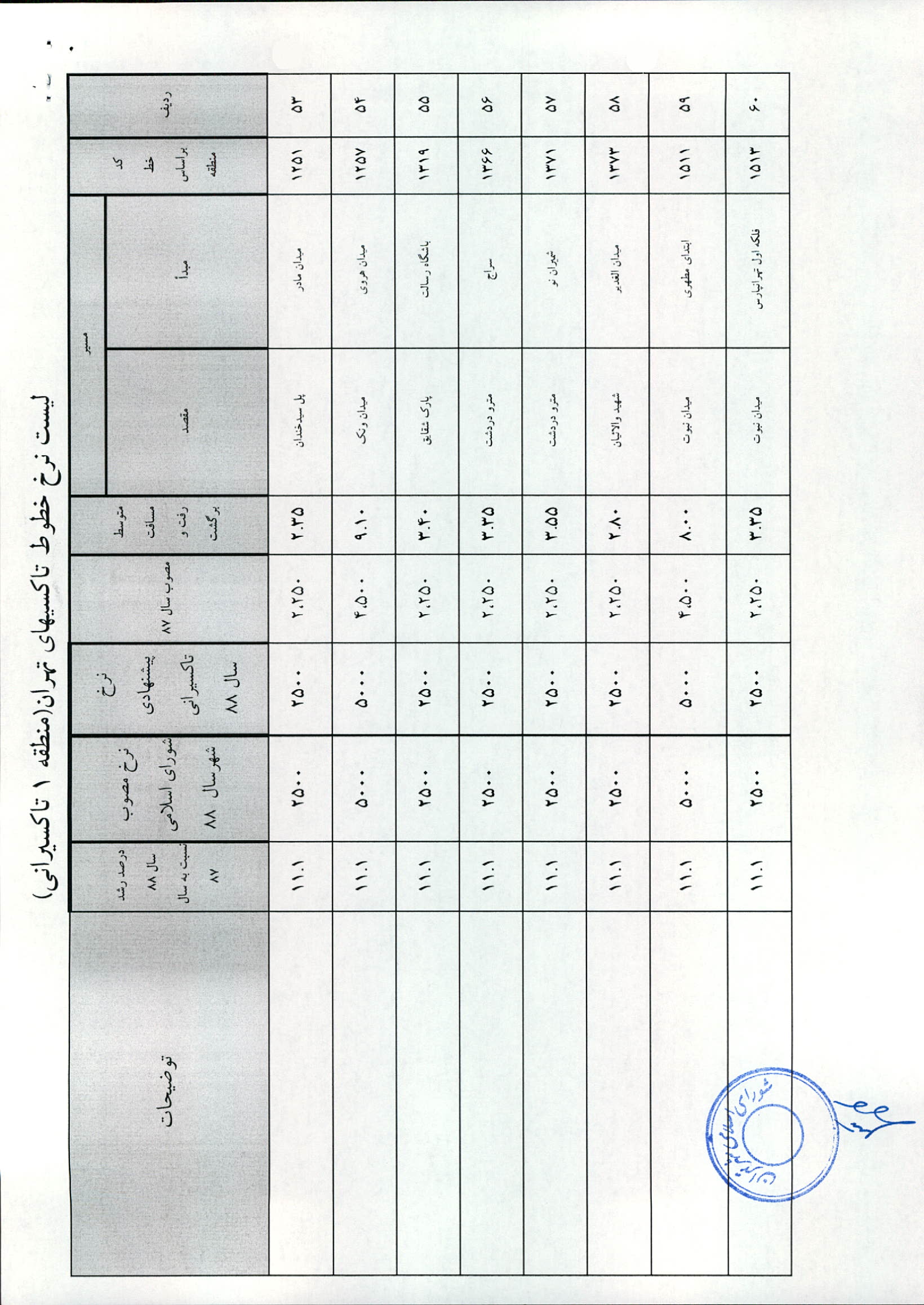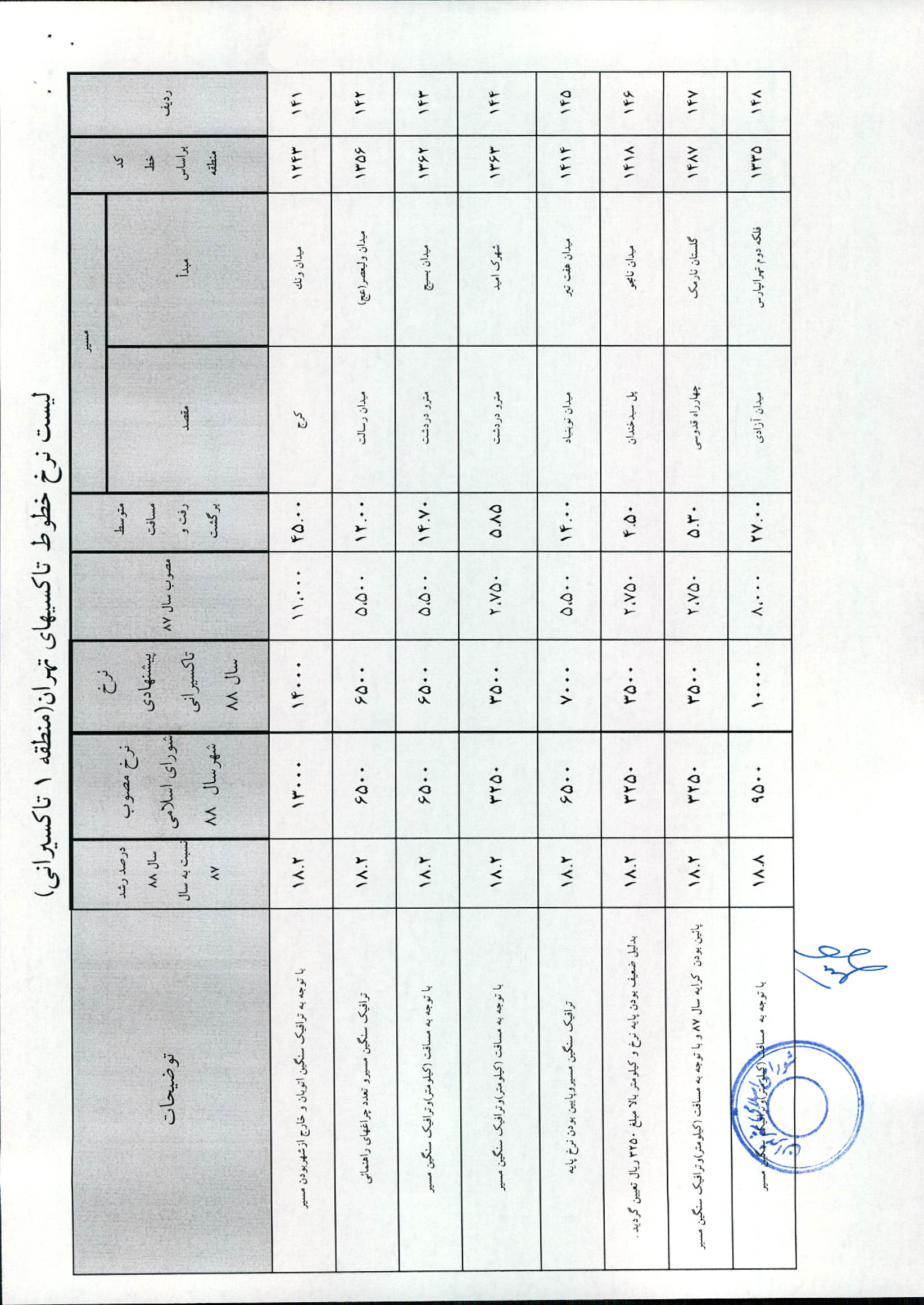 تعيين نرخ كرايه انواع تاكسي در شهر تهران