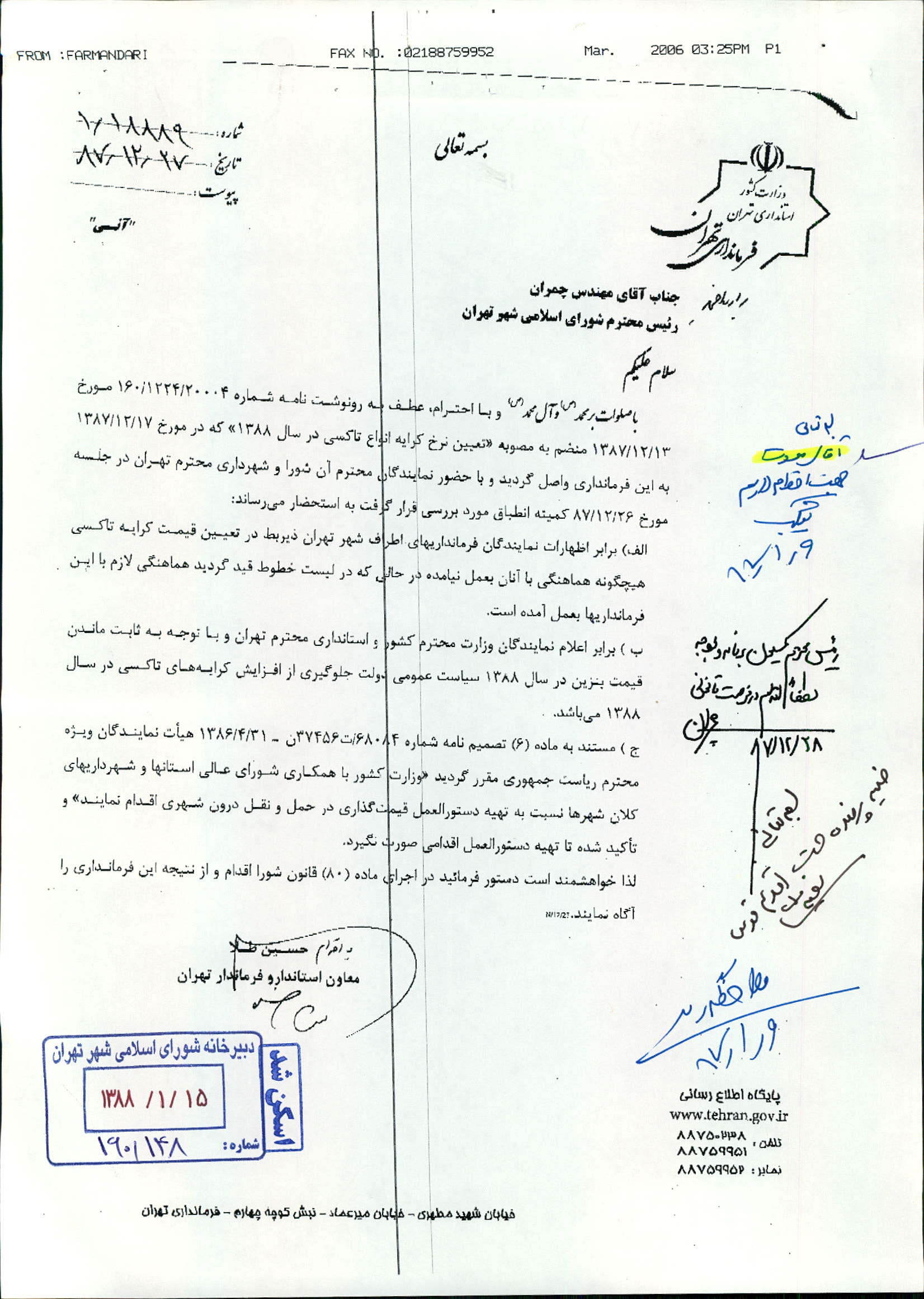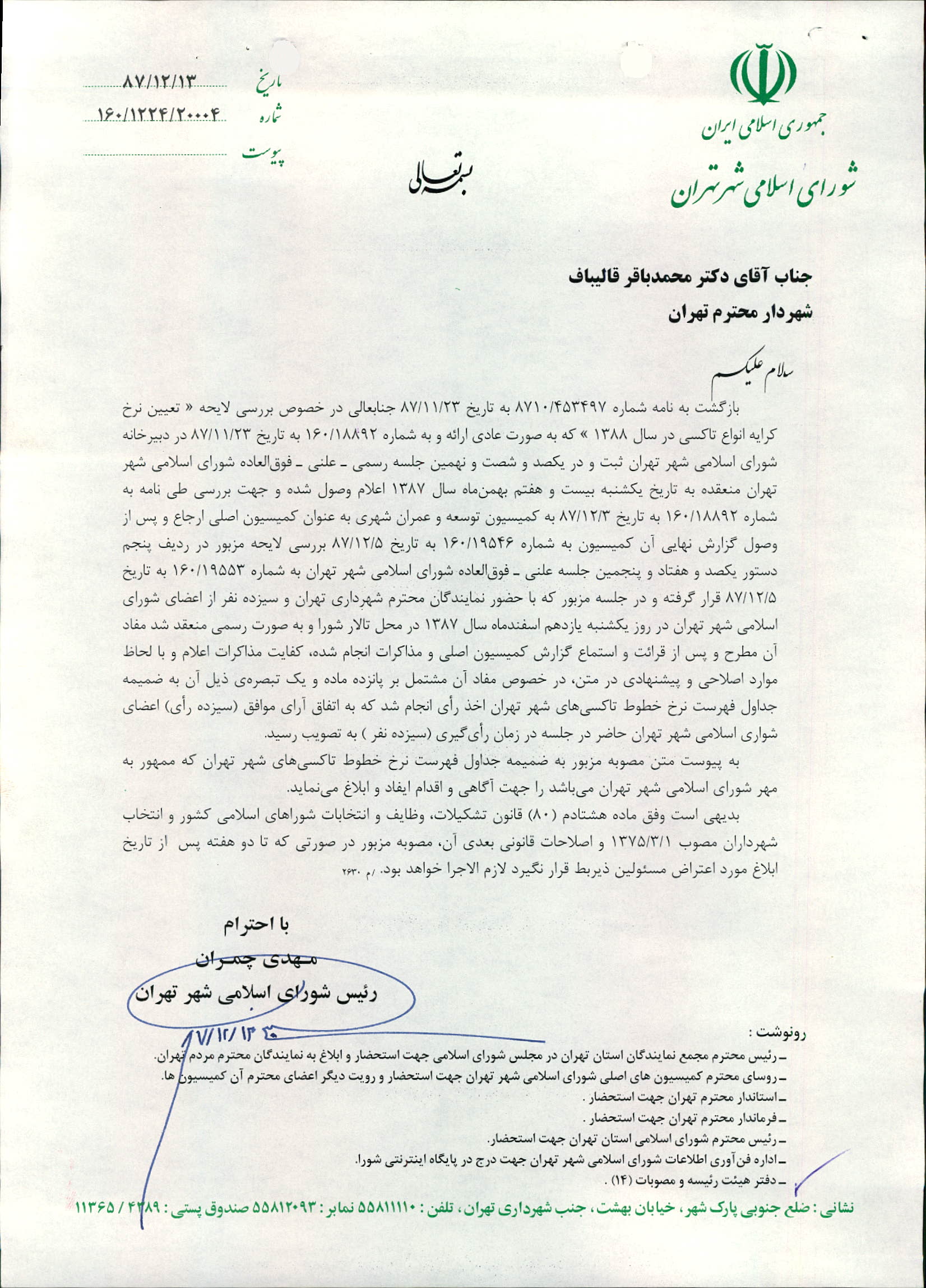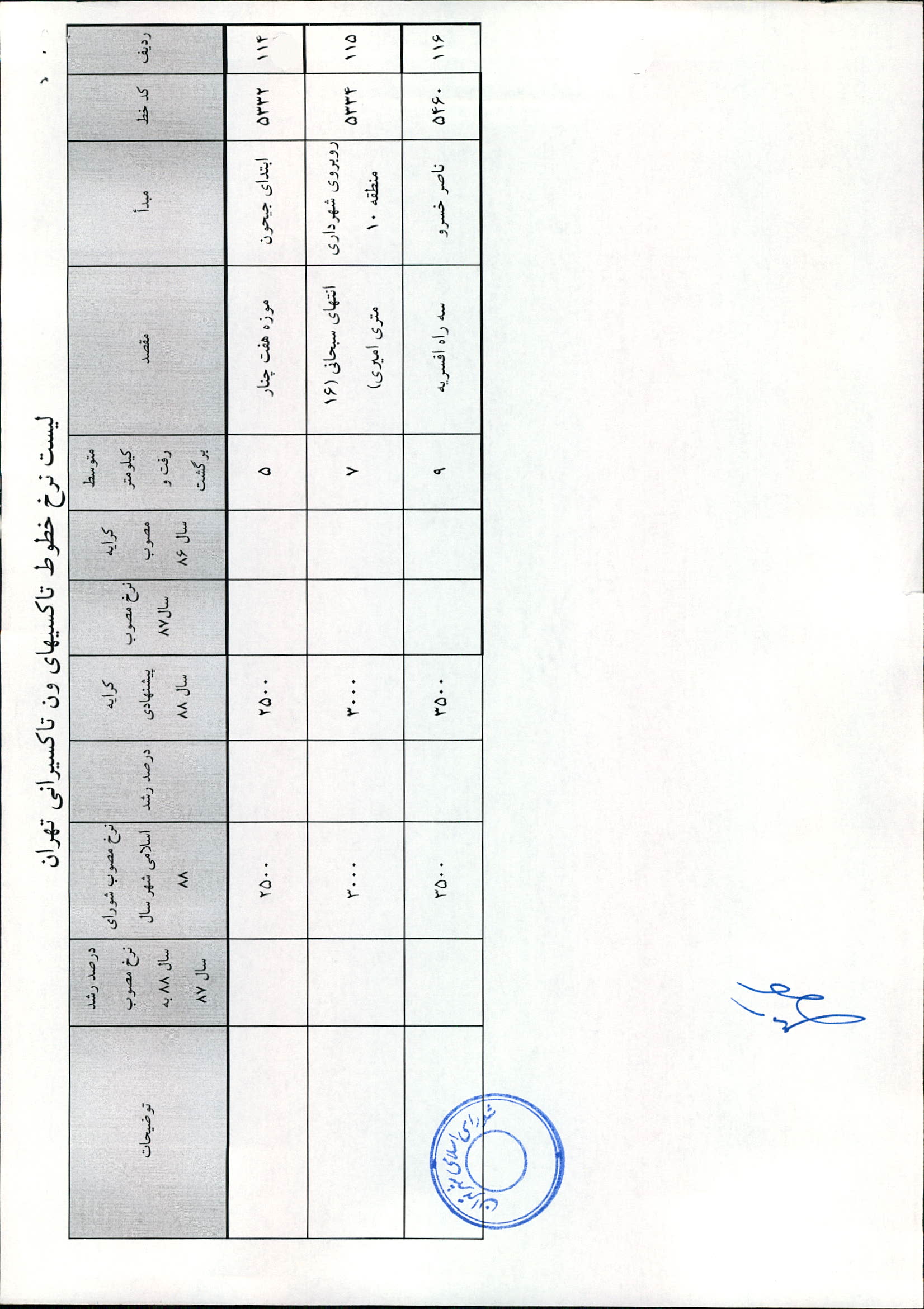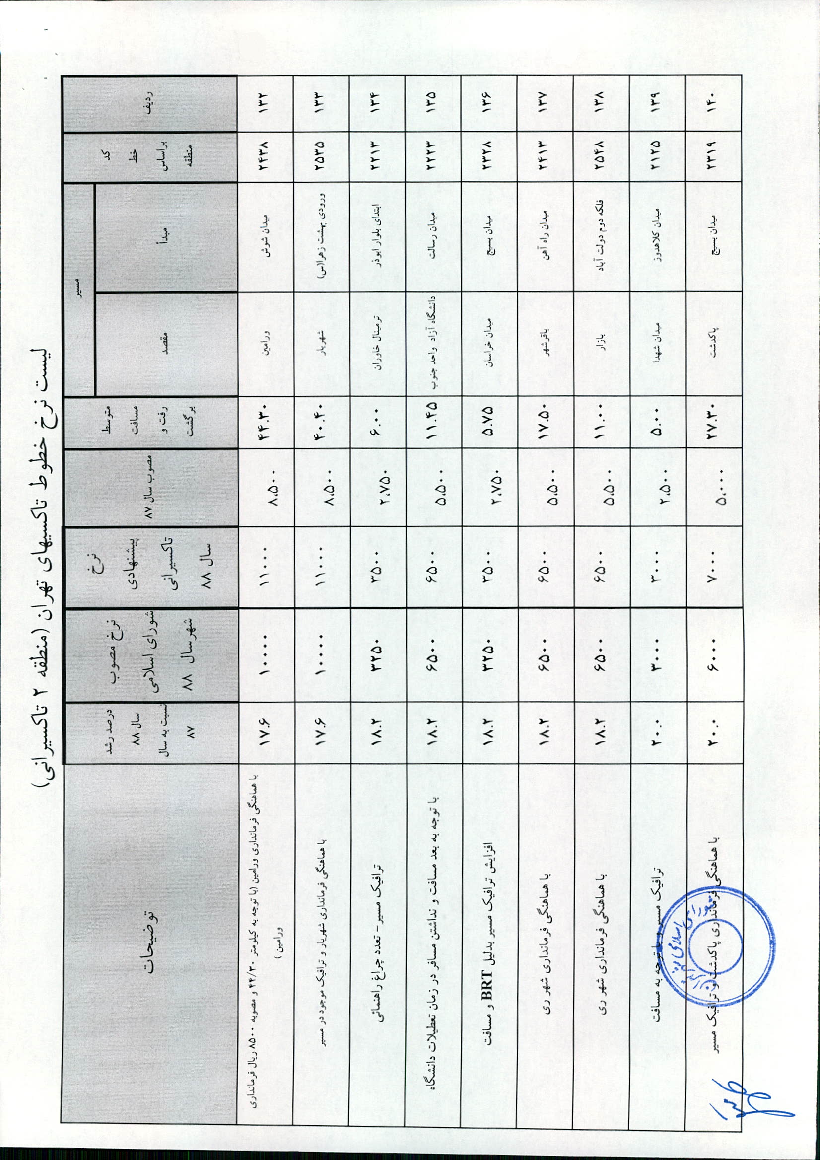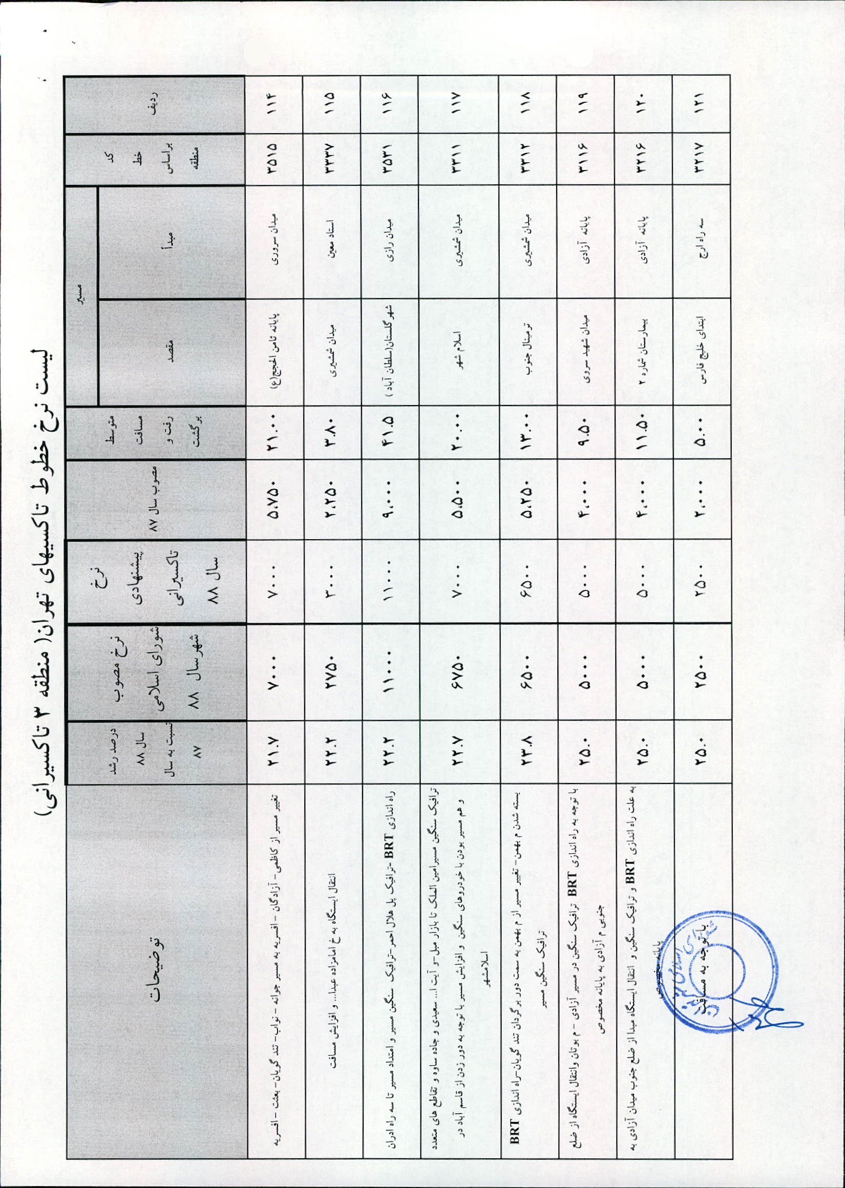 تعيين نرخ كرايه انواع تاكسي در شهر تهران