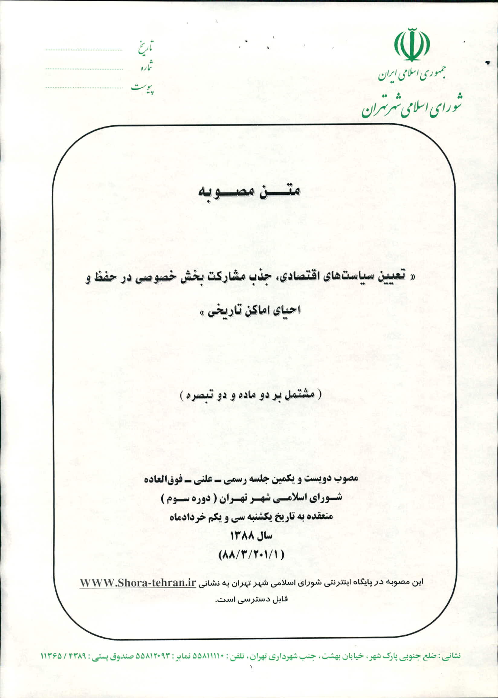 تعيين سياستهاي اقتصادي جذب مشاركت بخش خصوصي در حفظ و احياي اماكن تاريخي