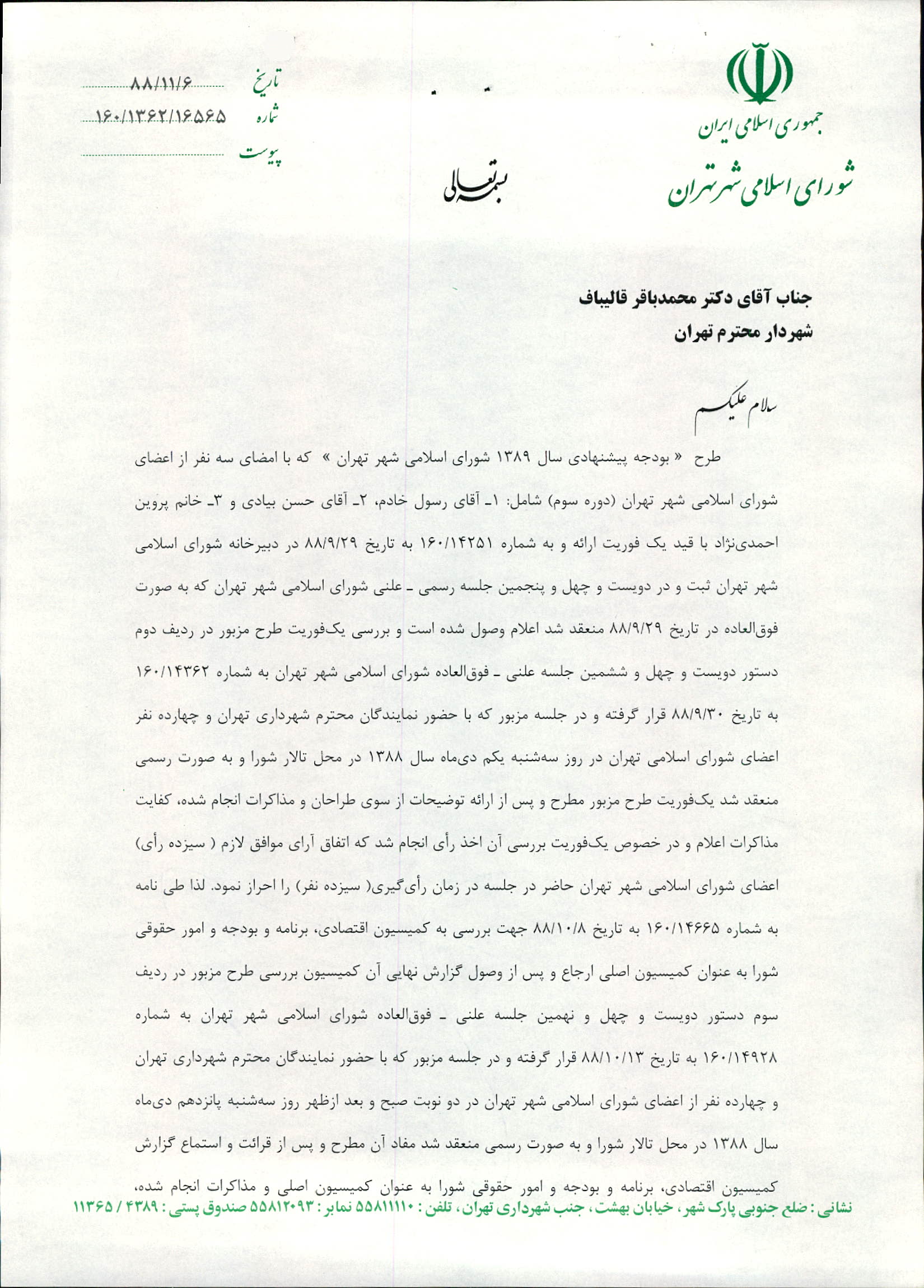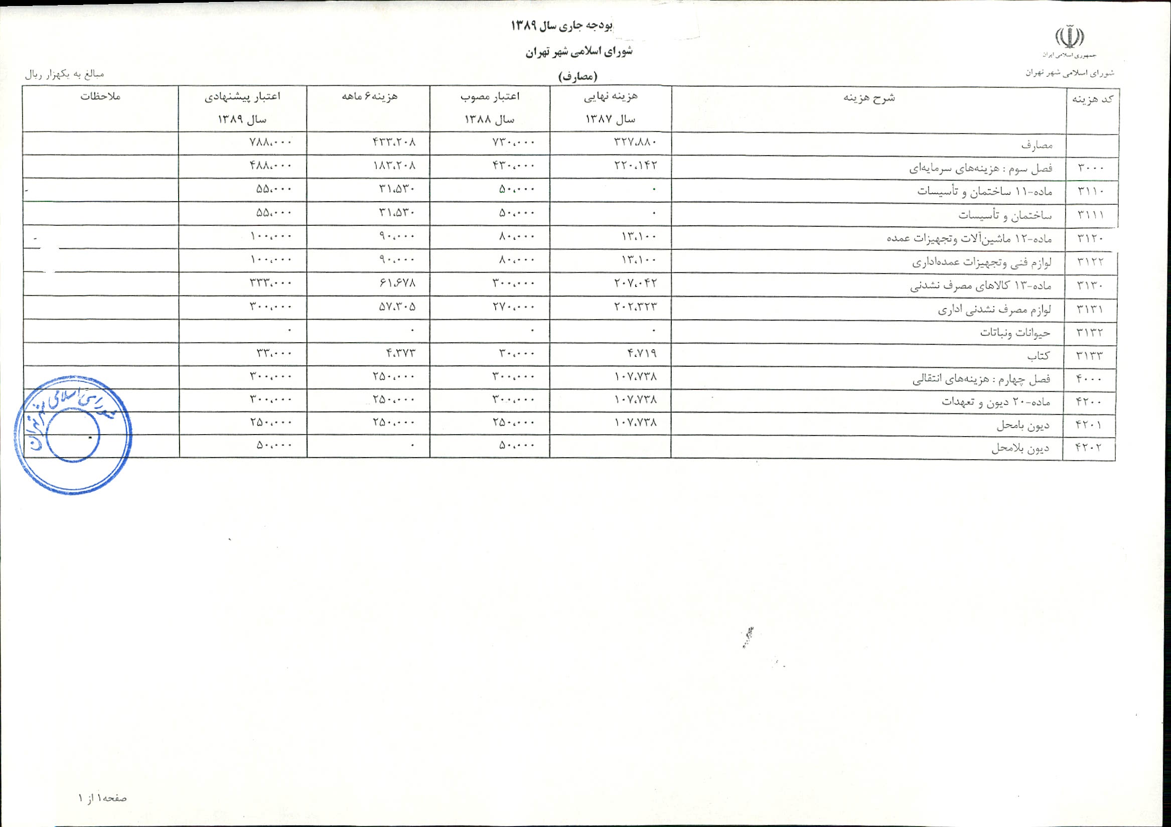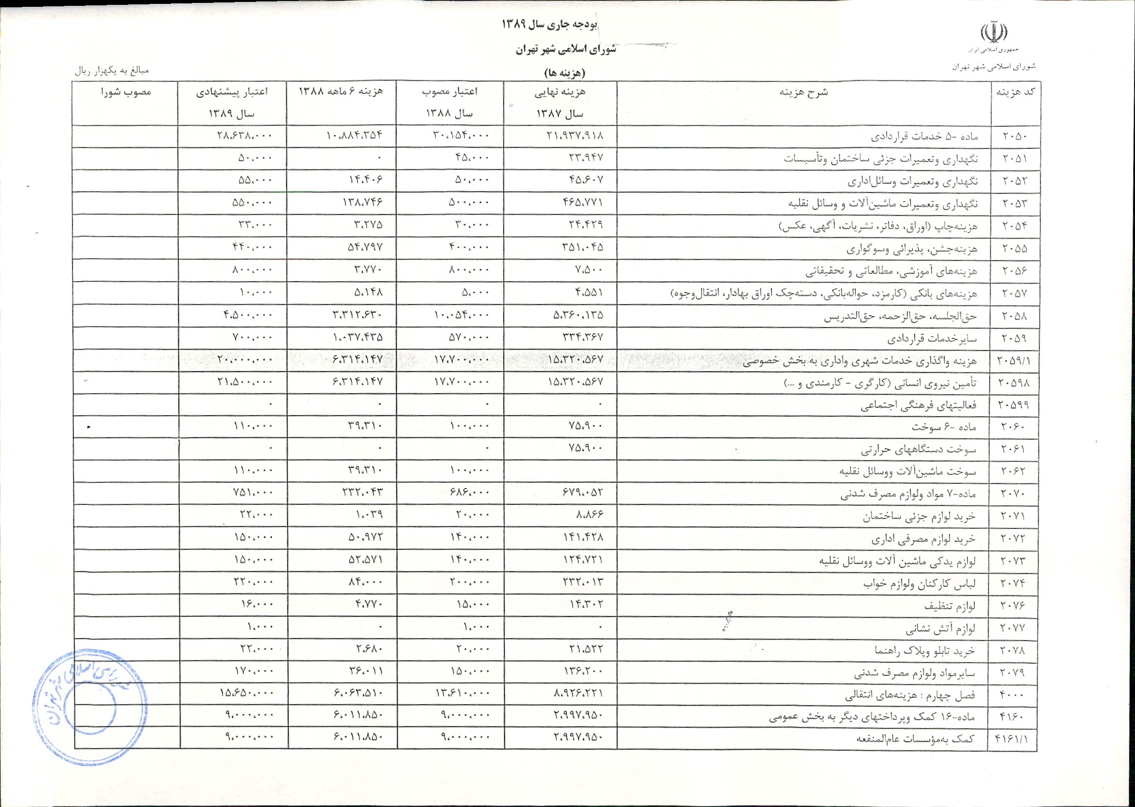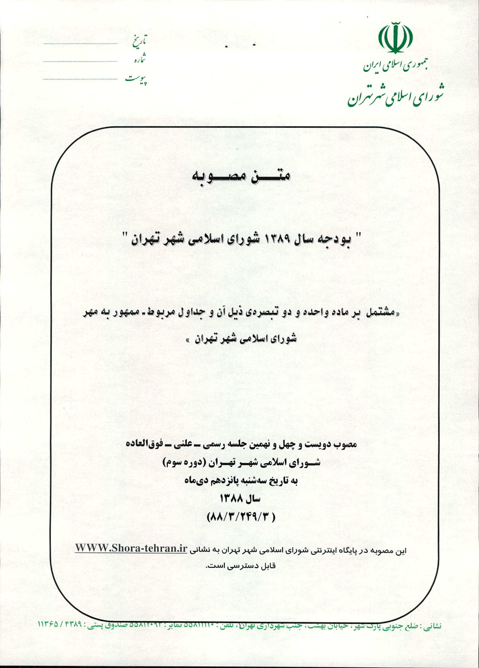 بودجه سال 1389 شوراي اسلامي شهر تهران