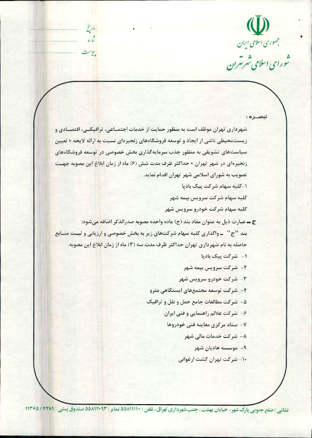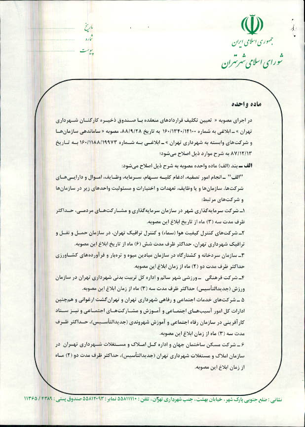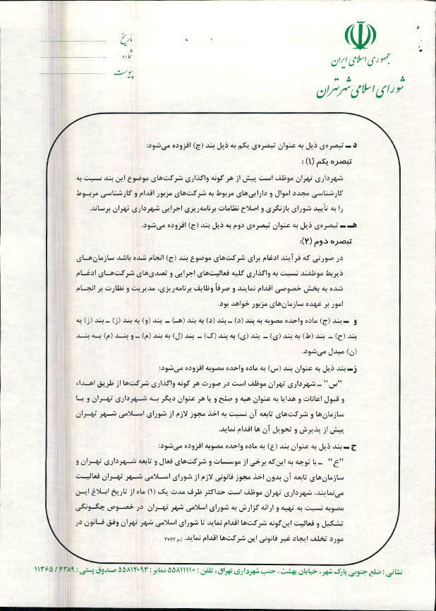 اصلاحيه مصوبه ساماندهي سازمانها و شركتهاي وابسته به شهرداري تهران