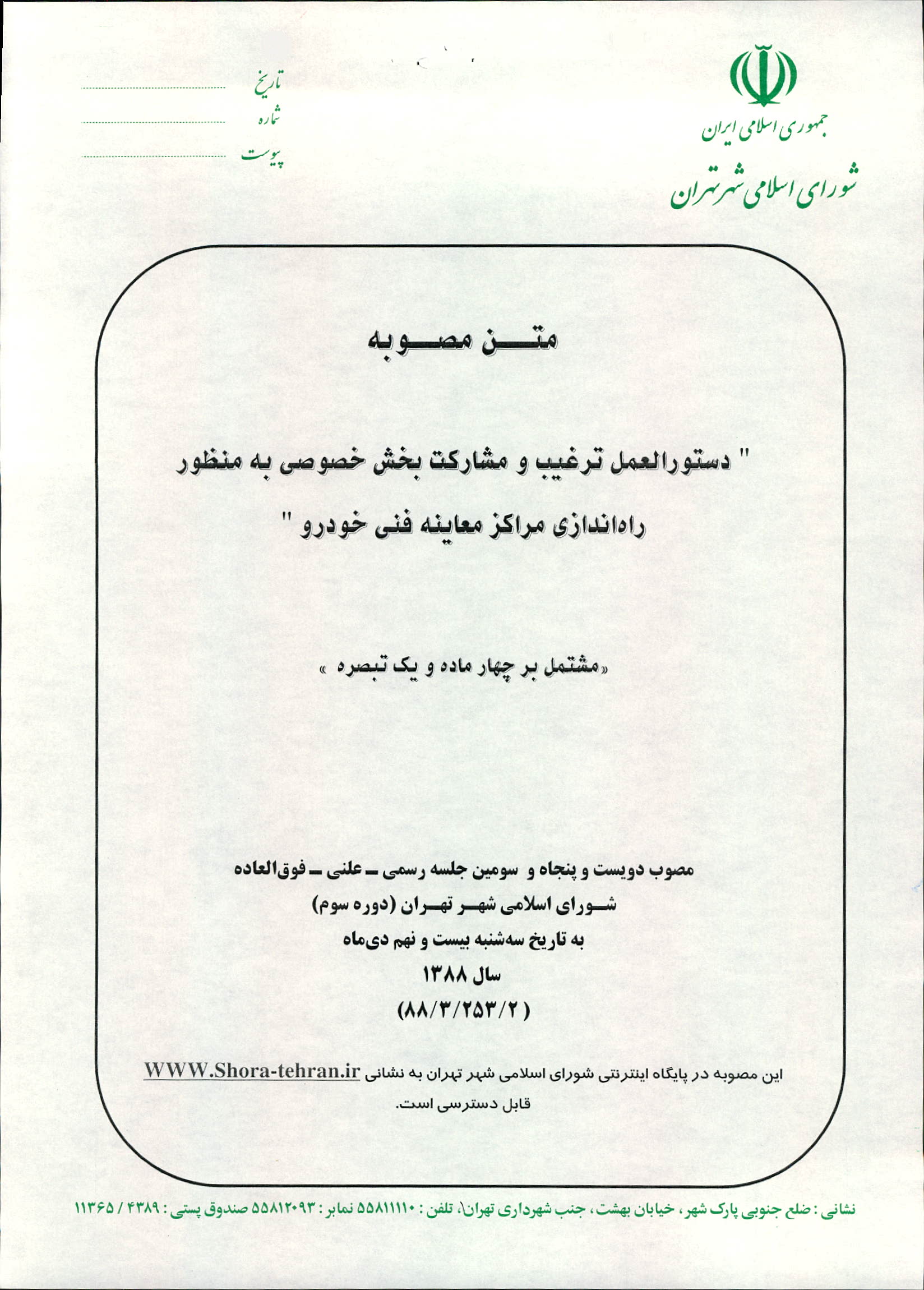 دستورالعمل ترغيب و مشاركت بخش خصوصي به منظور راهاندازي مراكز معاينه فني خودرو