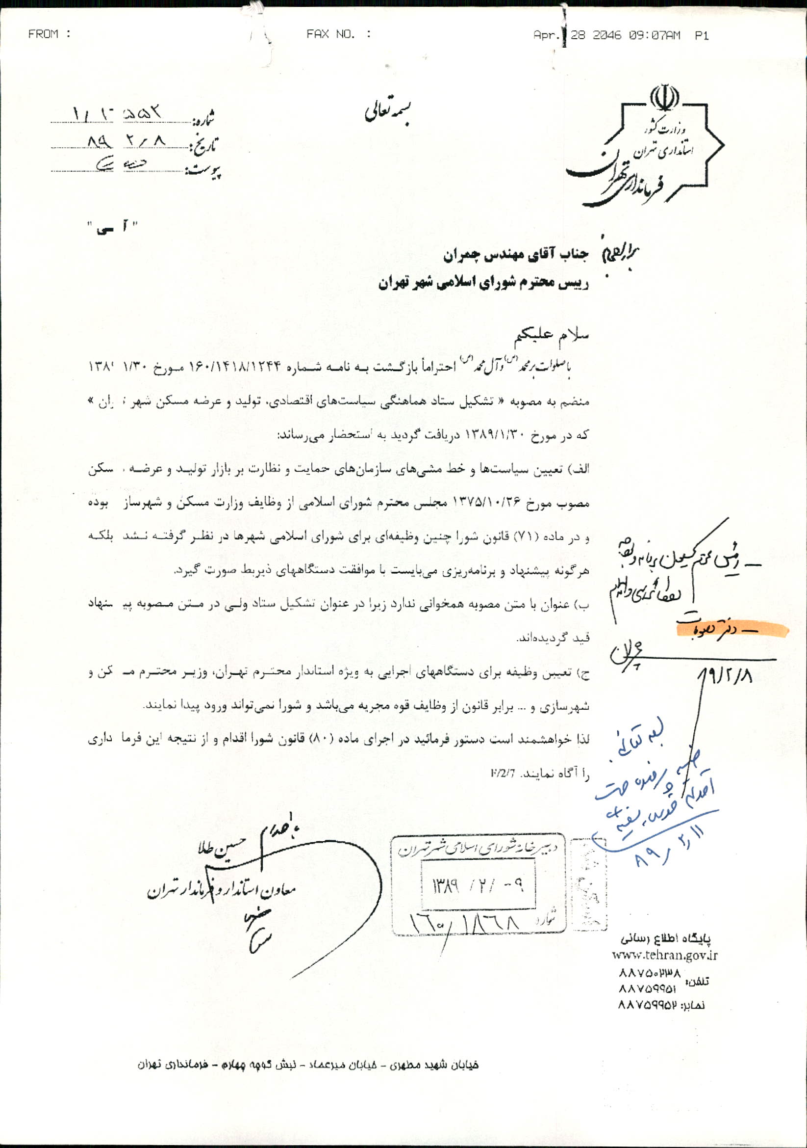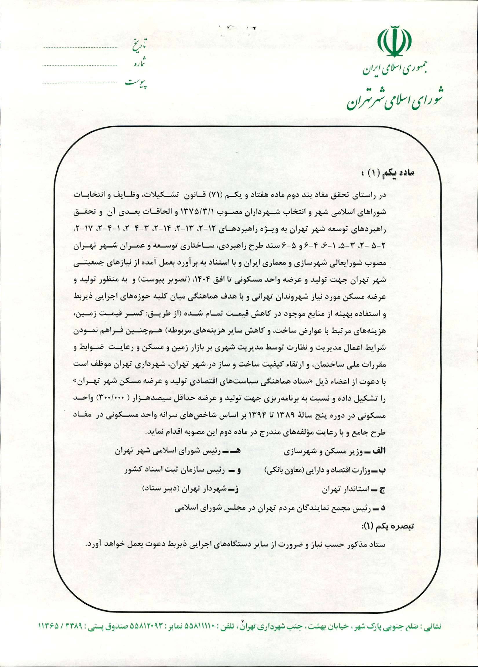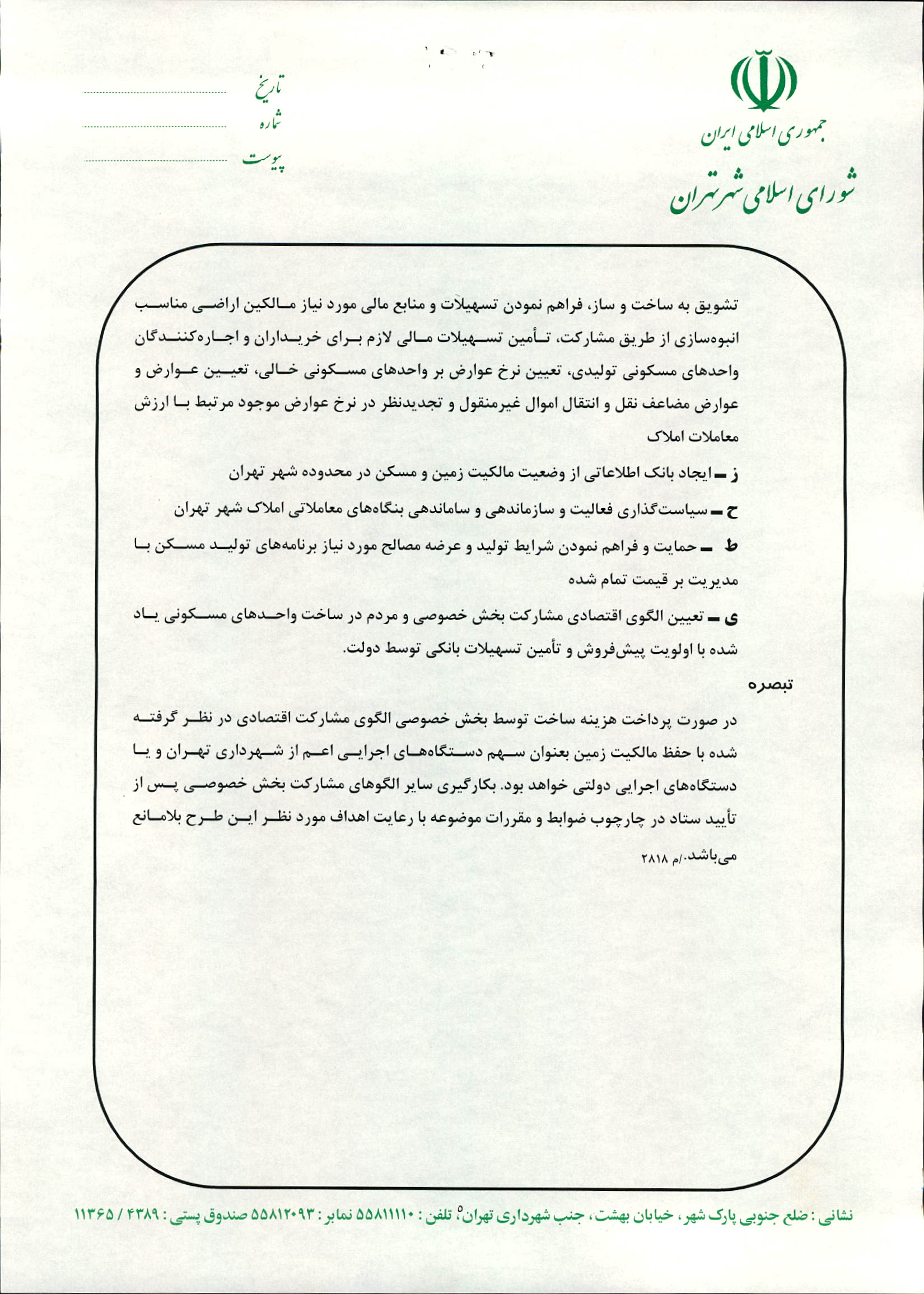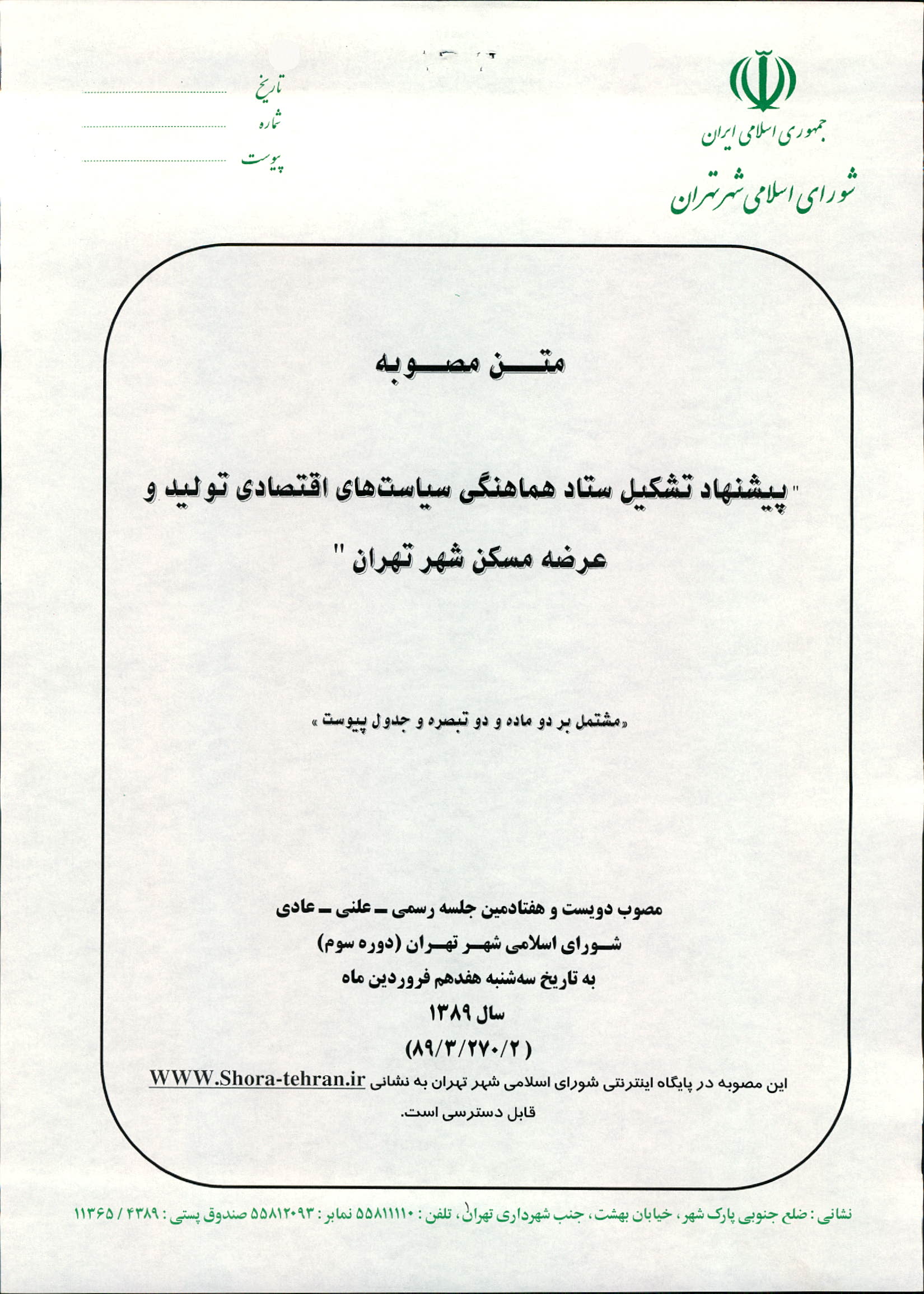 تشكيل ستاد هماهنگي سياستهاي اقتصادي توليد و عرضه مسكن شهر تهران