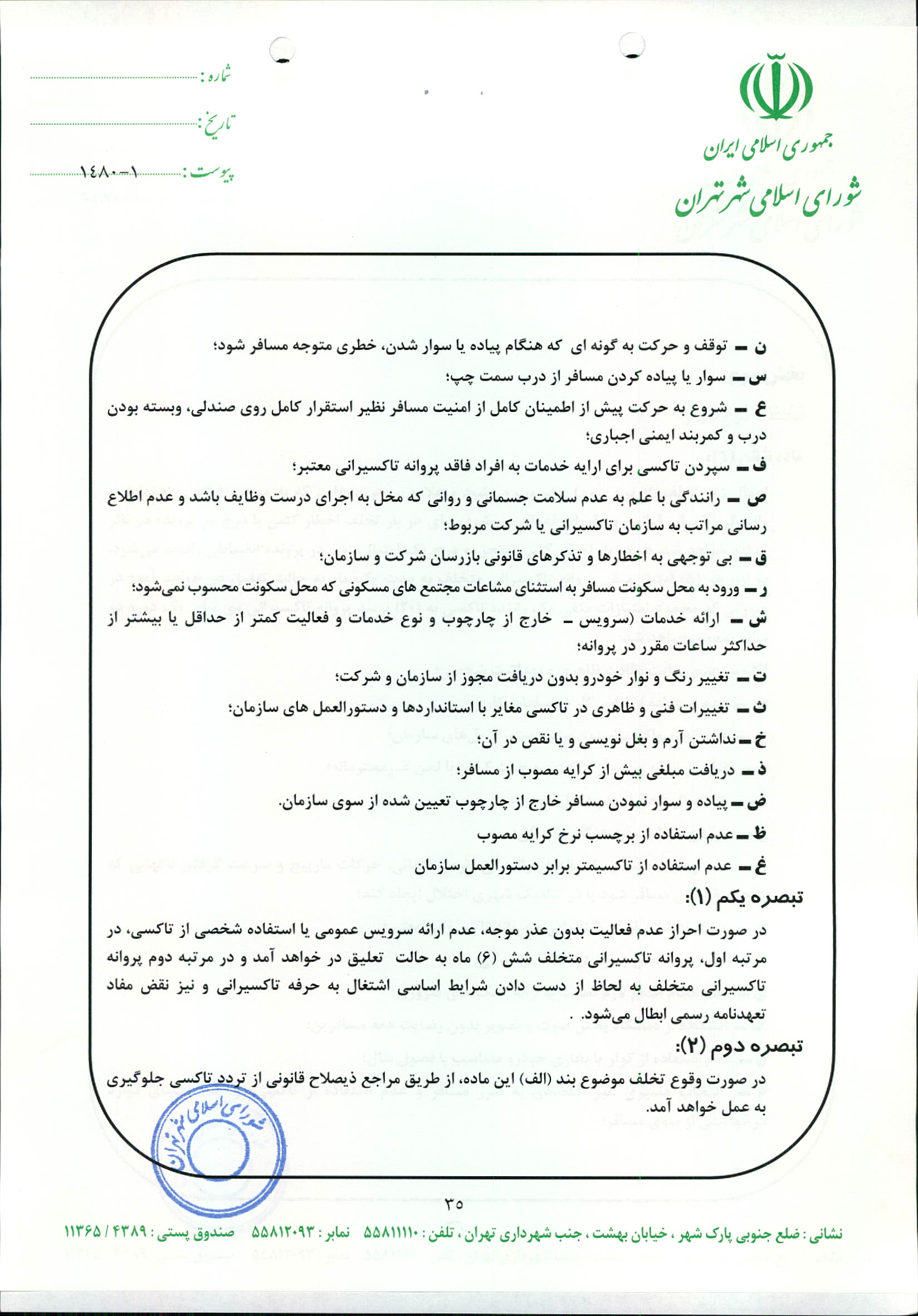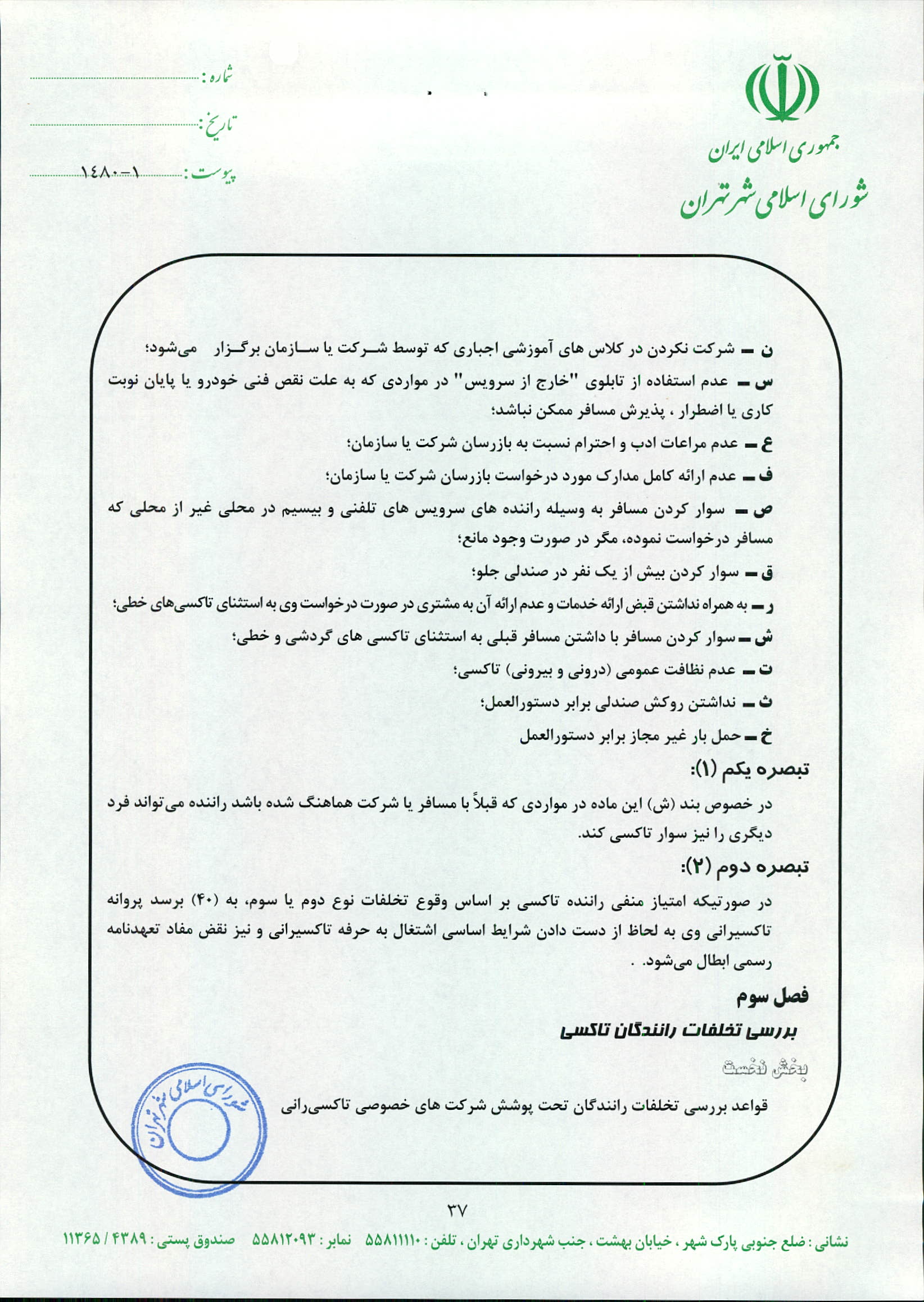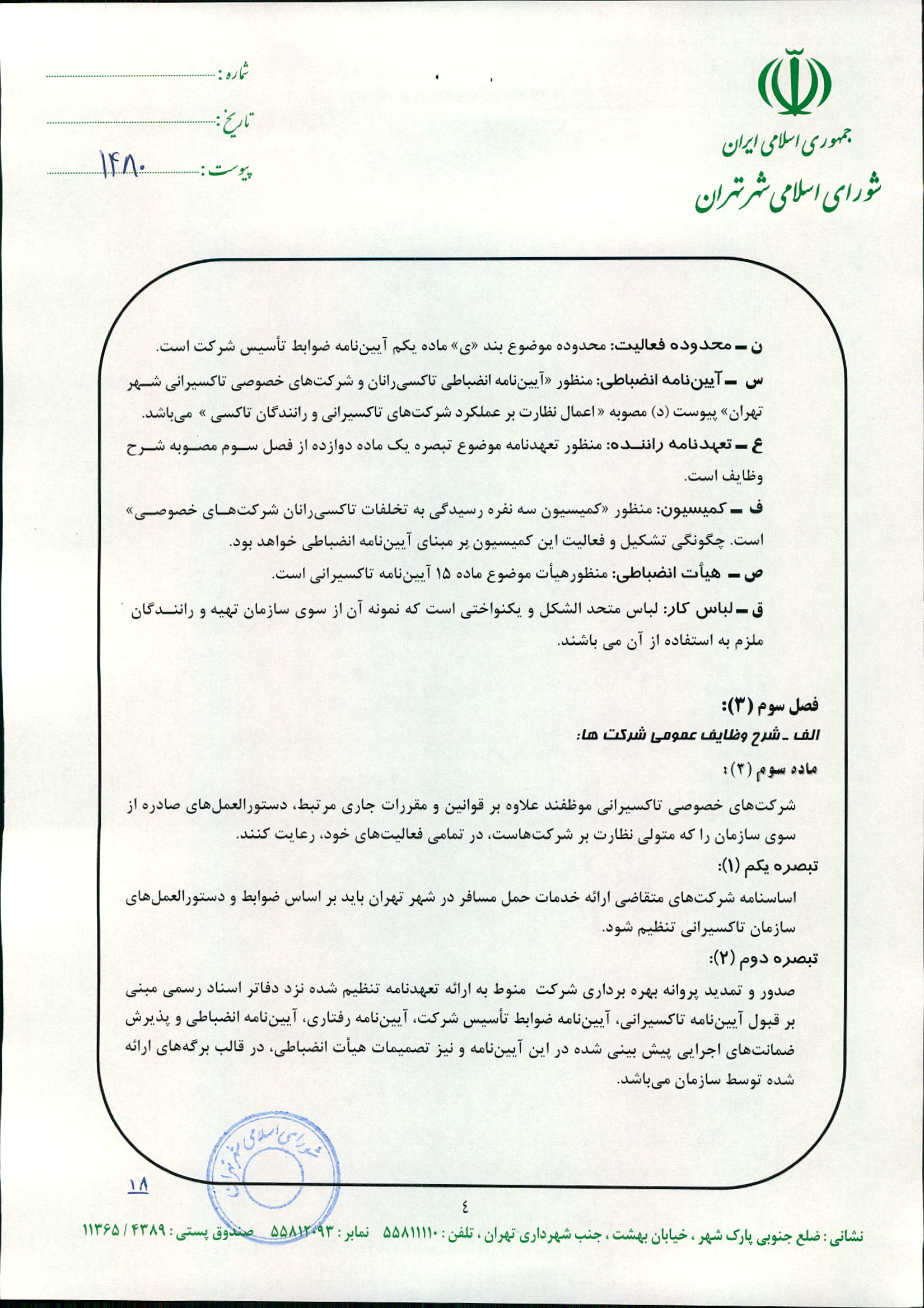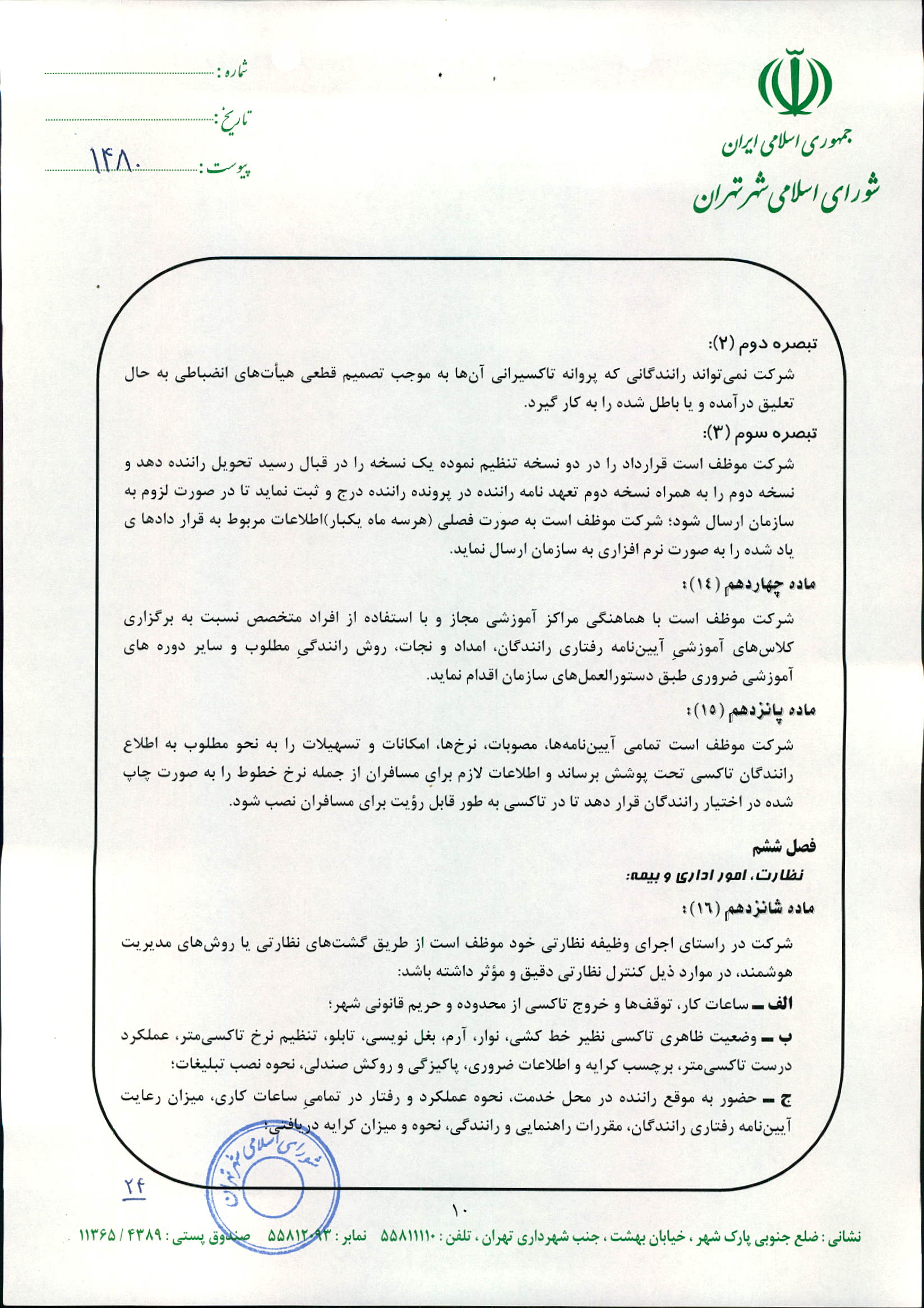 چگونگي اعمال نظارت بر عملكرد شركت‌هاي تاكسيراني و رانندگان تاكسي