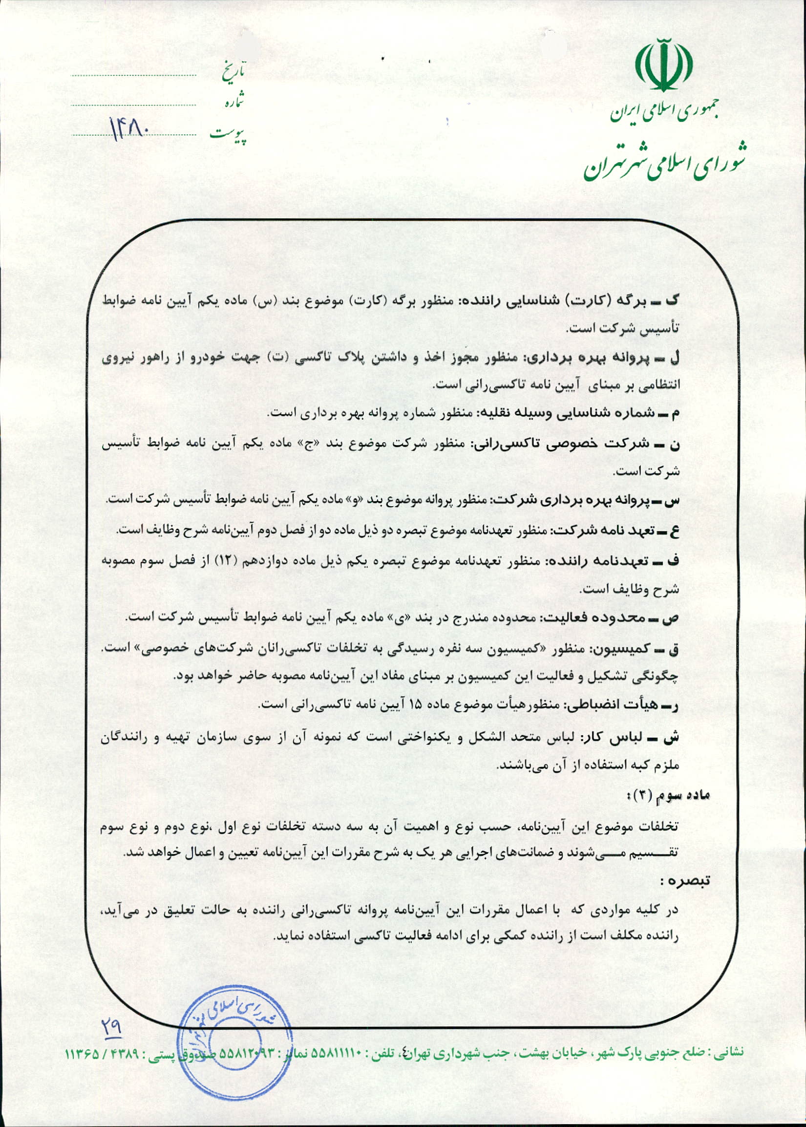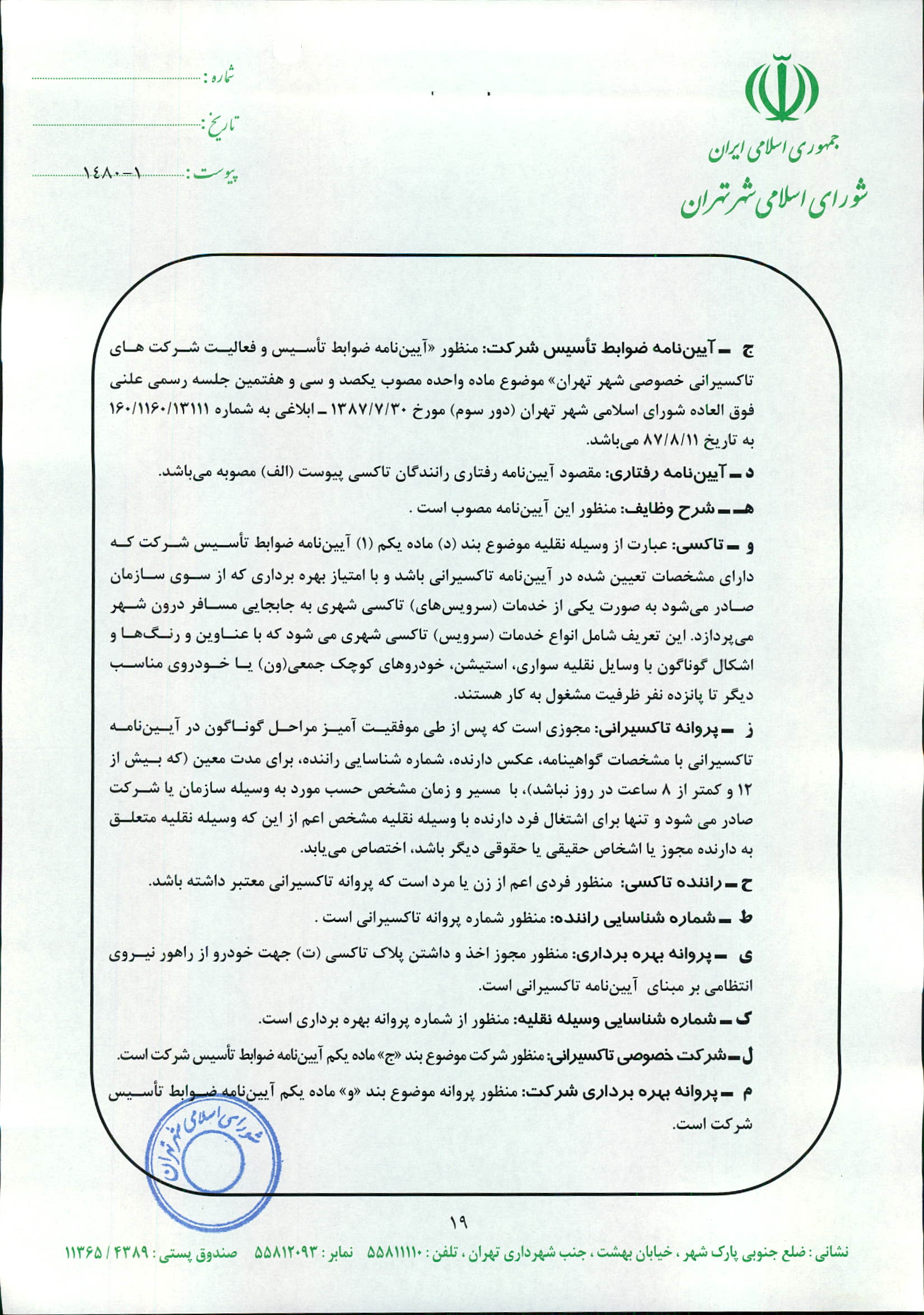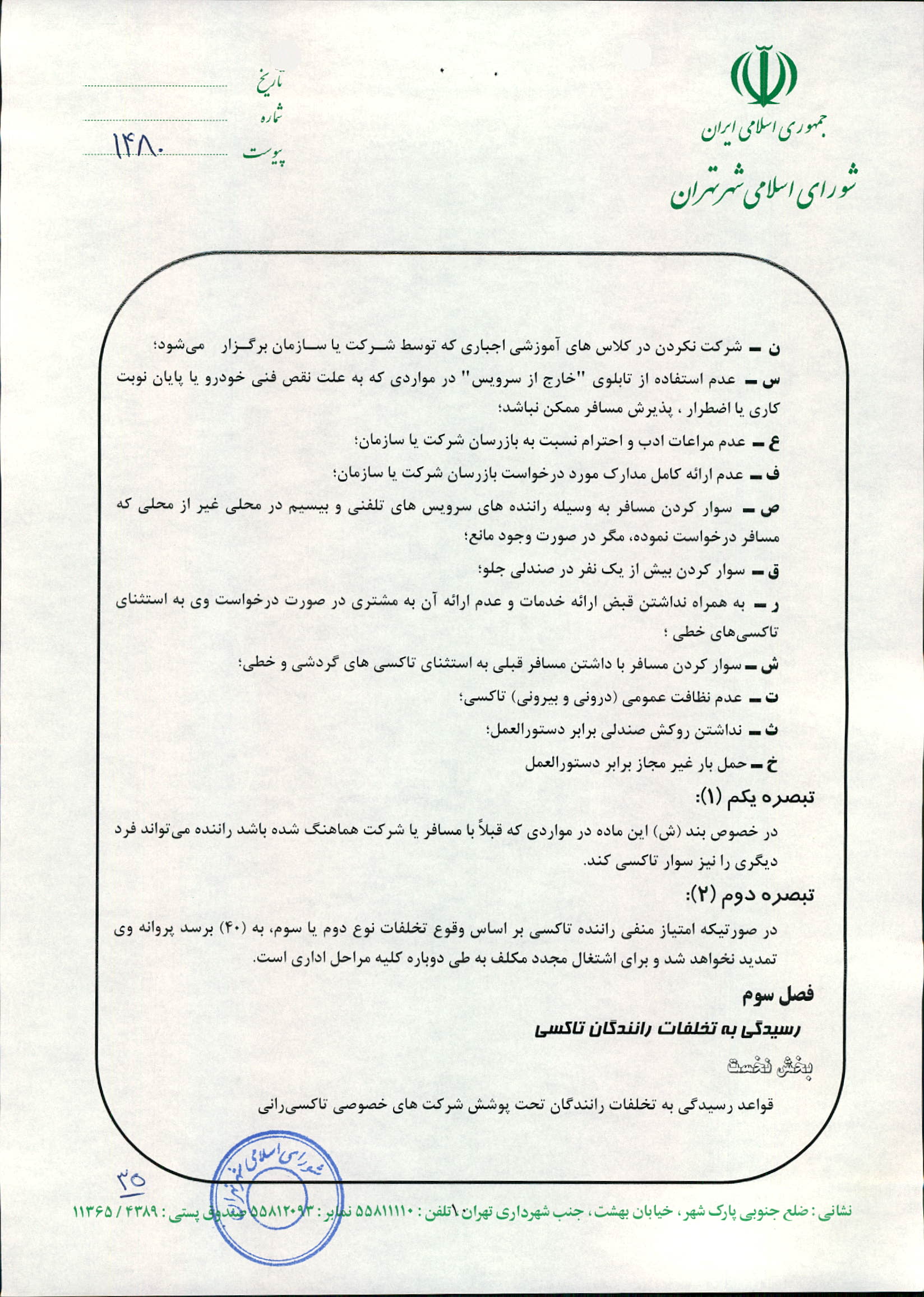 چگونگي اعمال نظارت بر عملكرد شركت‌هاي تاكسيراني و رانندگان تاكسي