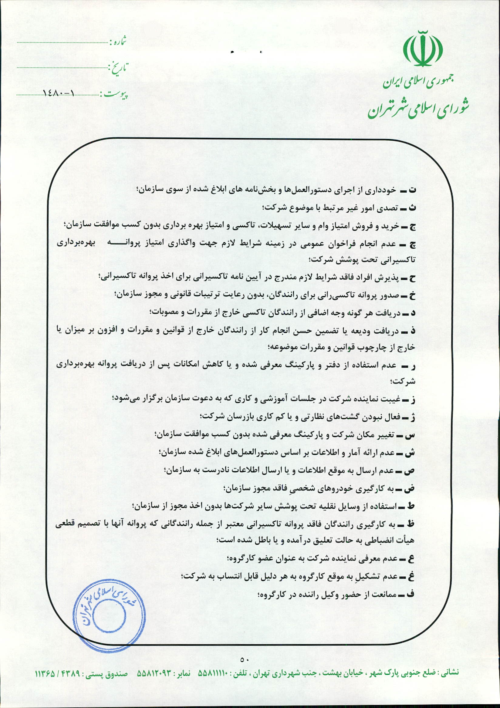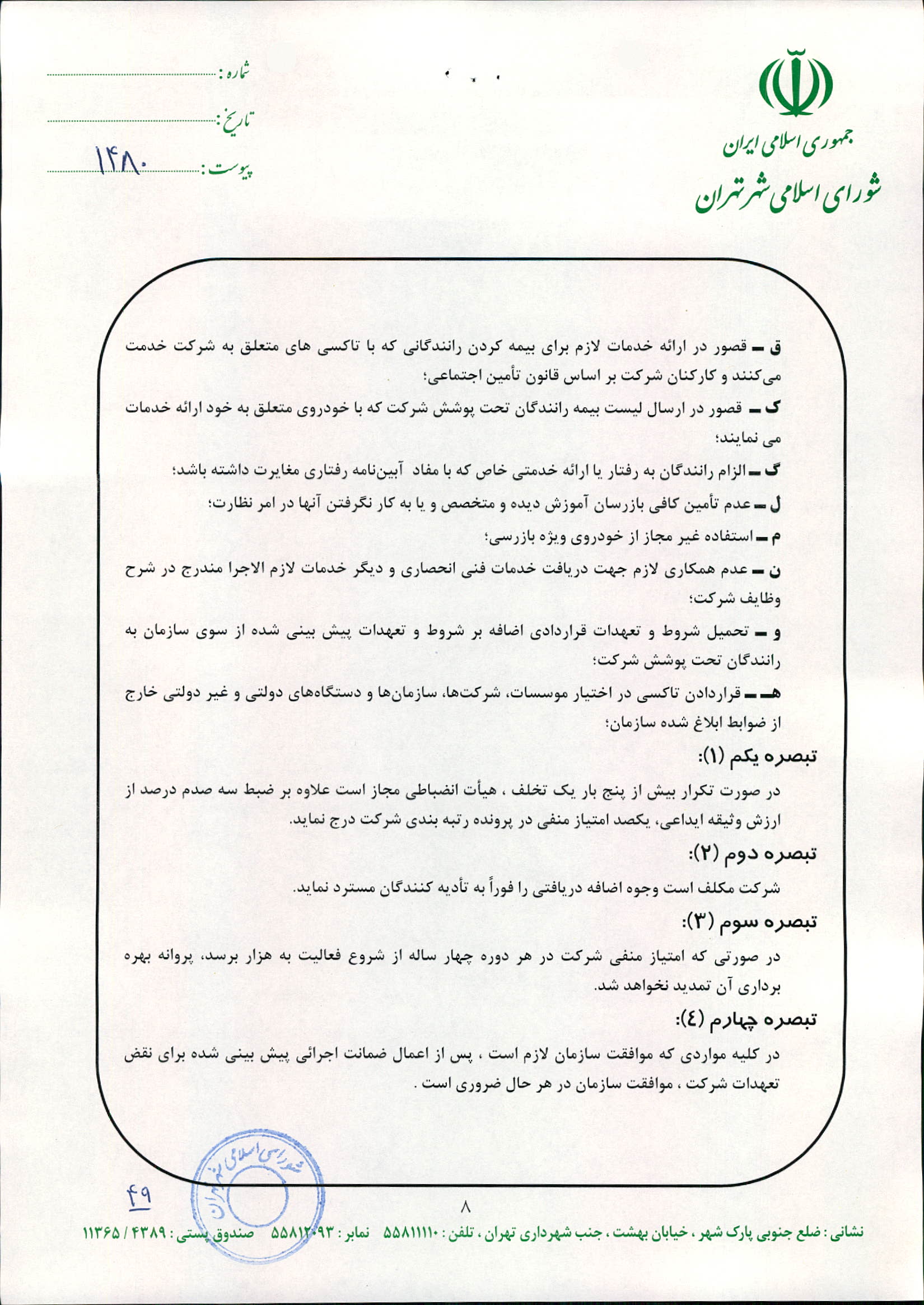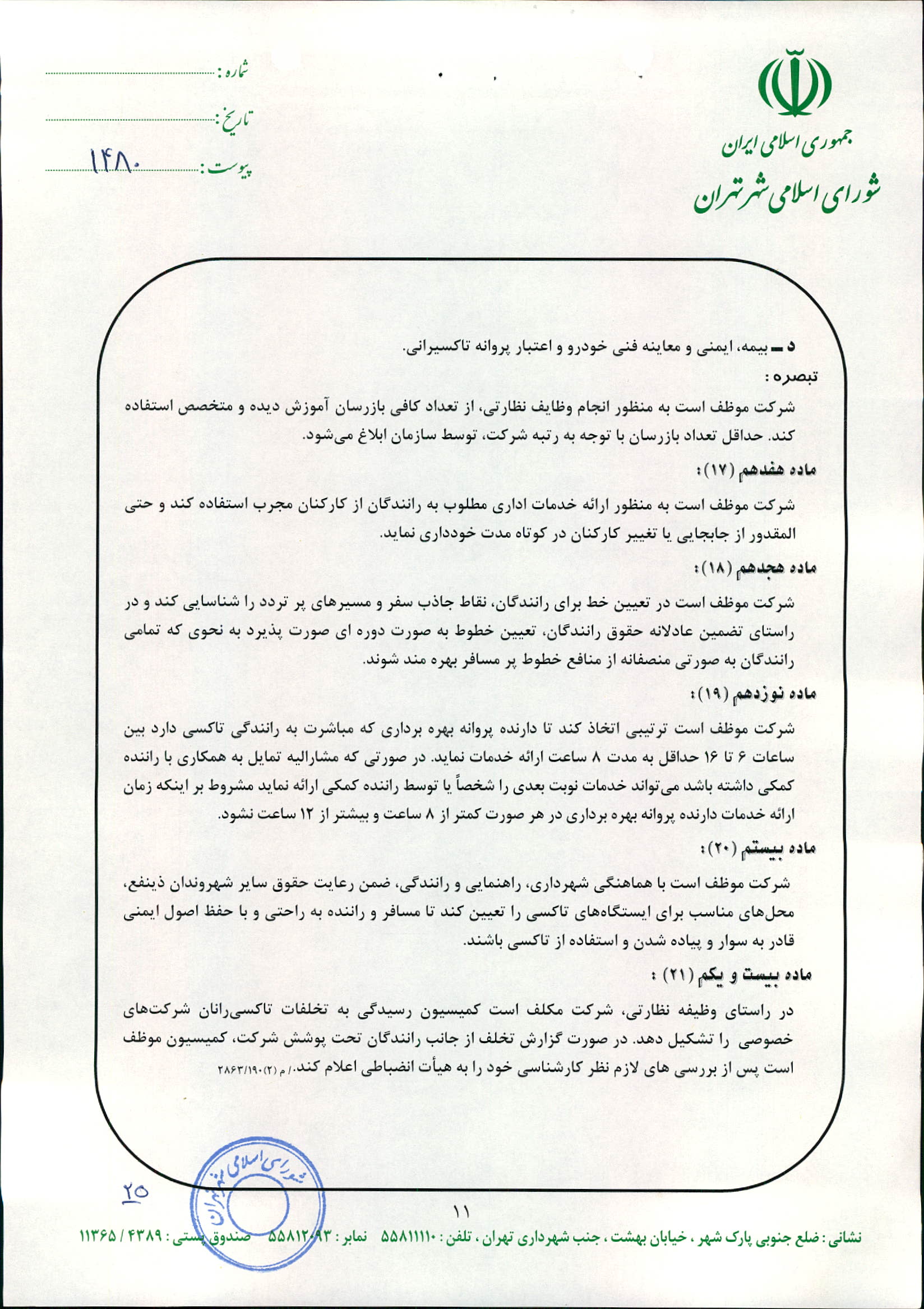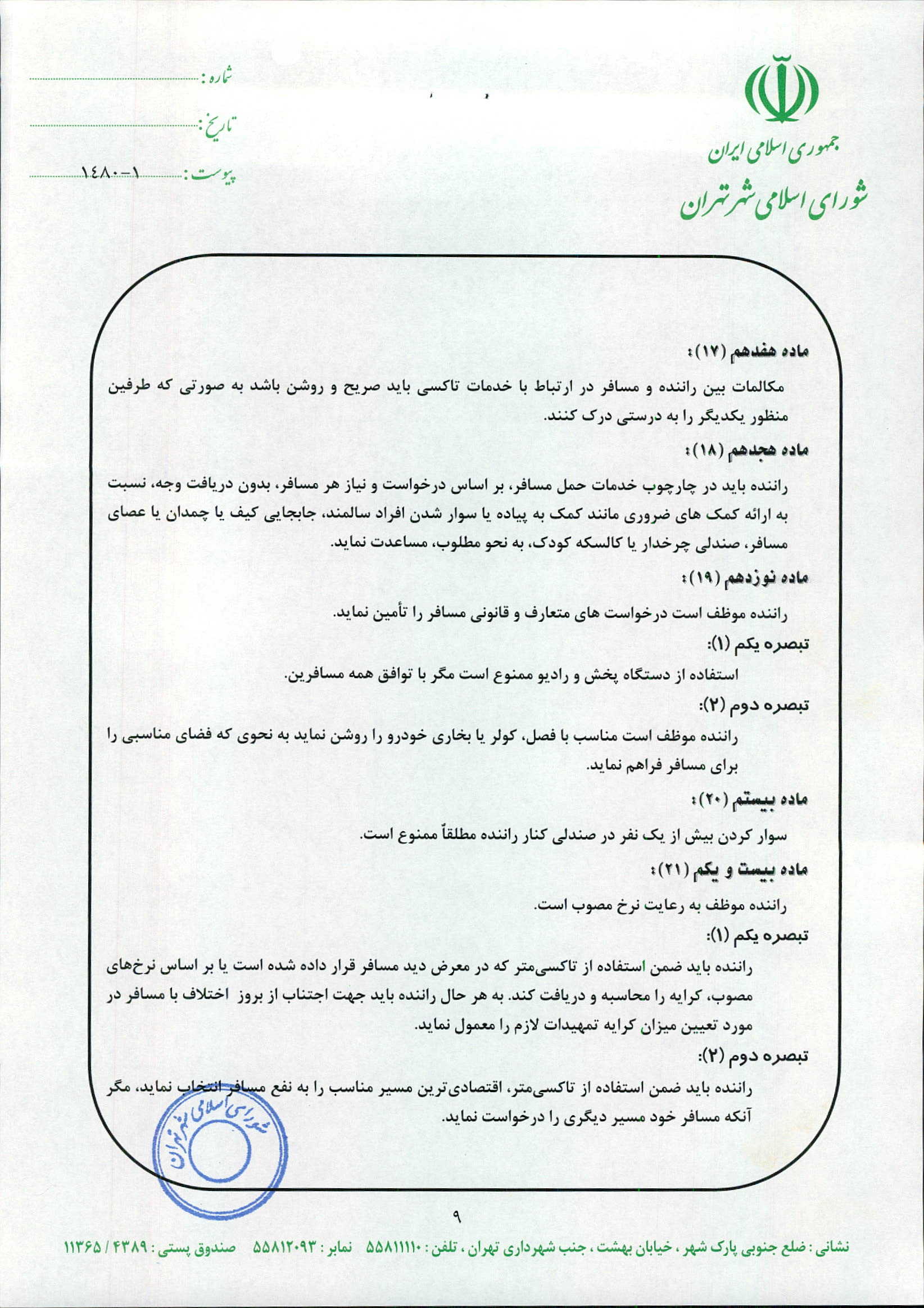 چگونگي اعمال نظارت بر عملكرد شركت‌هاي تاكسيراني و رانندگان تاكسي