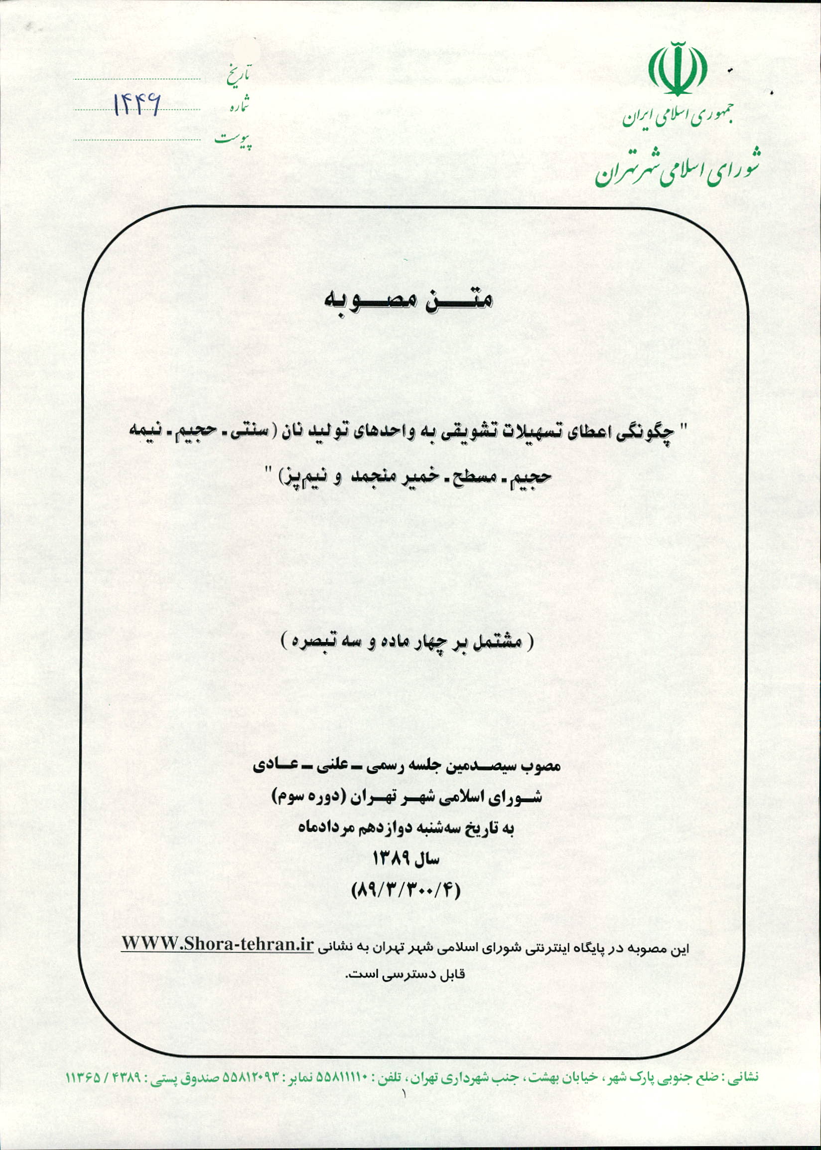 چگونگي اعطاي تسهيلات تشويقي به واحدهاي توليدي نان (سنتي ـ حجيم ـ نيمهحجيم ـ مسطح ـ خمير منجد و نيمپز)