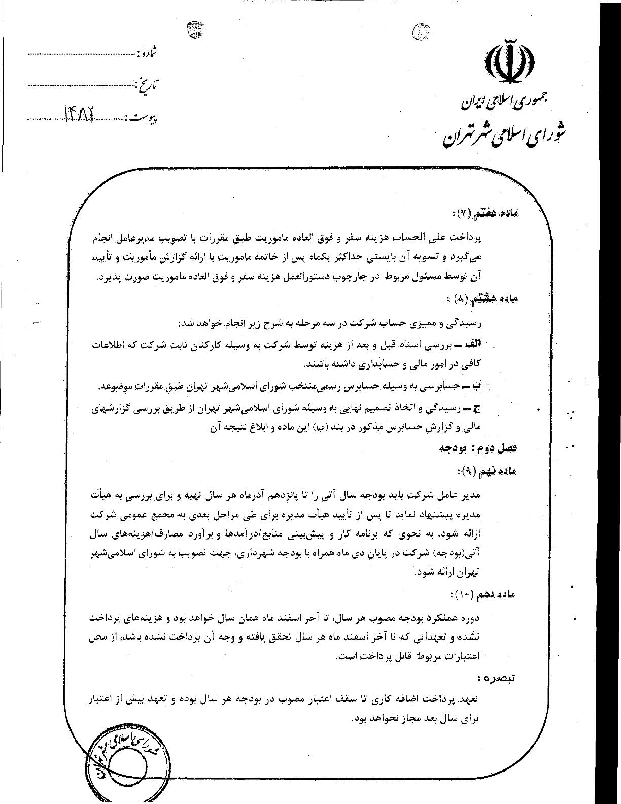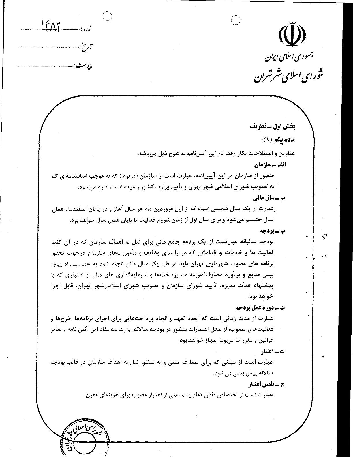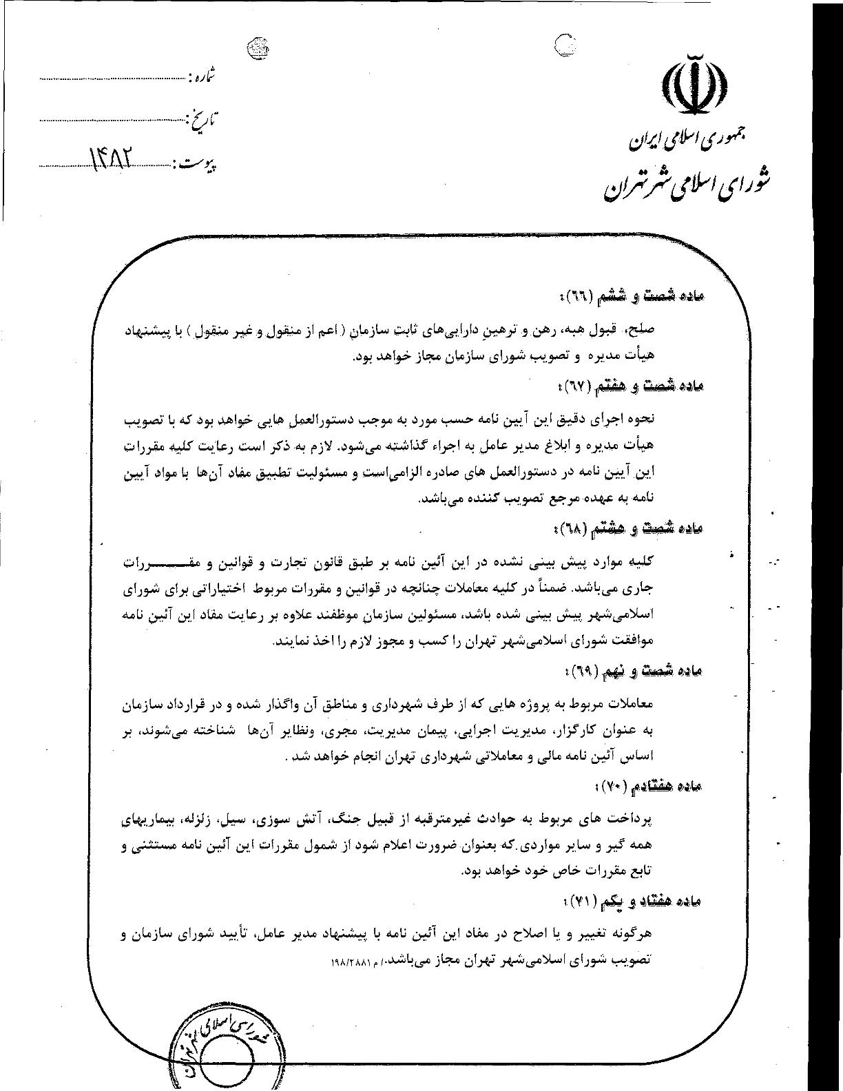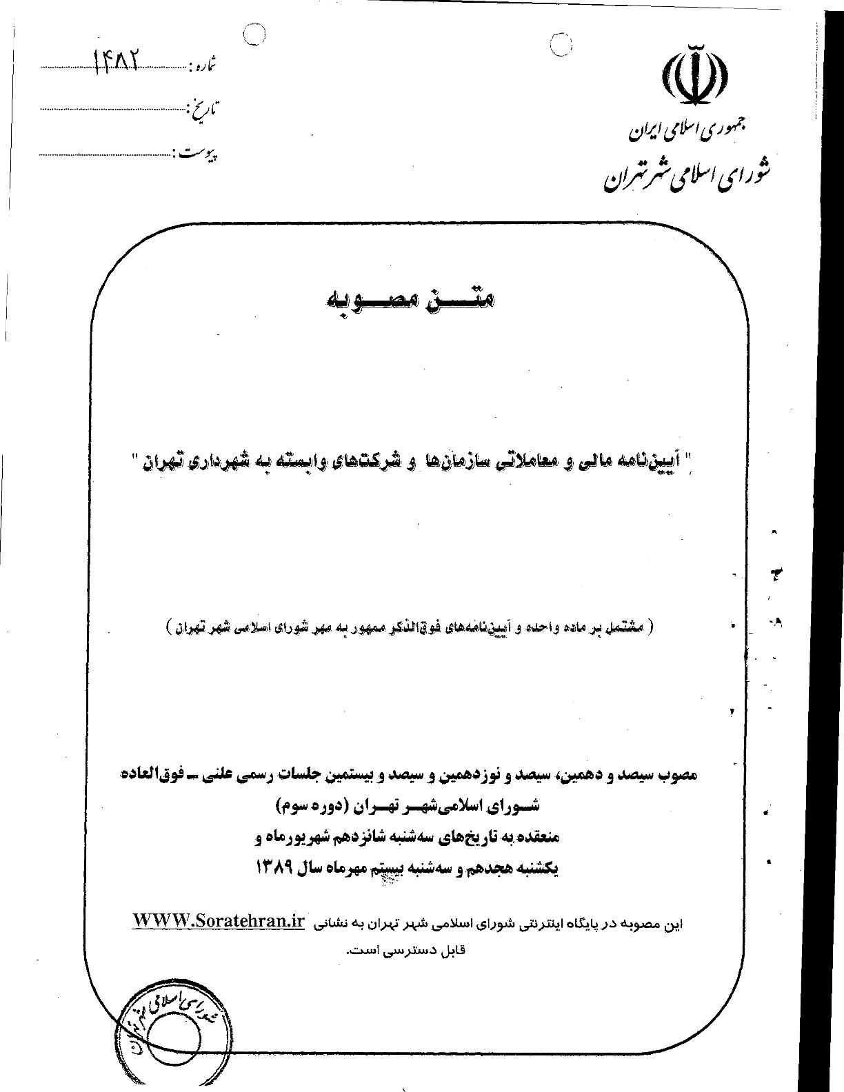 آيين‌نامه مالي و معاملاتي سازمان‌ها و شركت‌هاي وابسته به شهرداري تهران
