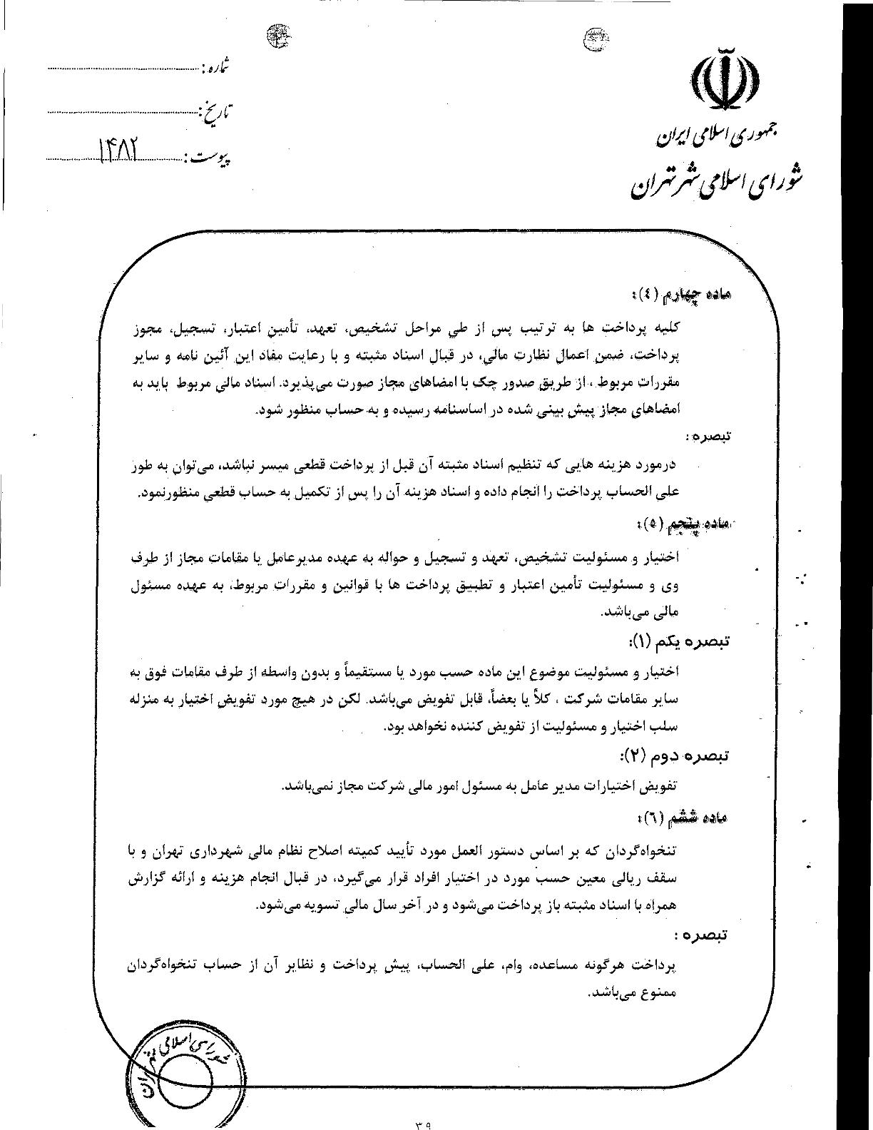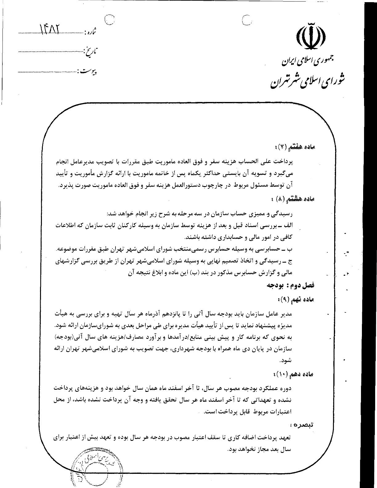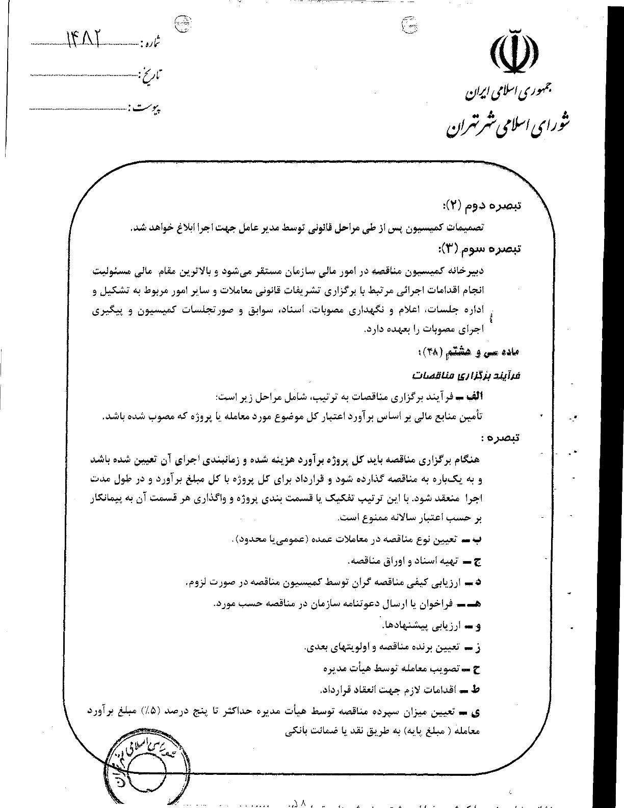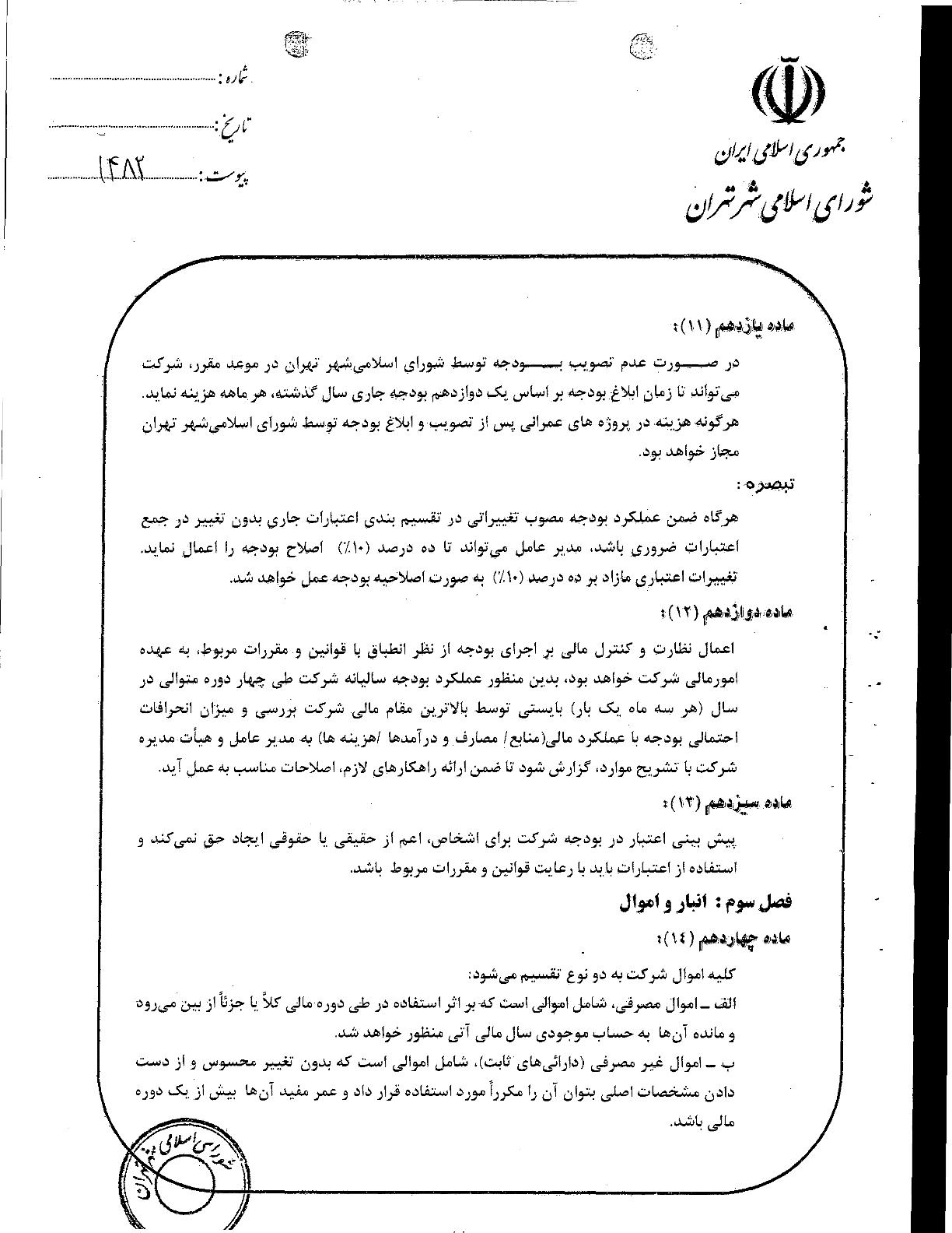 آيين‌نامه مالي و معاملاتي سازمان‌ها و شركت‌هاي وابسته به شهرداري تهران