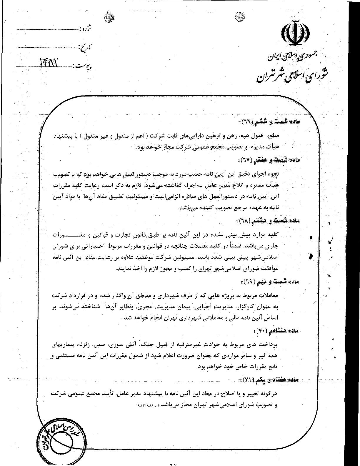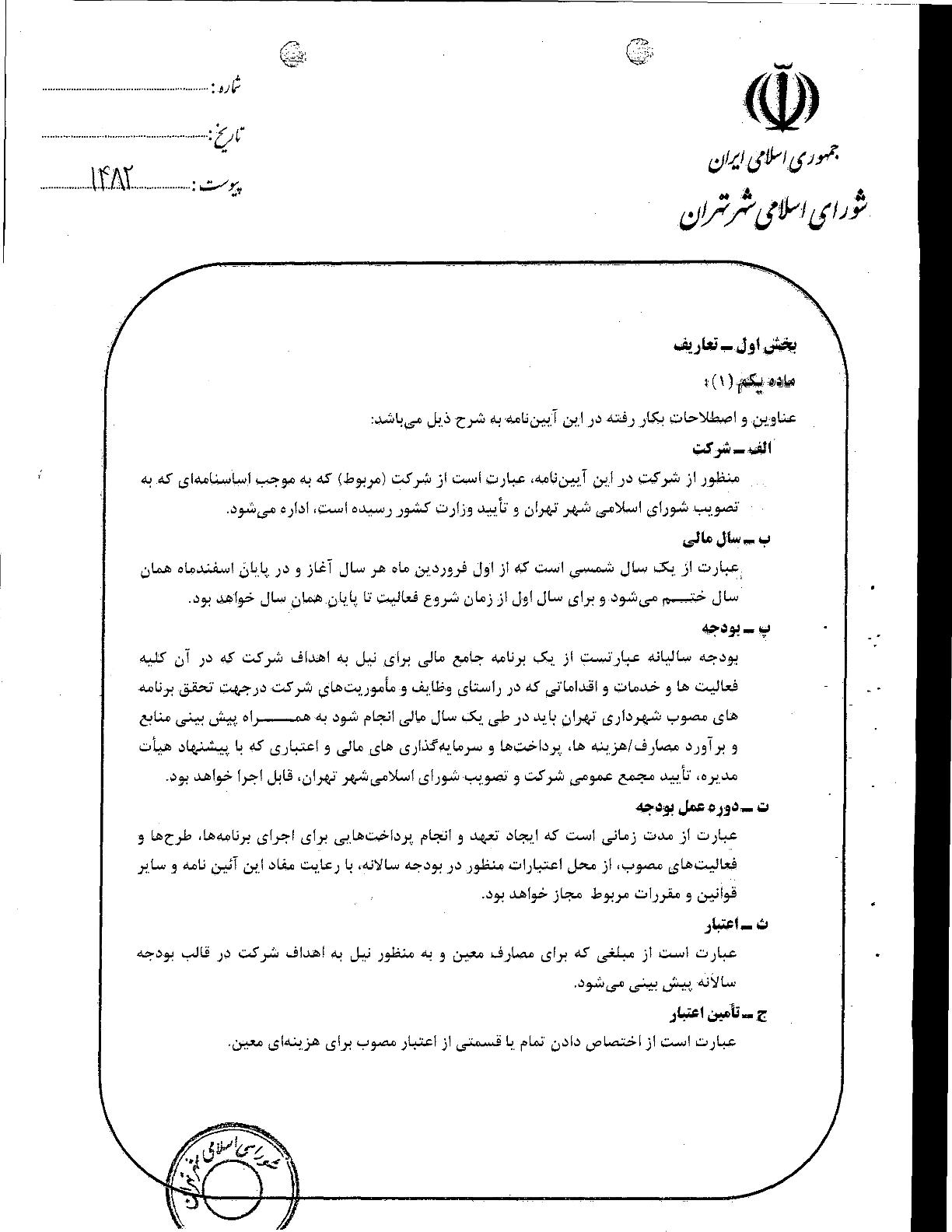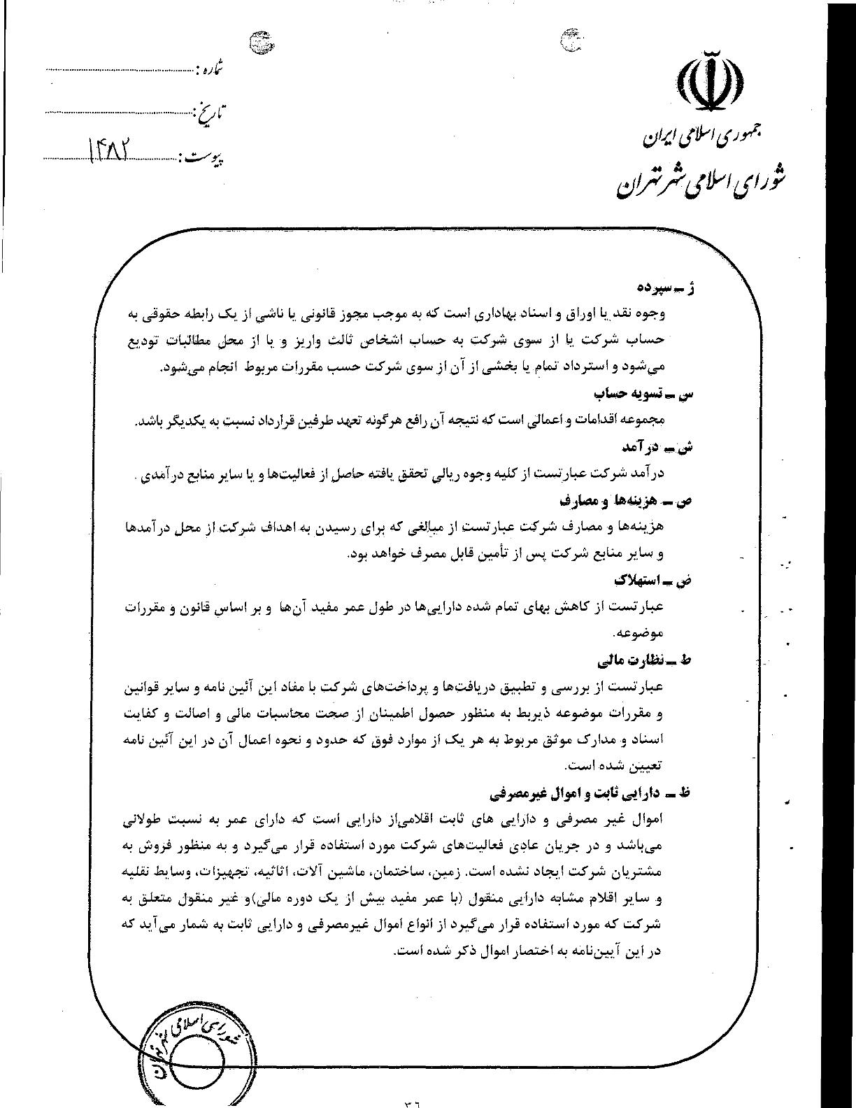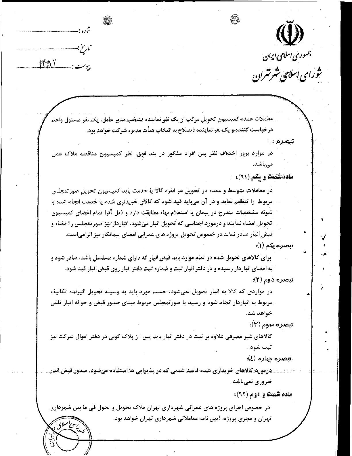 آيين‌نامه مالي و معاملاتي سازمان‌ها و شركت‌هاي وابسته به شهرداري تهران