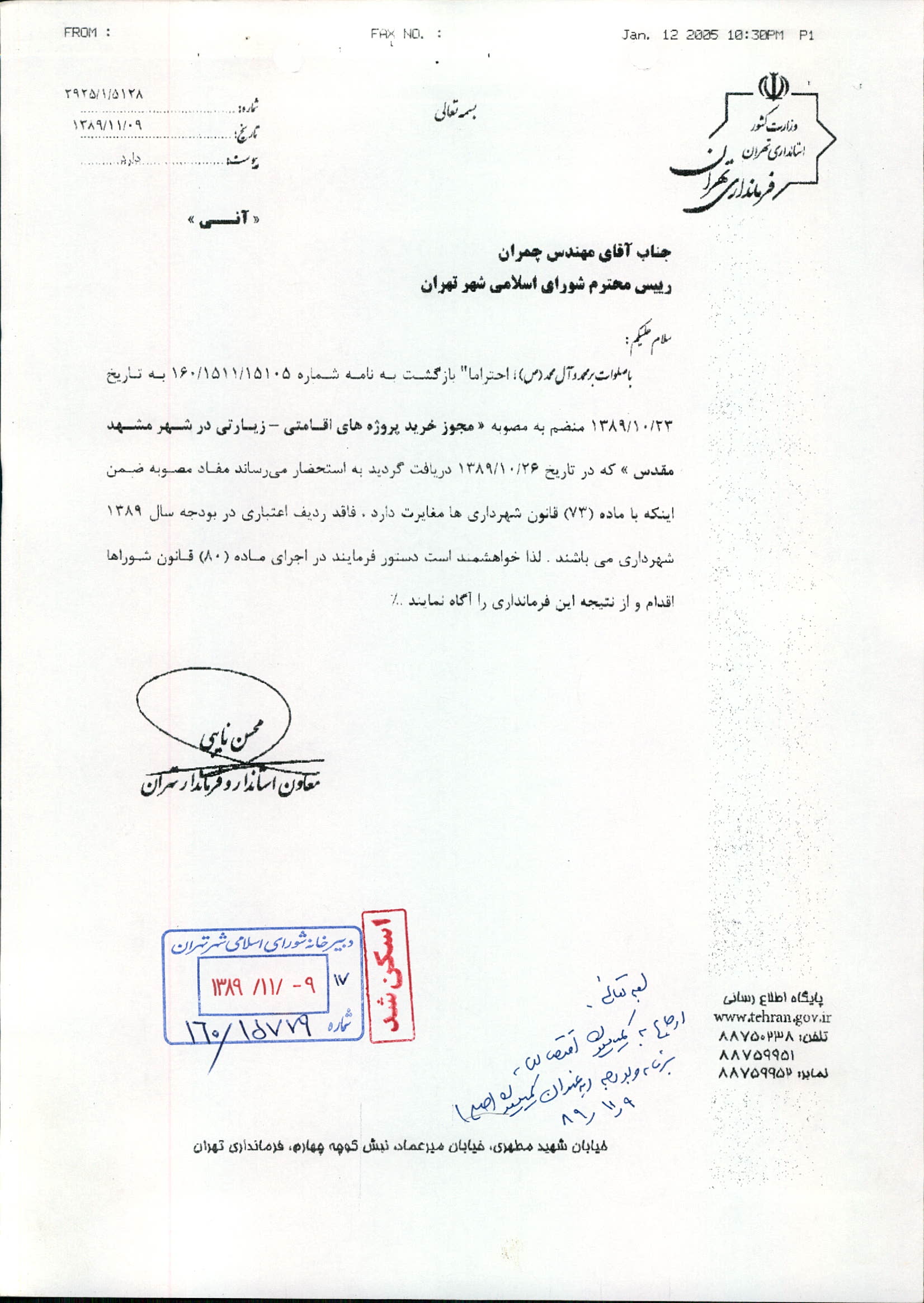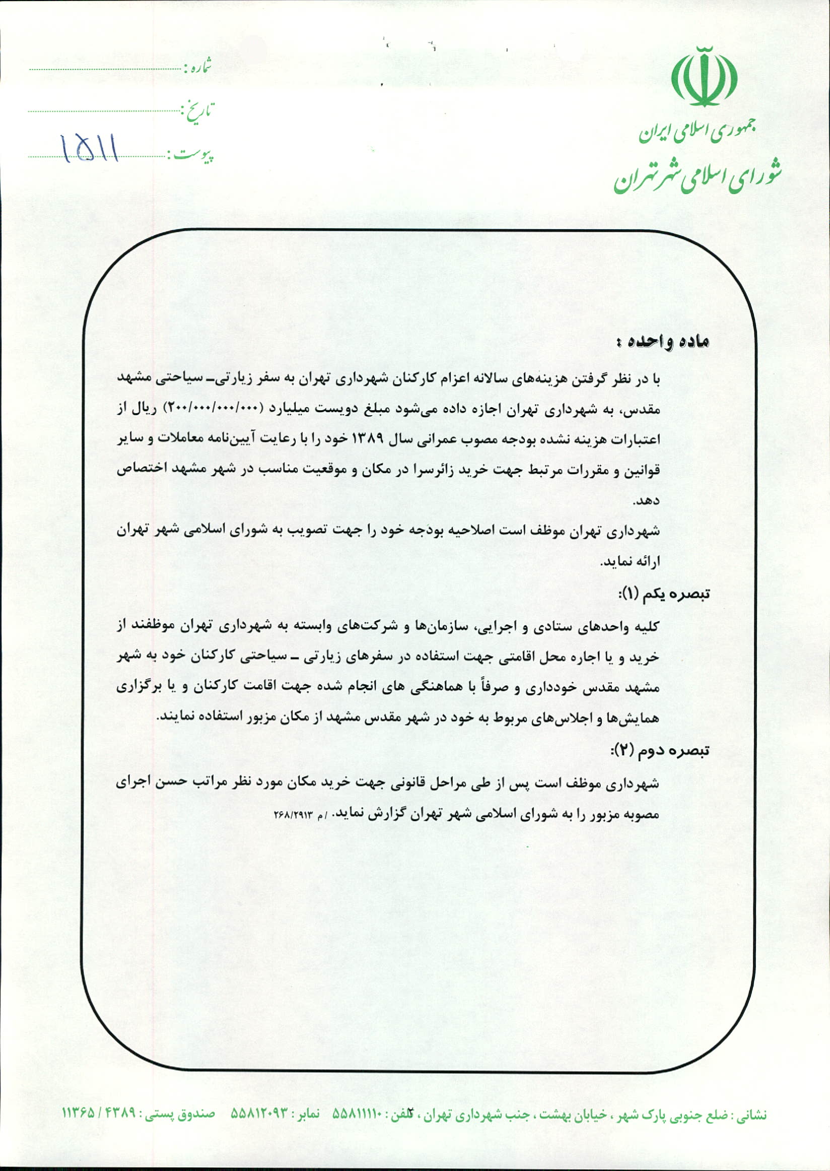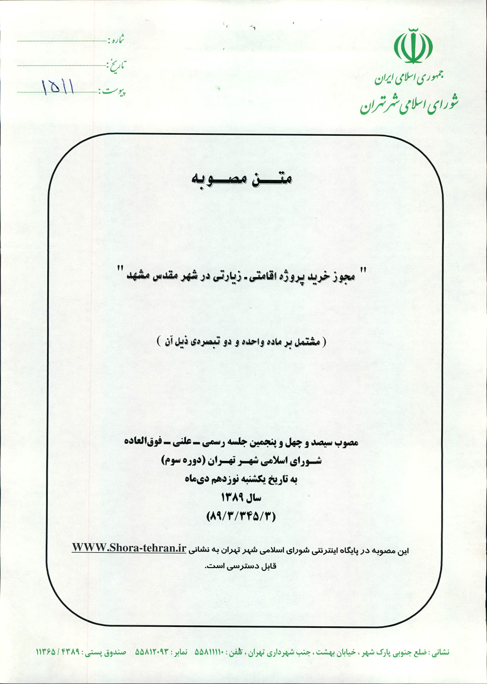 مجوز خريد پروژه اقامتي ـ زيارتي در شهر مشهد مقدس