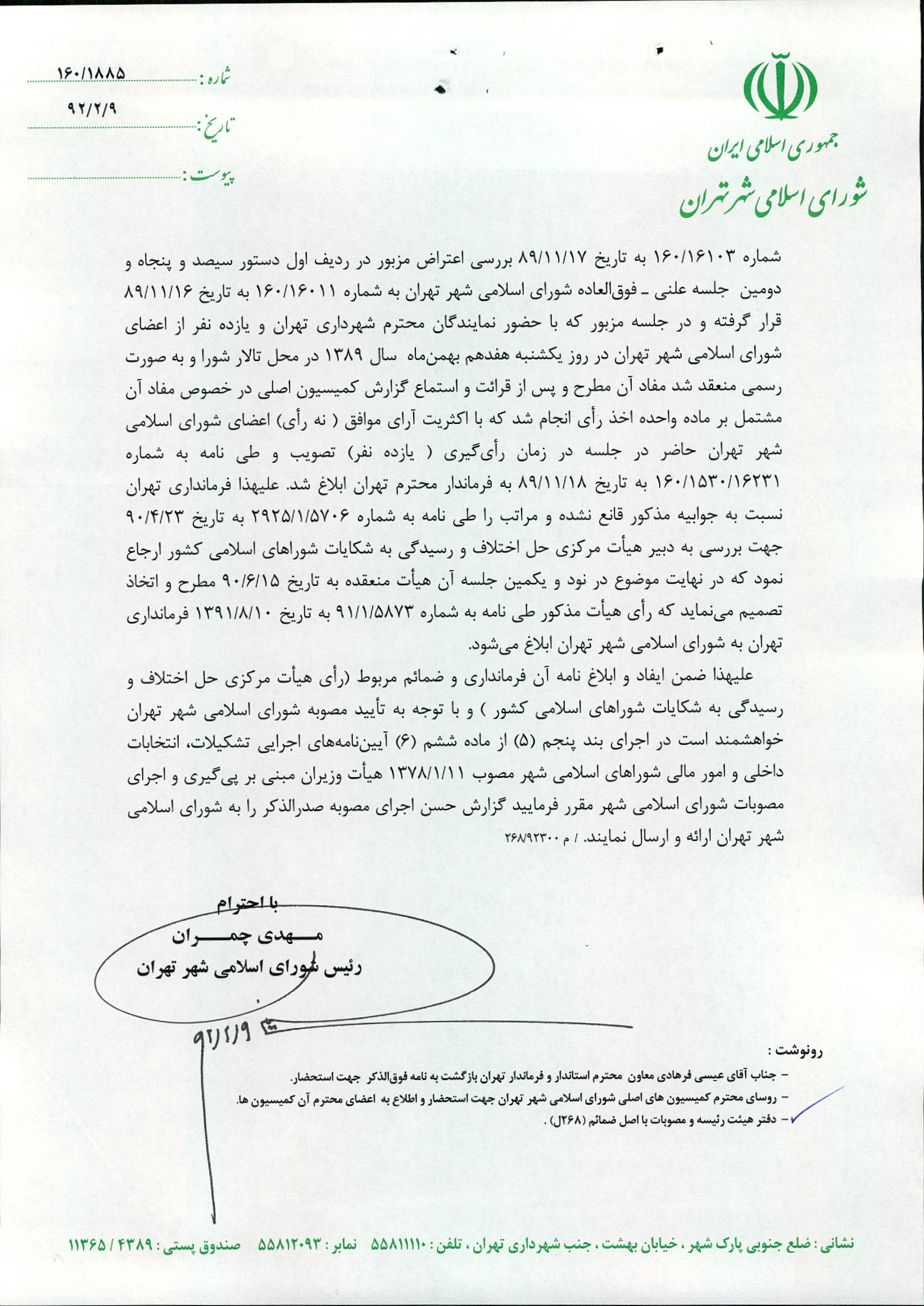 معرفی سامانه جامع مصوبات شورای اسلامی شهر تهران