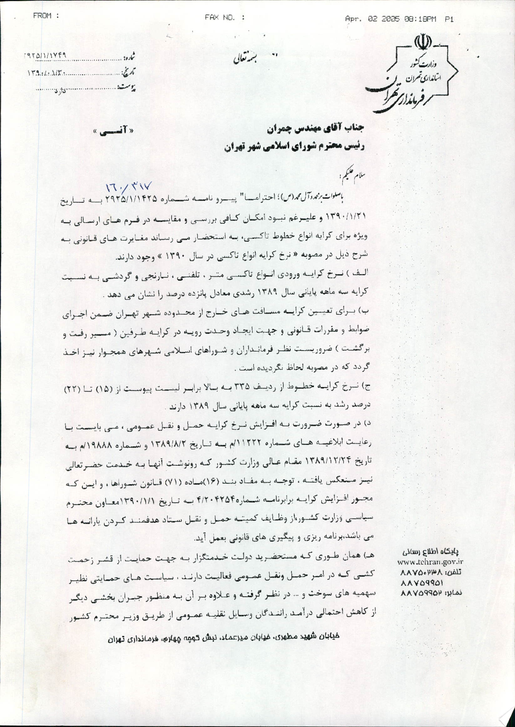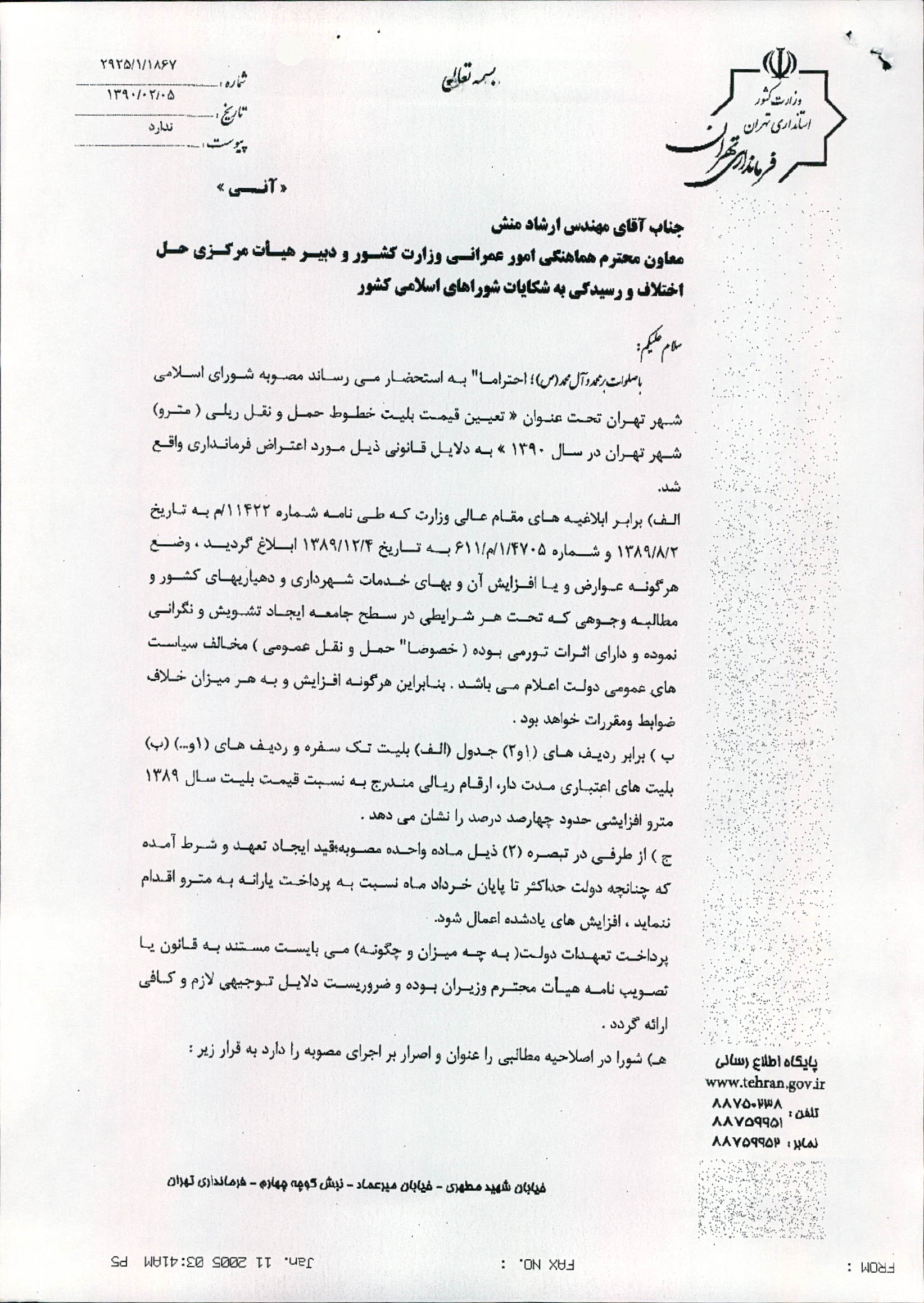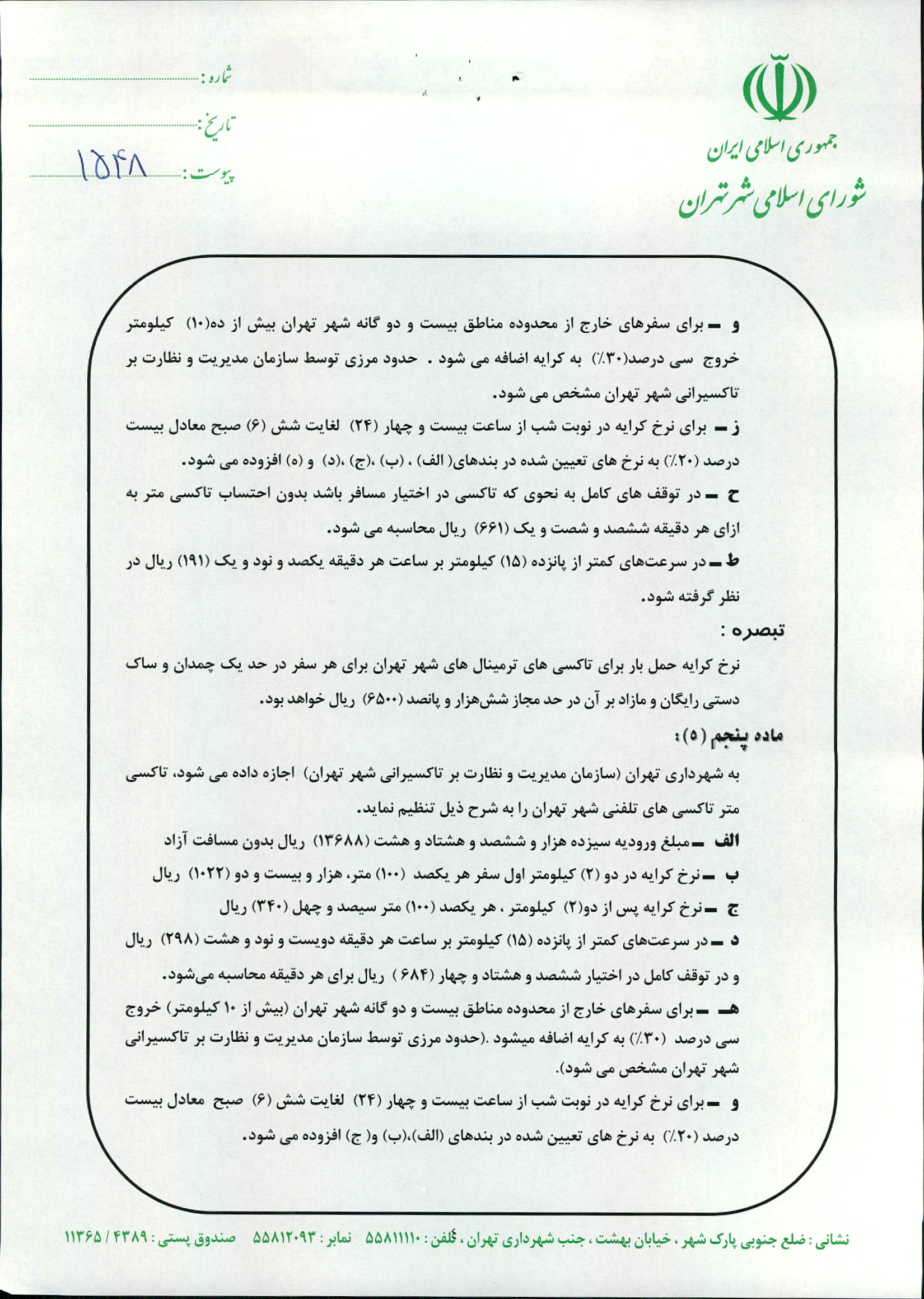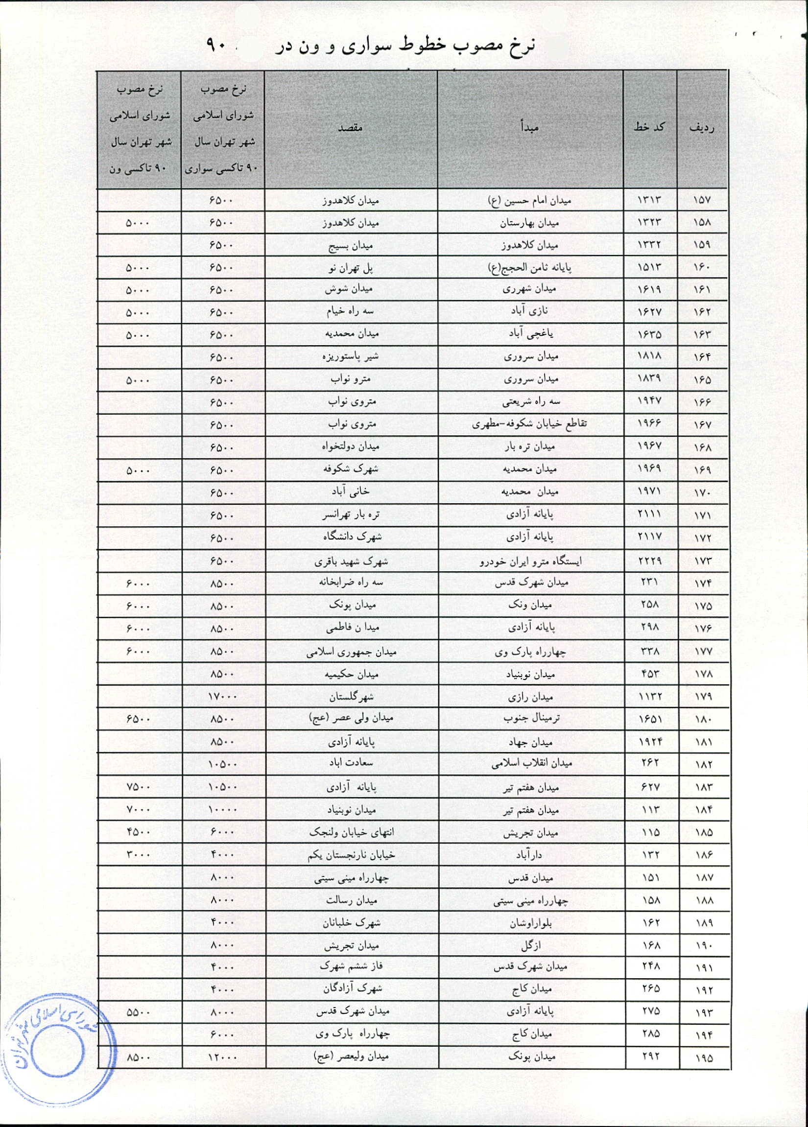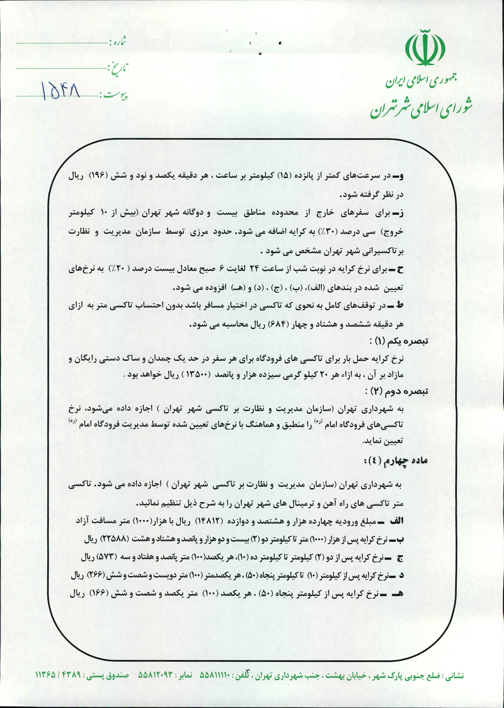 تعيين نرخ كرايه انواع تاكسي در سال 1390 در شهر تهران