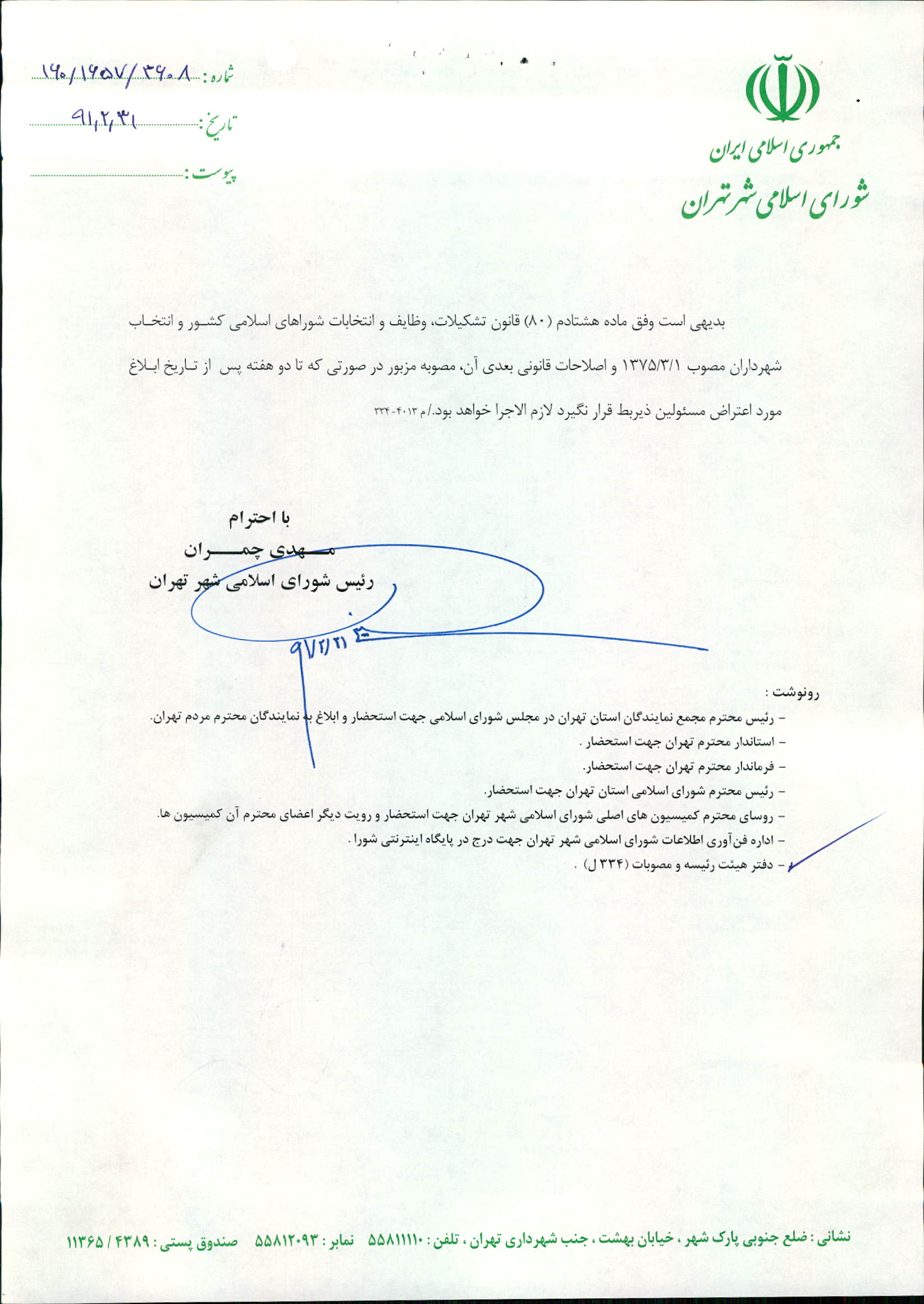 تاریخ صدور(ابلاغ) : 1391/02/31