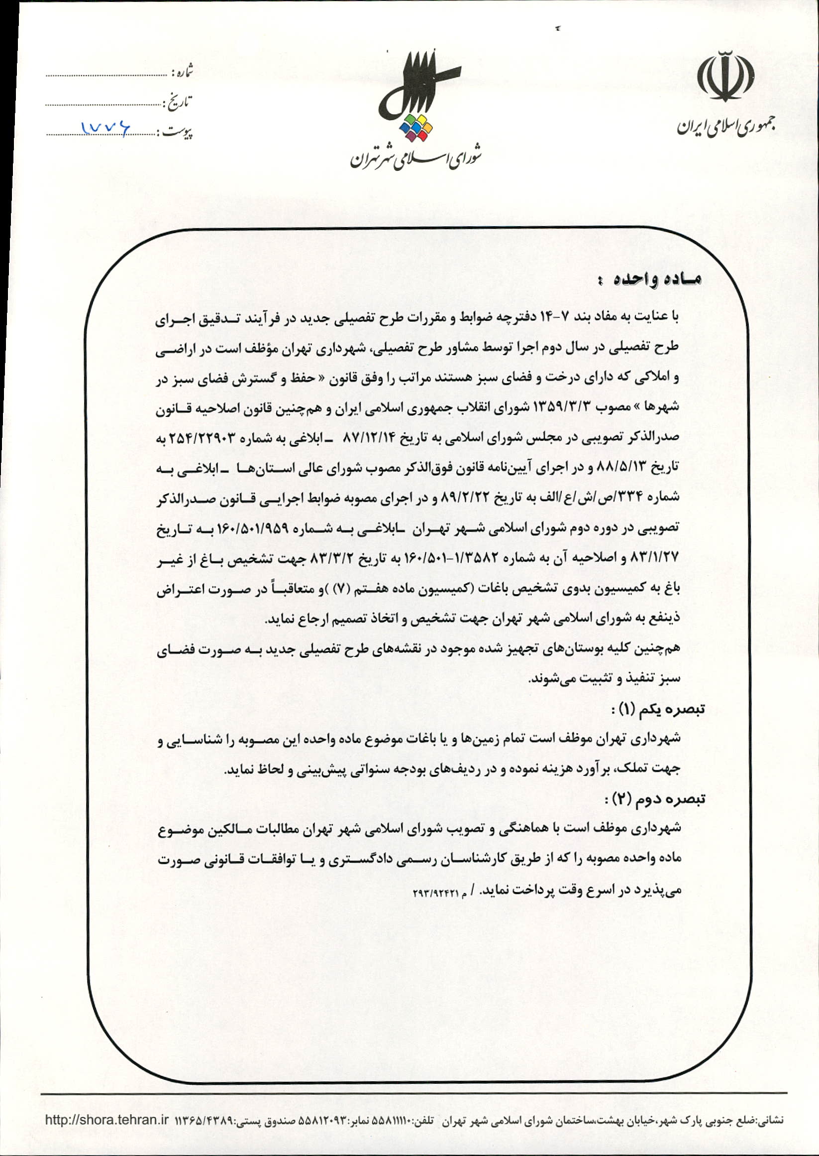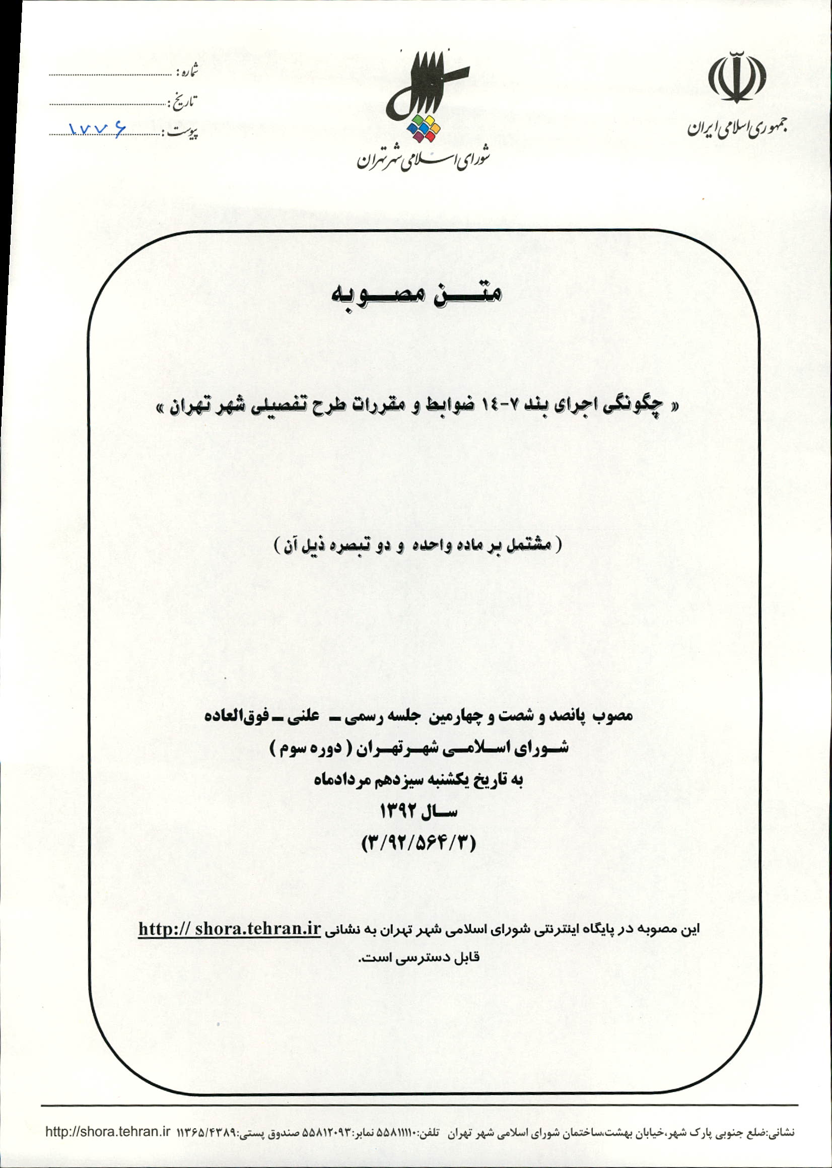 چگونگی اجرای بند 7-14 ضوابط و مقررات طرح تفصیلی شهر تهران