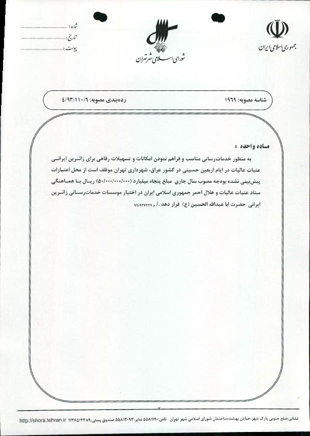 ارائه امكانات و خدماترسانی به زائران ايراني عتبات عاليات