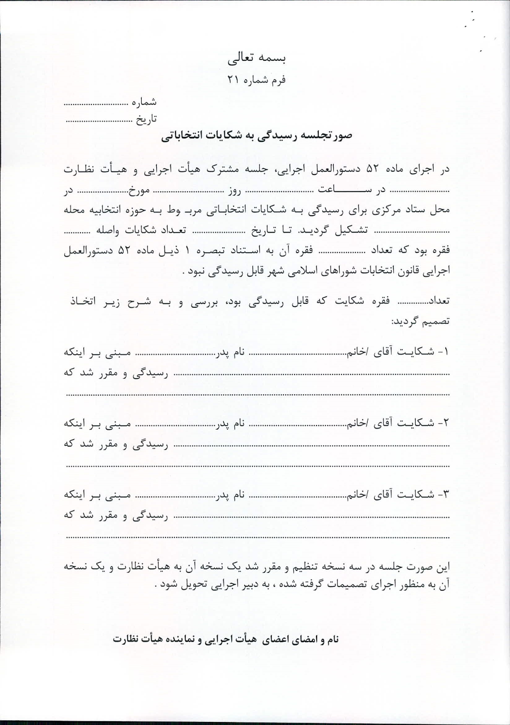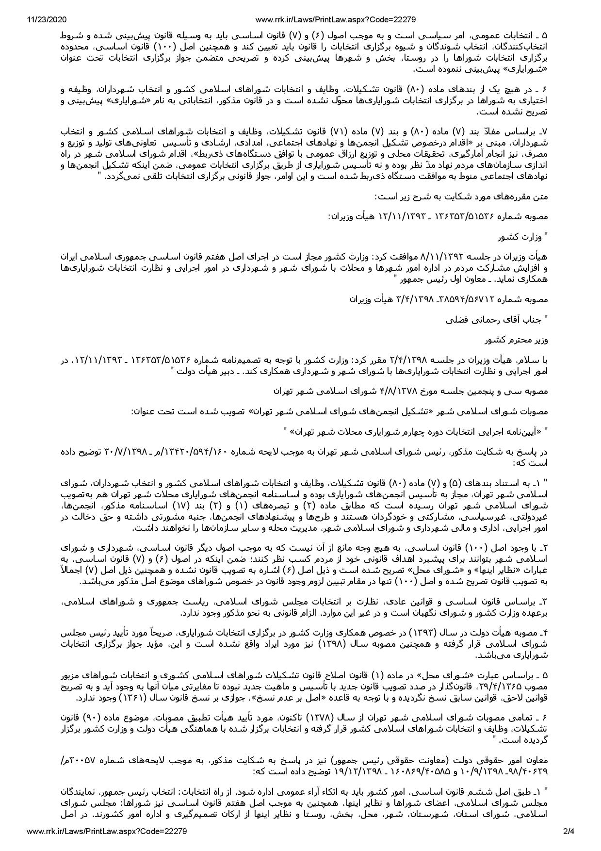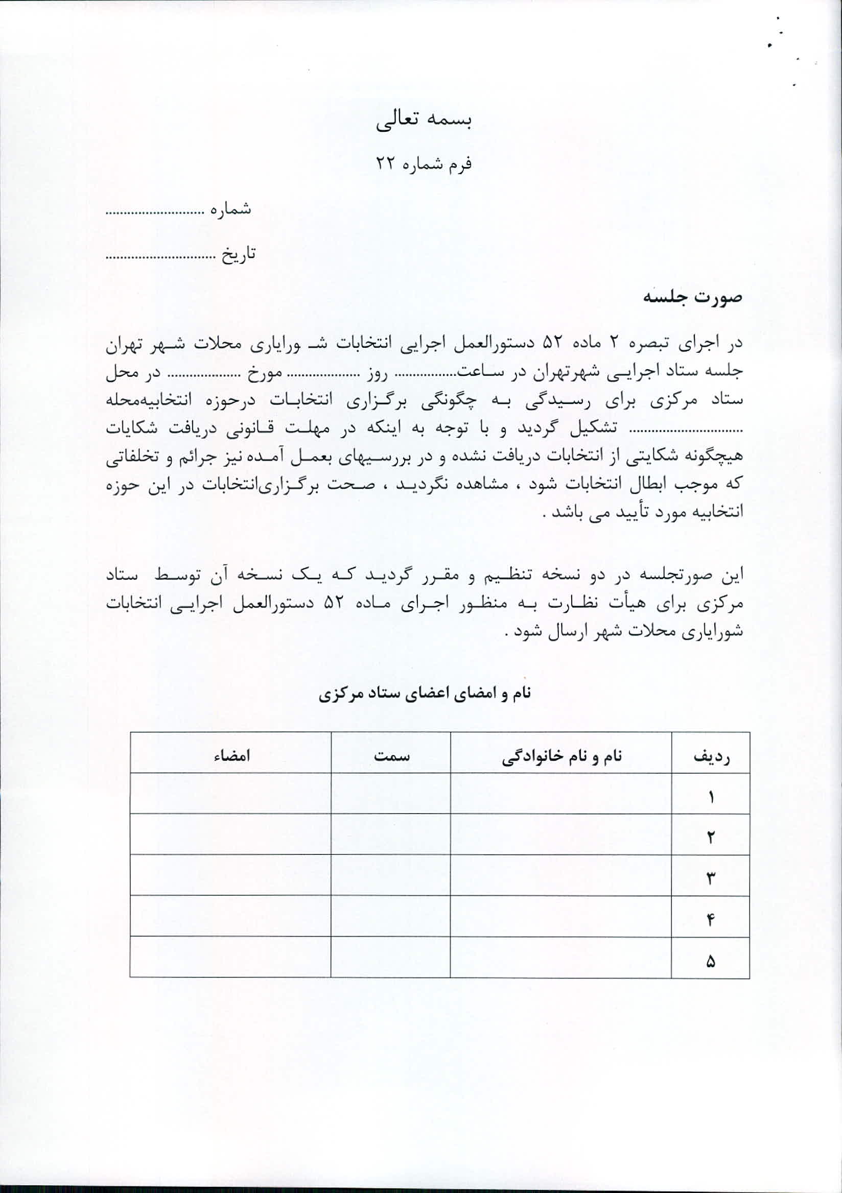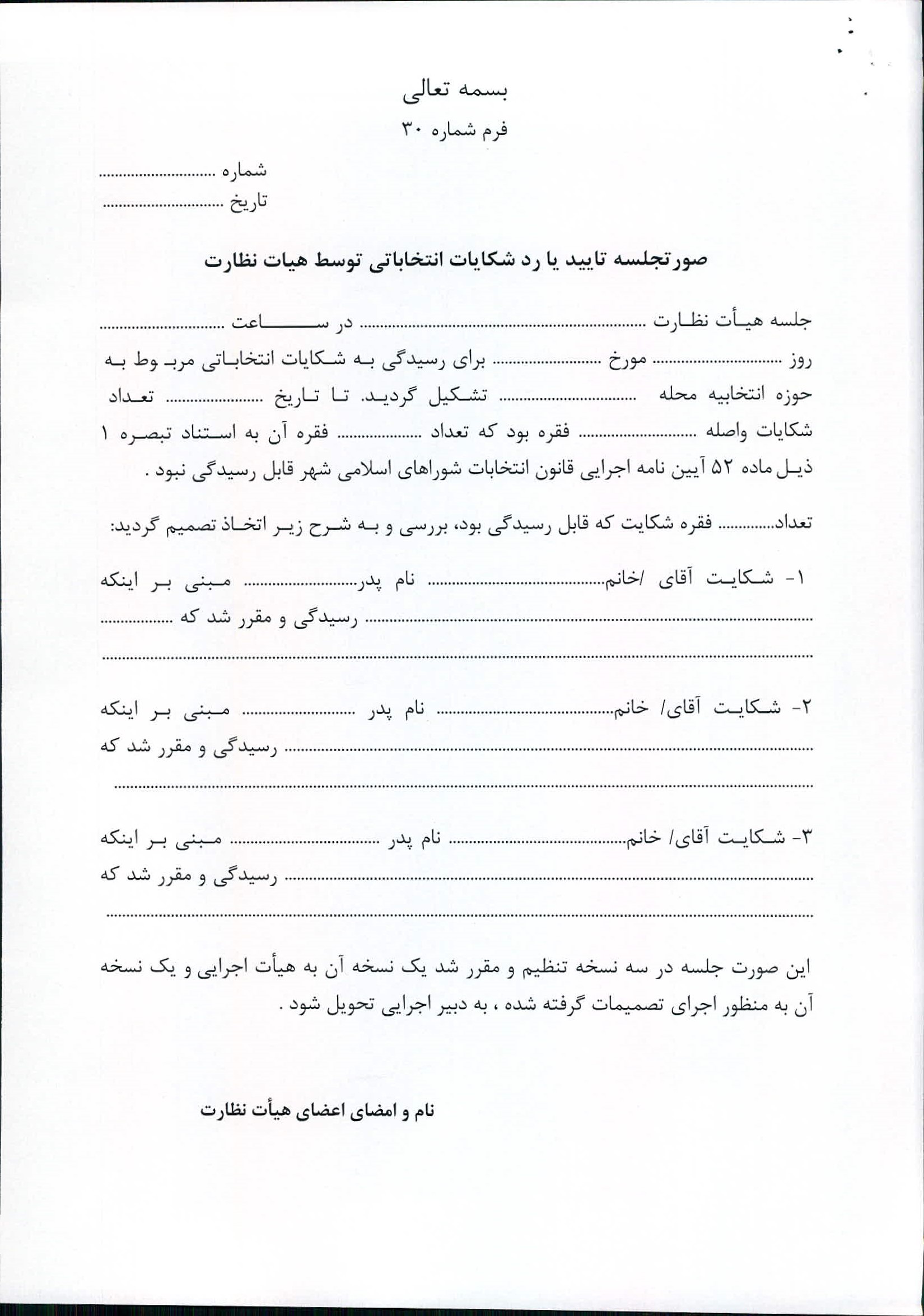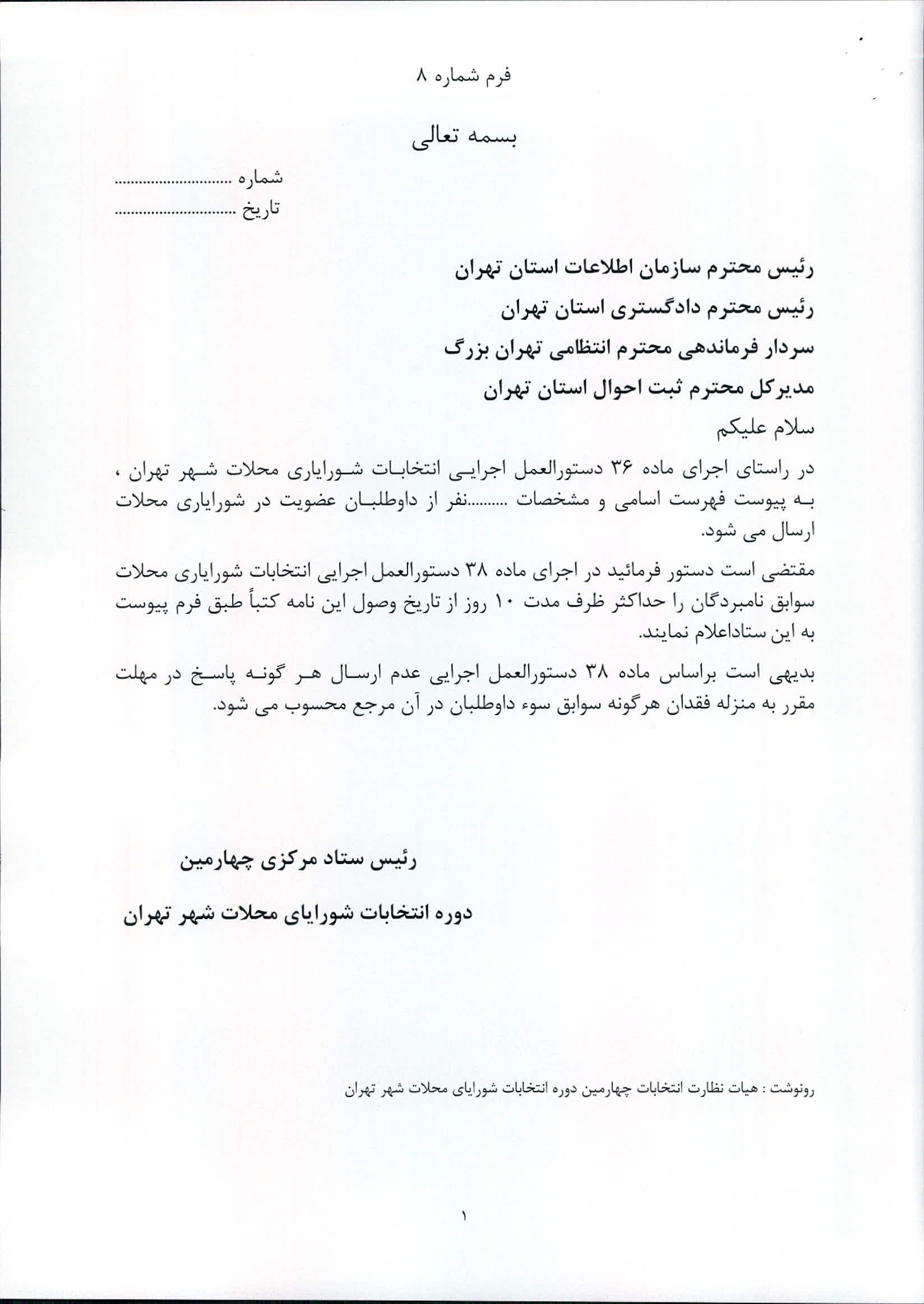 جوابيه شوراي اسلامي شهر تهران به اعتراض شماره شماره 93/1/9504 به تاريخ 93/12/6 فرمانداري تهران به متن مصوبه «آييننامه اجرايي انتخابات دوره چهارم شوراياري محلات شهر تهران»-ابلاغي به شماره 160/2021/32933 به تاريخ 93/11/28