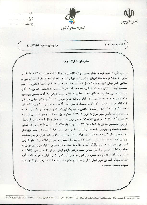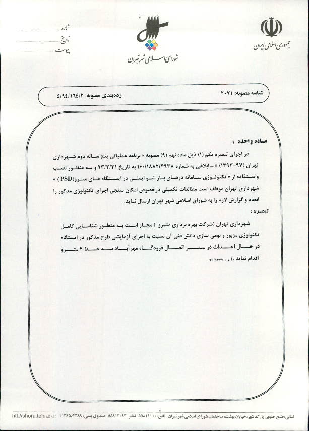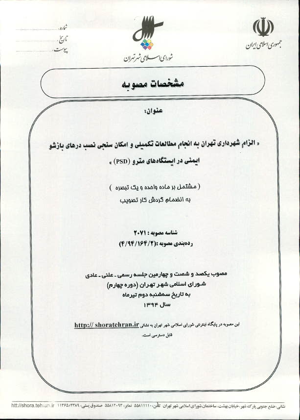 الزام شهرداری تهران به انجام <span class='color-white background-darkblue'>مطالعات</span> تکمیلی و امکانسنجی نصب درهای بازشو ایمنی در ایستگاههای مترو (PSD)