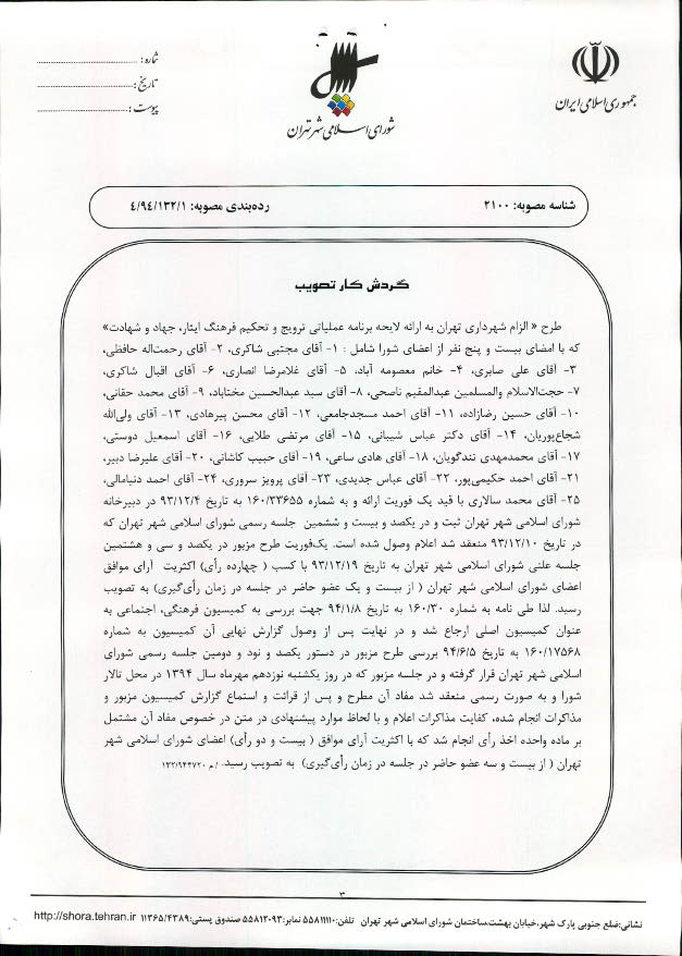 معرفی سامانه جامع مصوبات شورای اسلامی شهر تهران