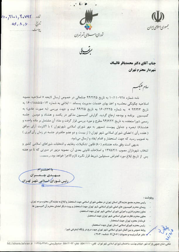 اصلاحیه مصوبه «اصلاحیه چگونگی محاسبه واخذ بهای خدمات مدیریت پسماند» ابلاغی به شماره 160/1885/5013 به تاریخ 93/3/3
