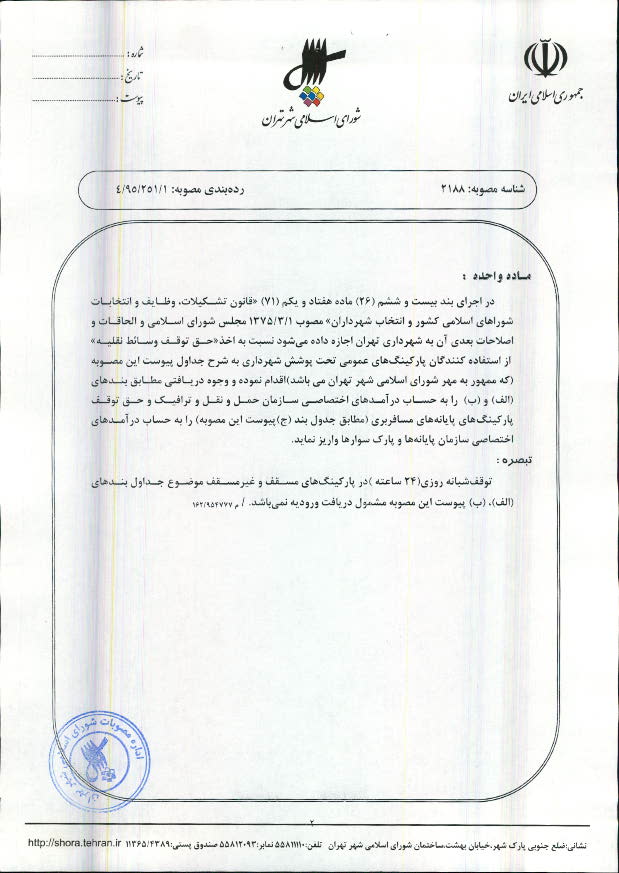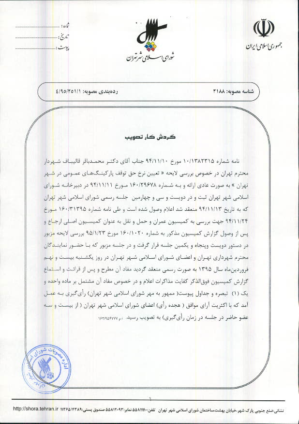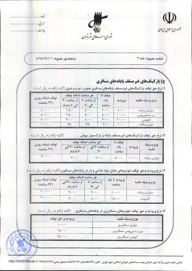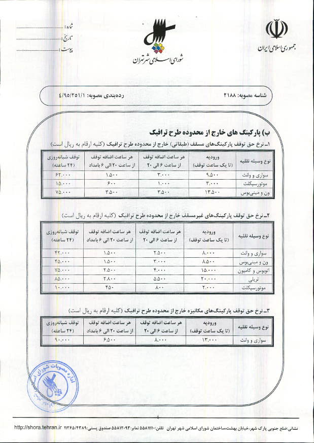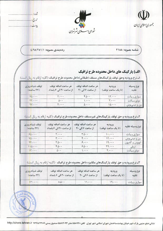 تعیین نرخ ورودیه و حق توقف پارکینگهای عمومی در شهر تهران