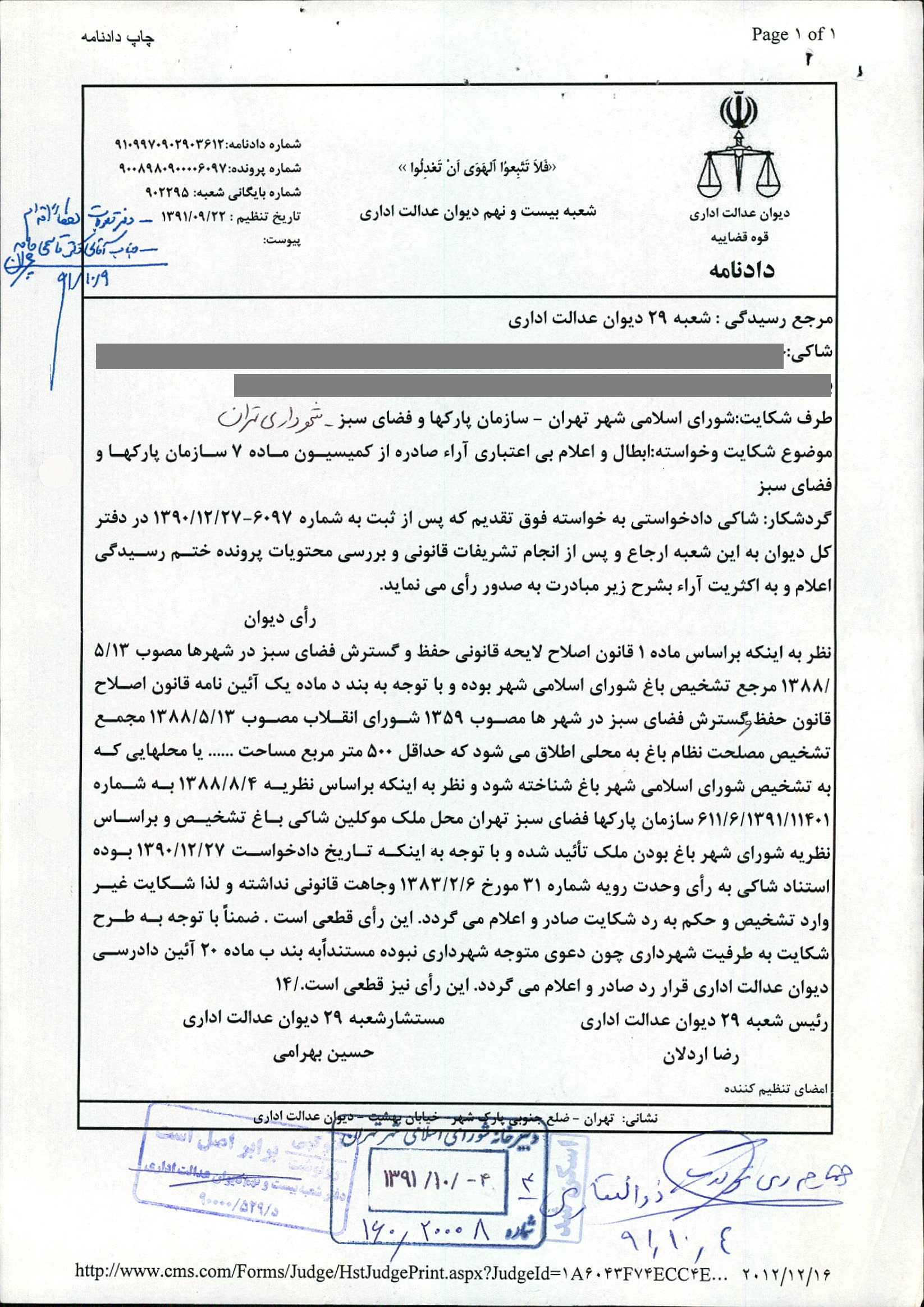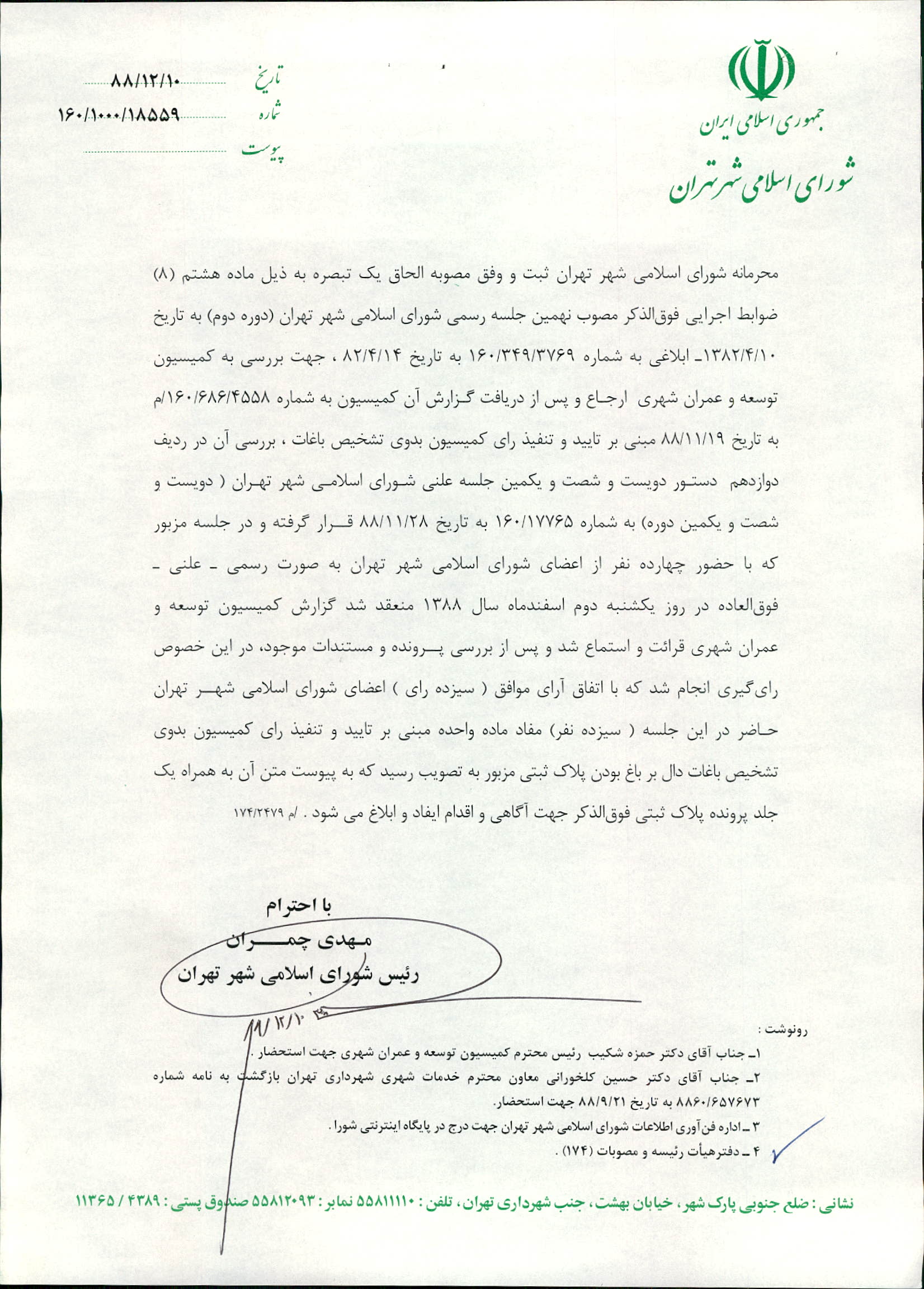 تأييد و تنفيذ رأي كميسيون بدوي تشخيص باغات (موضوع ماده هفتم (7) آييننامه اجرایي) در خصوص باغ بودن پلاك ثبتي به شماره يك هزار و ششصد و شصت و هفت فرعي از يكصد و بيست و شش اصلي (126/1667) واقع در محدوده منطقه پنج (5) شهرداري تهران