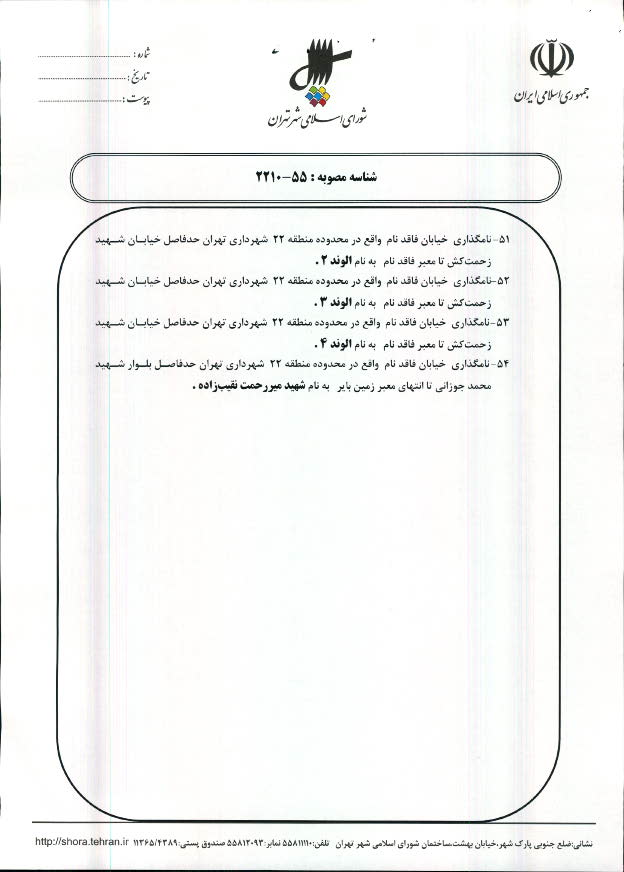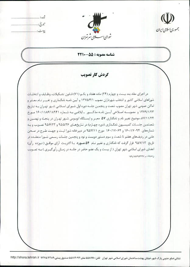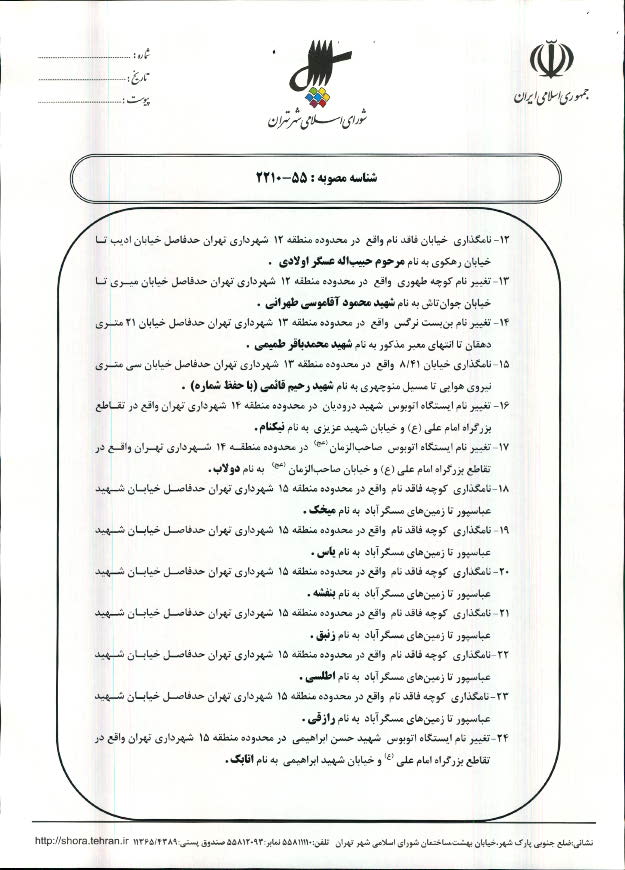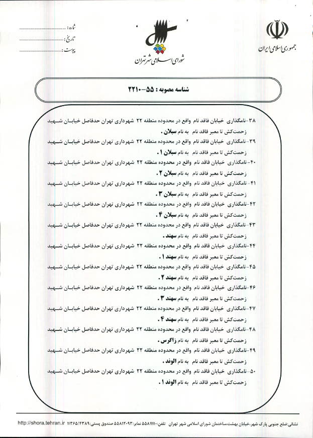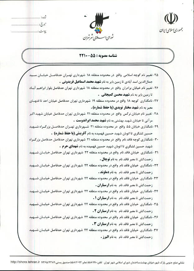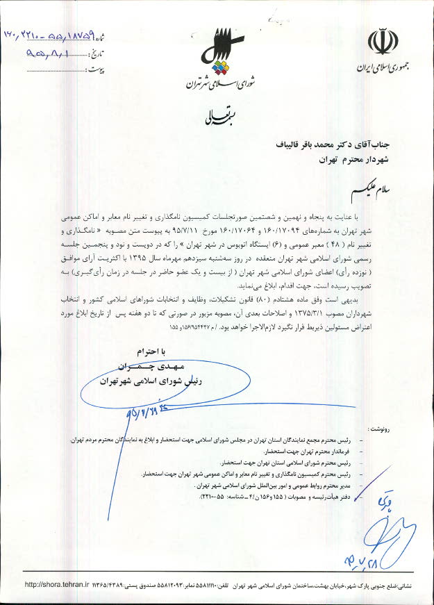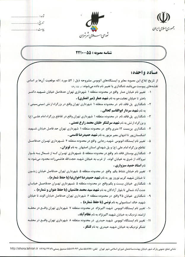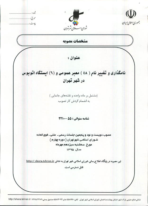 نام‌گذاری و تغییر نام (48) معبر عمومی و (6) ایستگاه اتوبوس در شهر تهران