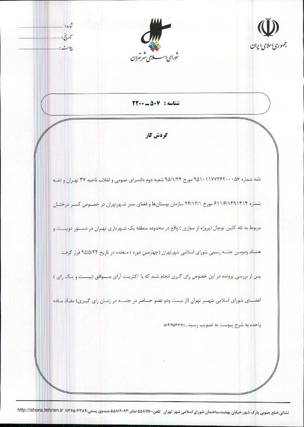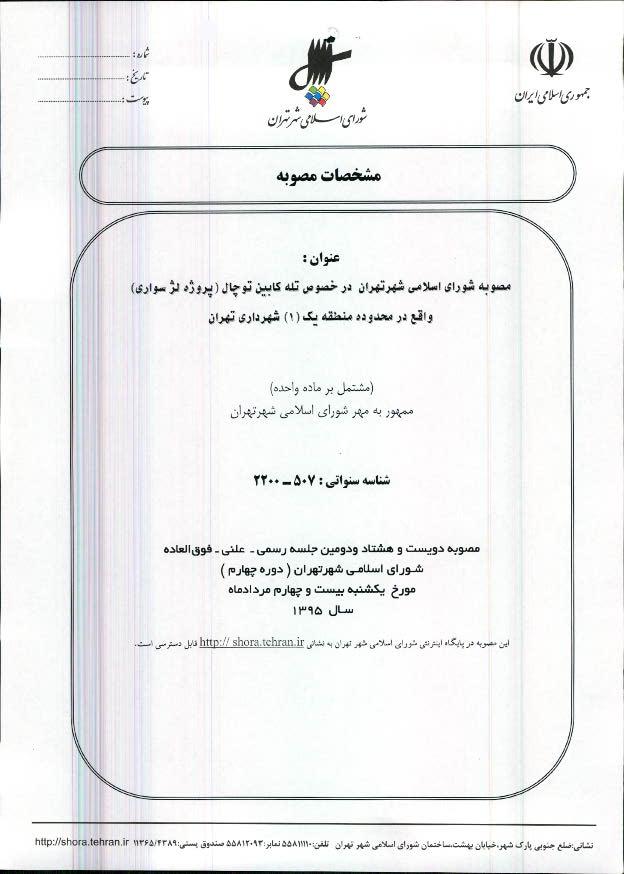 مصوبه شوراي اسلامي شهر تهران در خصوص تلهکابین توچال (پروژه لژ سواري) واقع در محدوده منطقه يك (1) شهرداري تهران